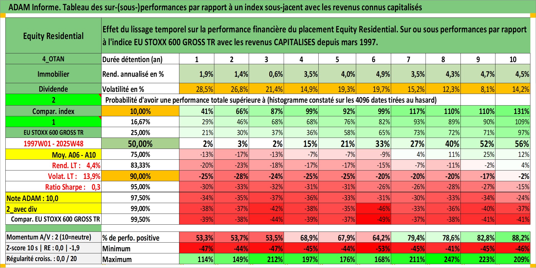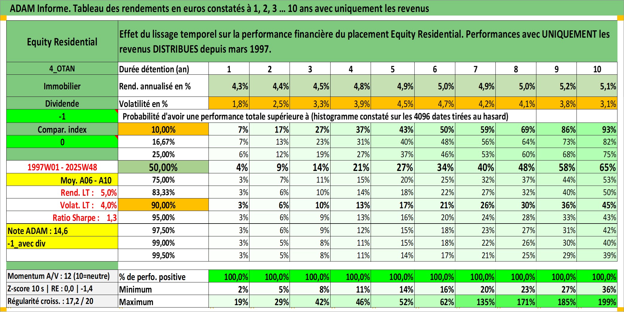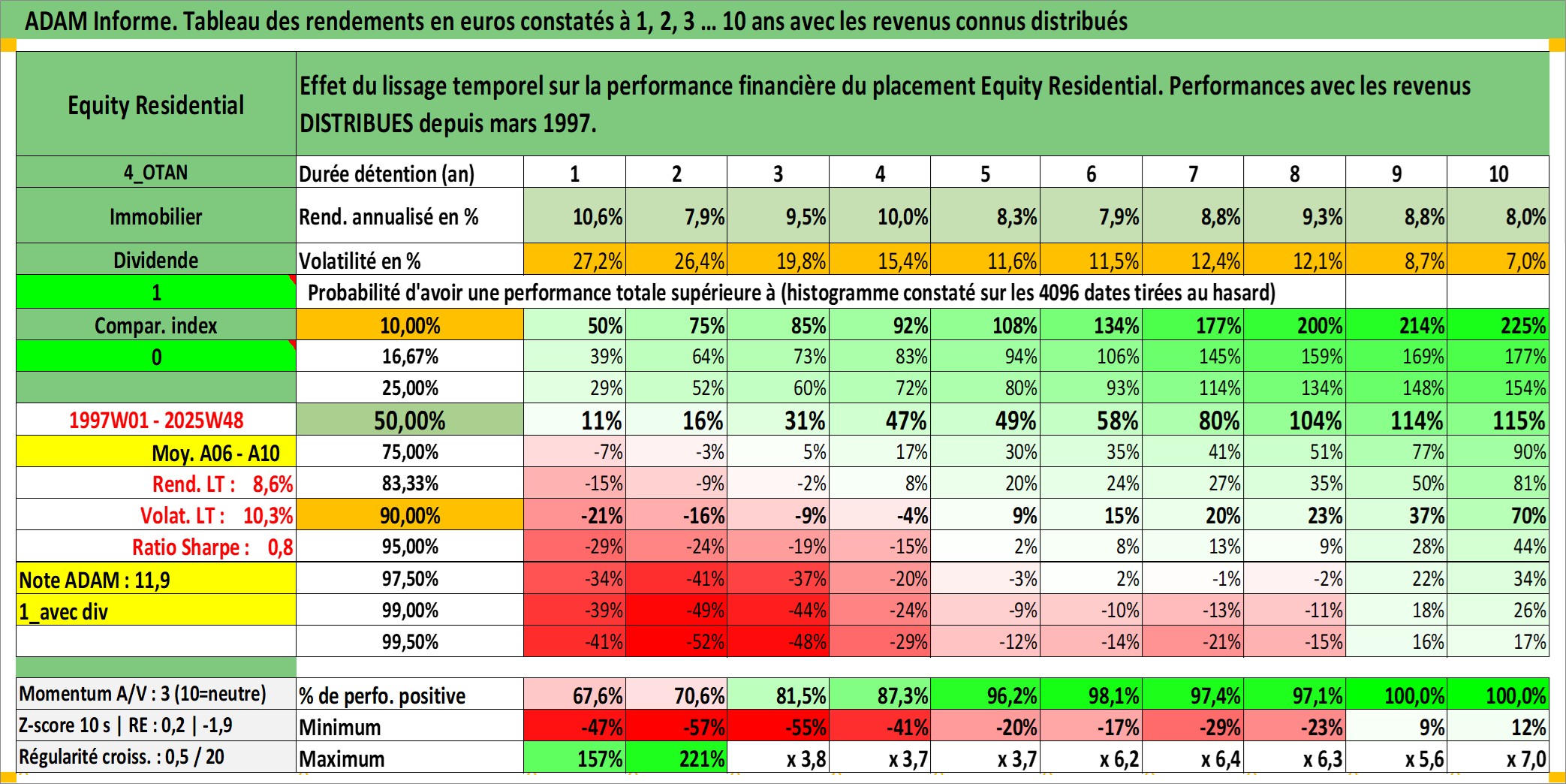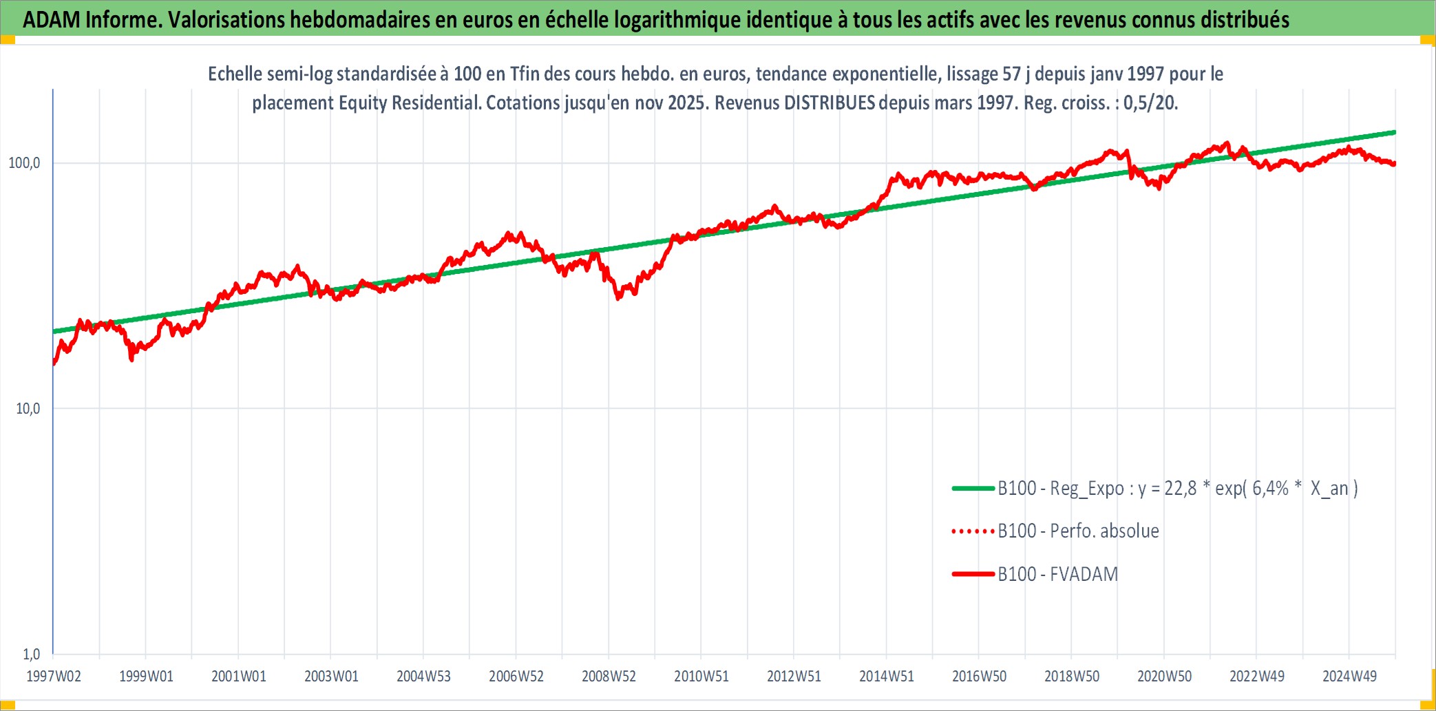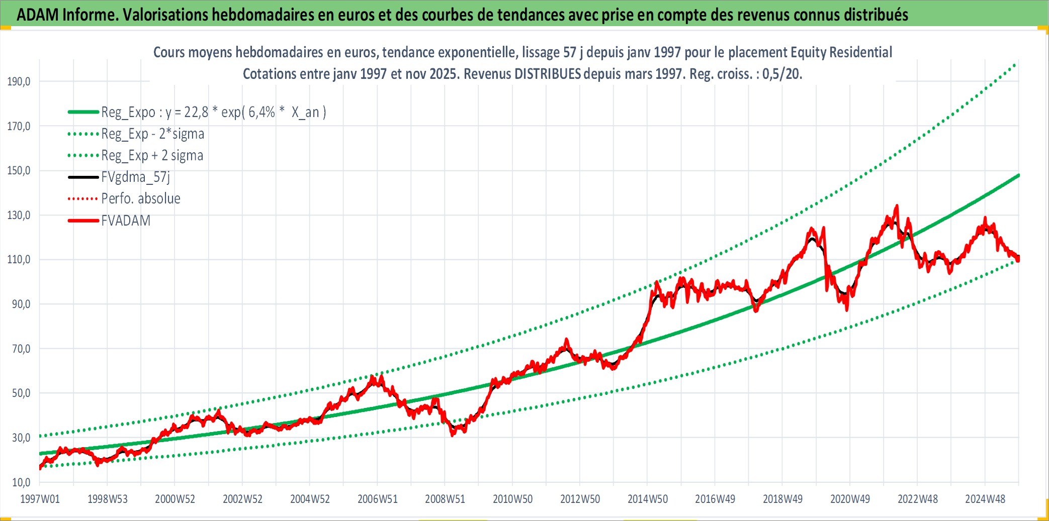 Site dédié aux investisseursPage dédiée sur site financeAnalyse des valorisations hebdomadaires de l'action Equity Residential. Cet actif est cote en USD. Les valorisations sont en contrevaleur EURO et couvrent les semaines 1997W01 a 2025W48. Les revenus de cet actif financier sont pris en compte depuis la semaine 1997W13. La note globale ESG de cet actif est estimee a 16.0 (apres rebasage entre 0 et 20).
