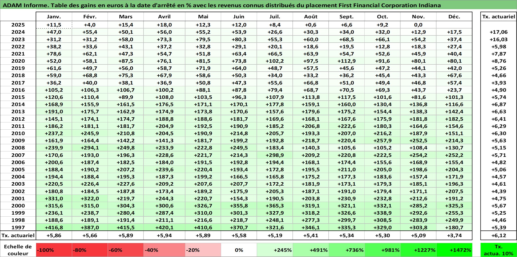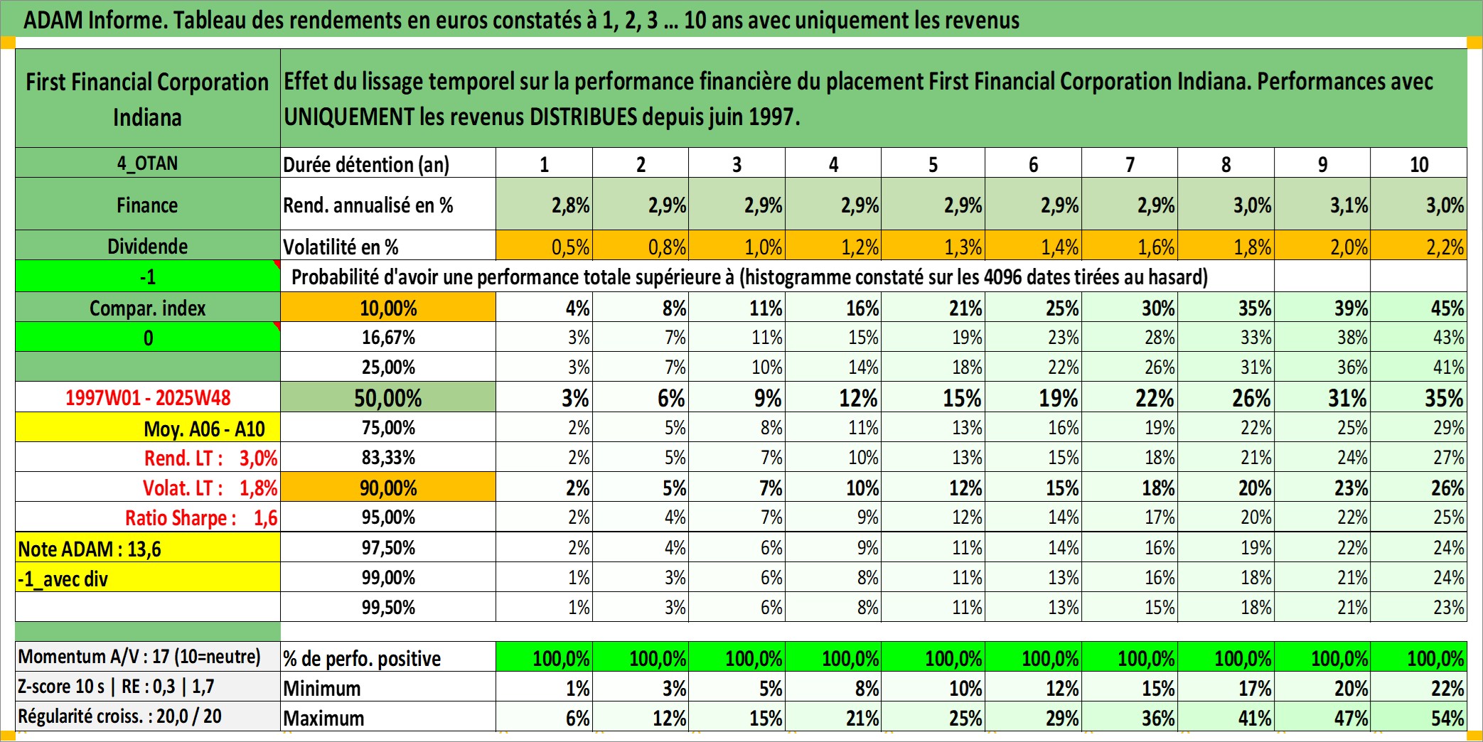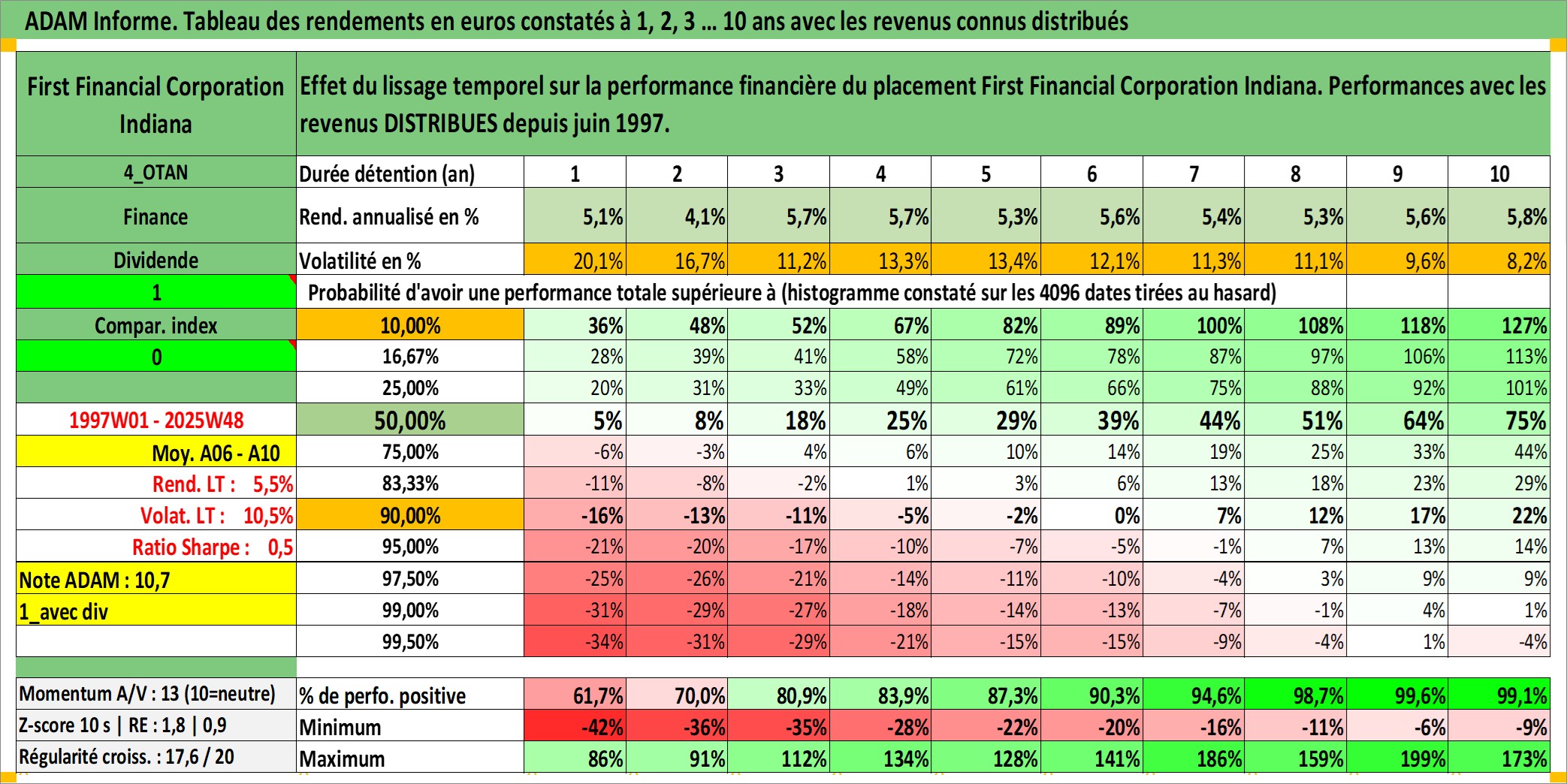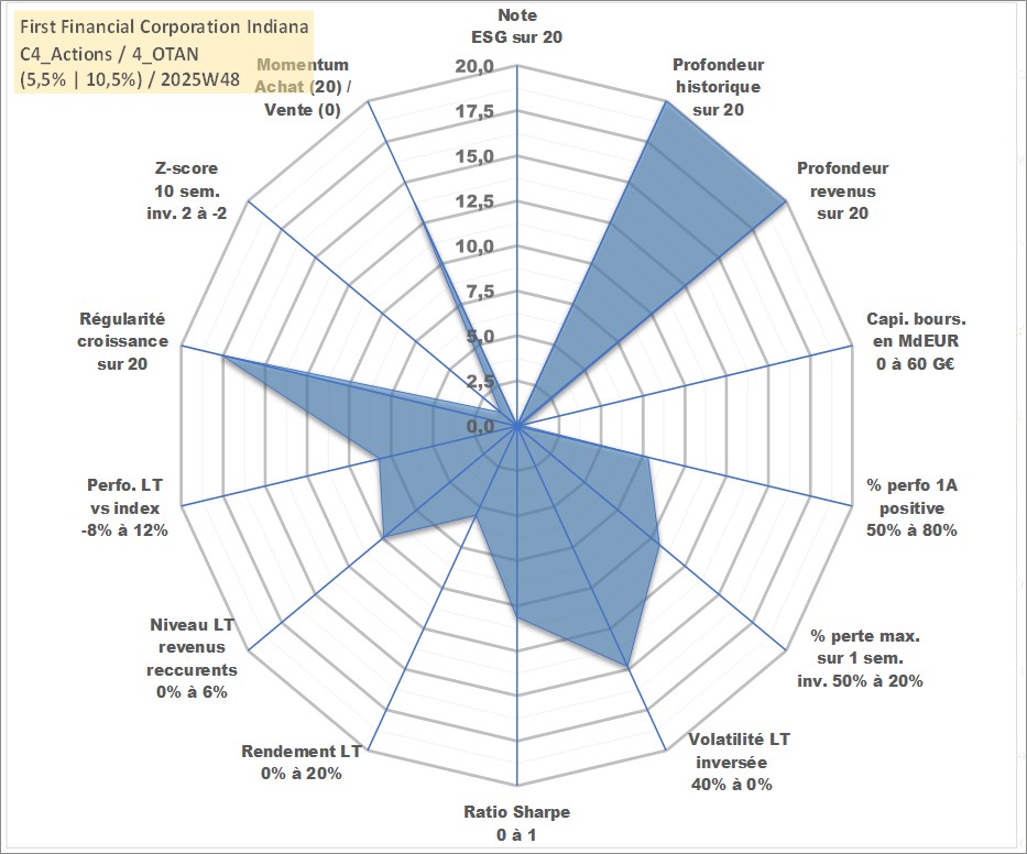 Site dédié aux investisseursPage dédiée sur site financeAnalyse des valorisations hebdomadaires de l'action First Financial Corporation Indiana. Cet actif est cote en USD. Les valorisations sont en contrevaleur EURO et couvrent les semaines 1997W01 a 2025W48. Les revenus de cet actif financier sont pris en compte depuis la semaine 1997W24. La note ESG de cet actif n'est pas connue.