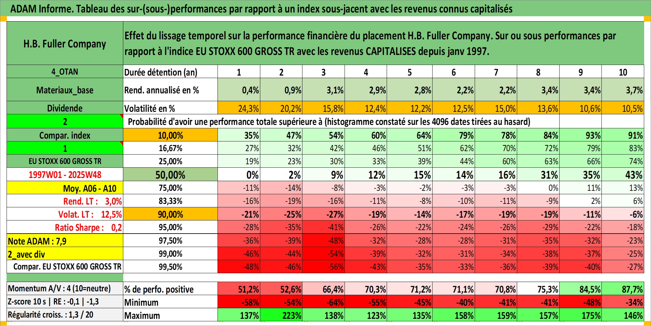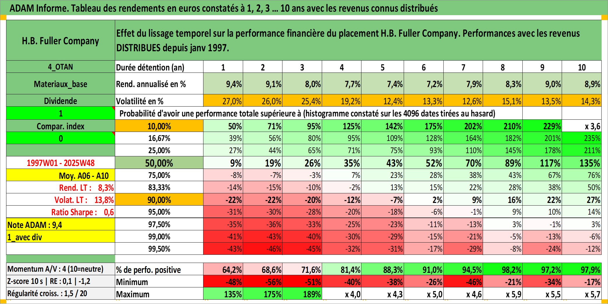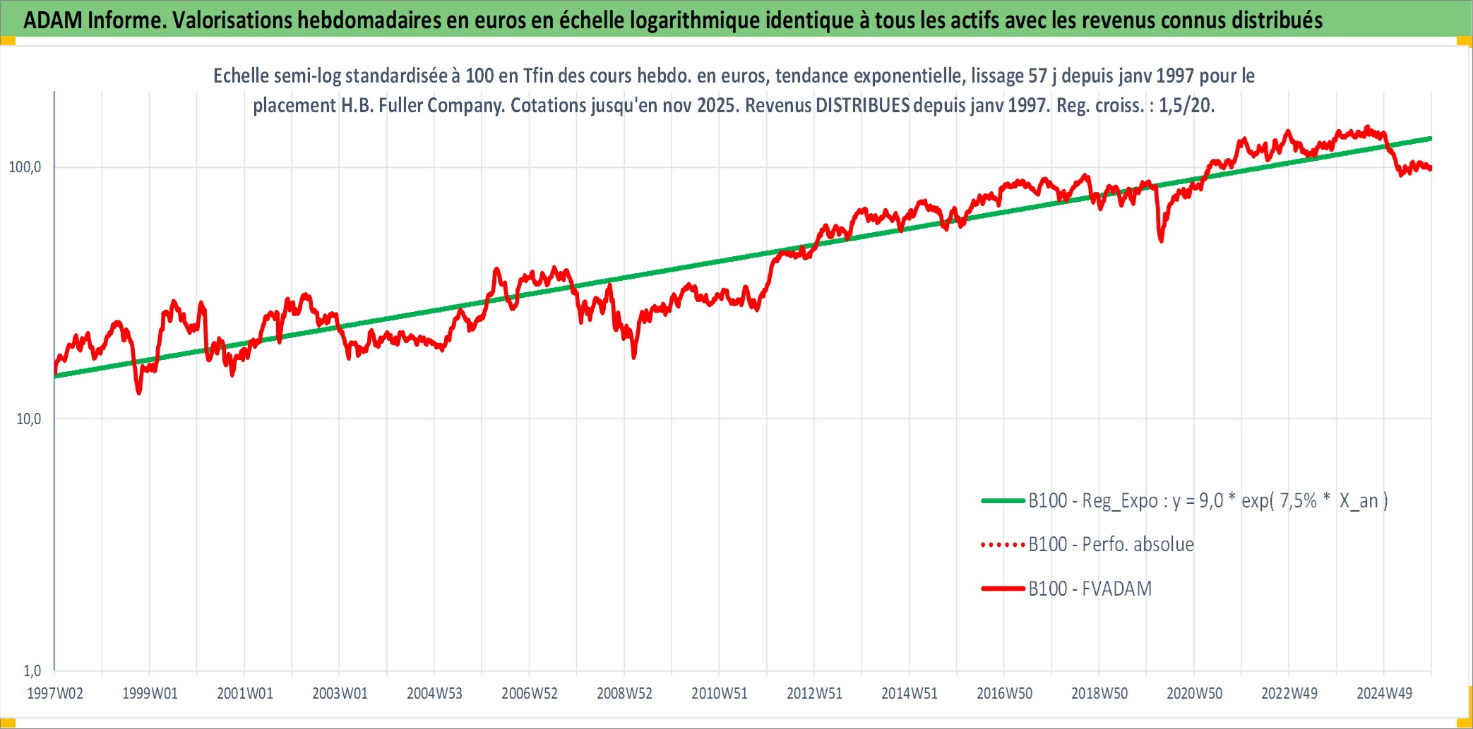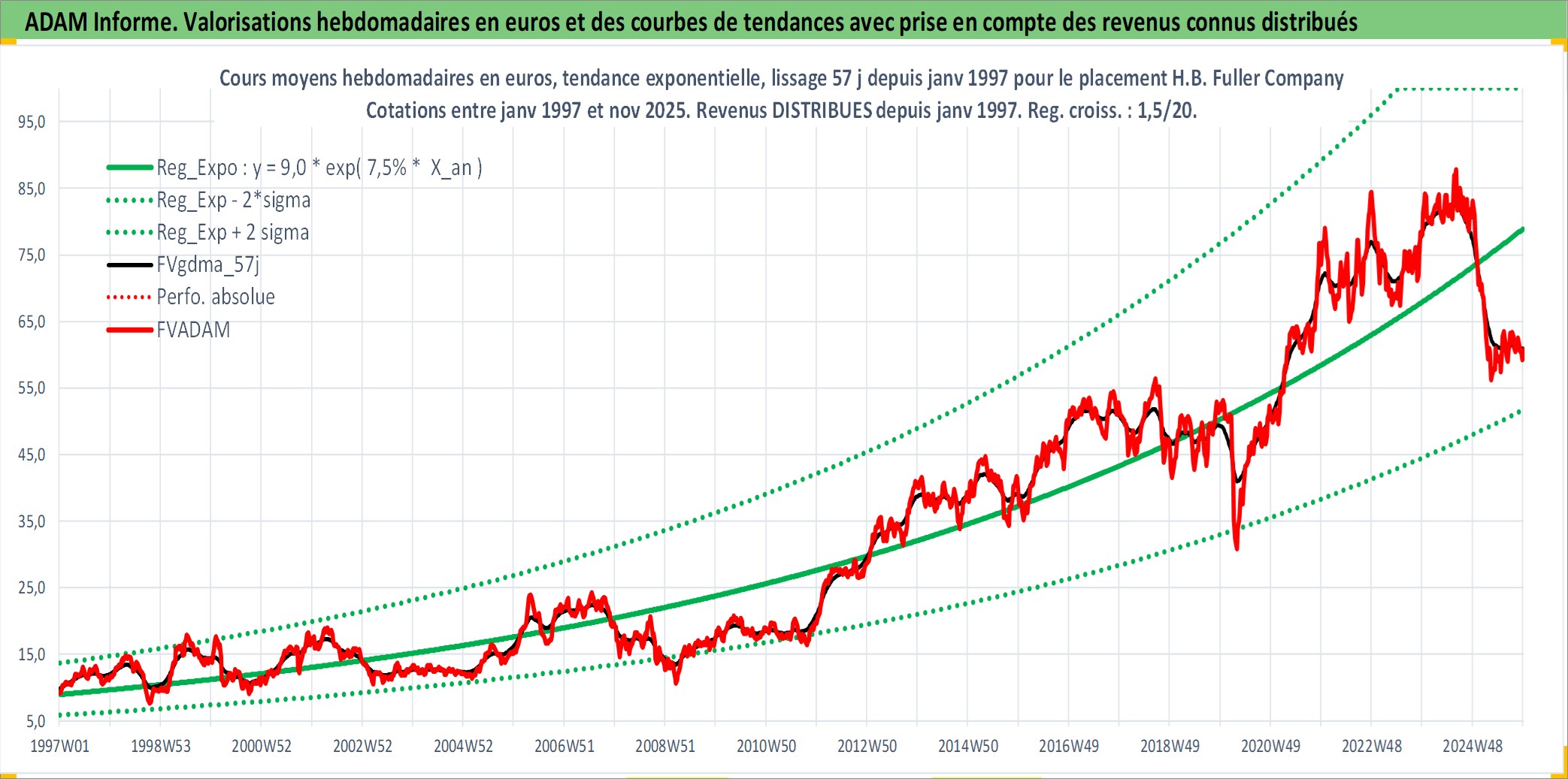 Site dédié aux investisseursPage dédiée sur site financeAnalyse des valorisations hebdomadaires de l'action H.B. Fuller Company. Cet actif est cote en USD. Les valorisations sont en contrevaleur EURO et couvrent les semaines 1997W01 a 2025W48. Les revenus de cet actif financier sont pris en compte depuis la semaine 1997W04. La note ESG de cet actif n'est pas connue.