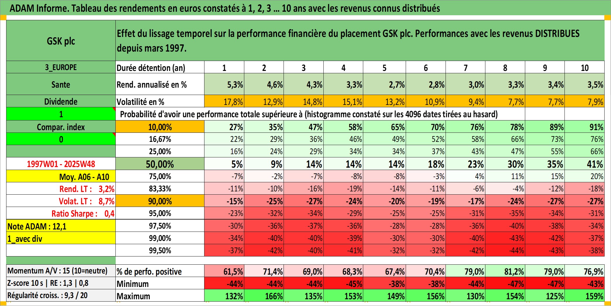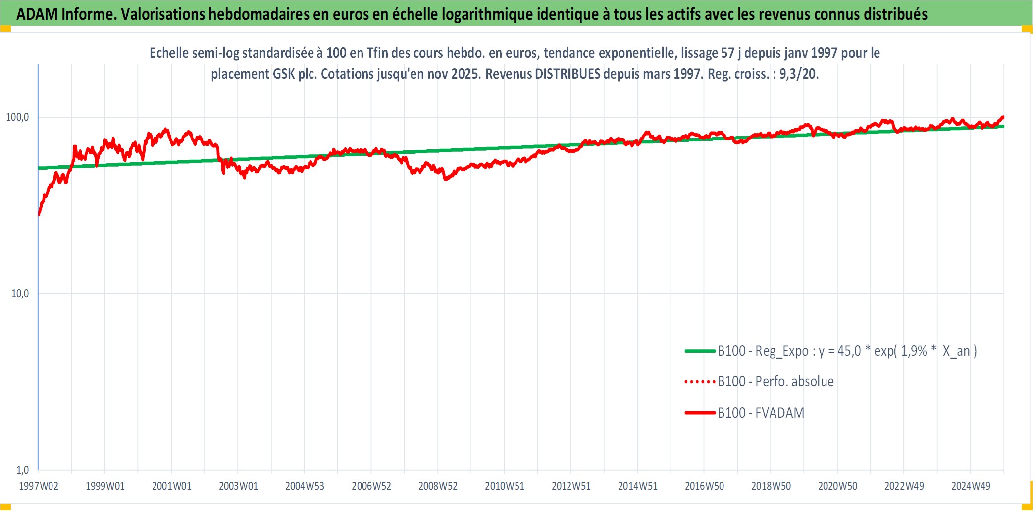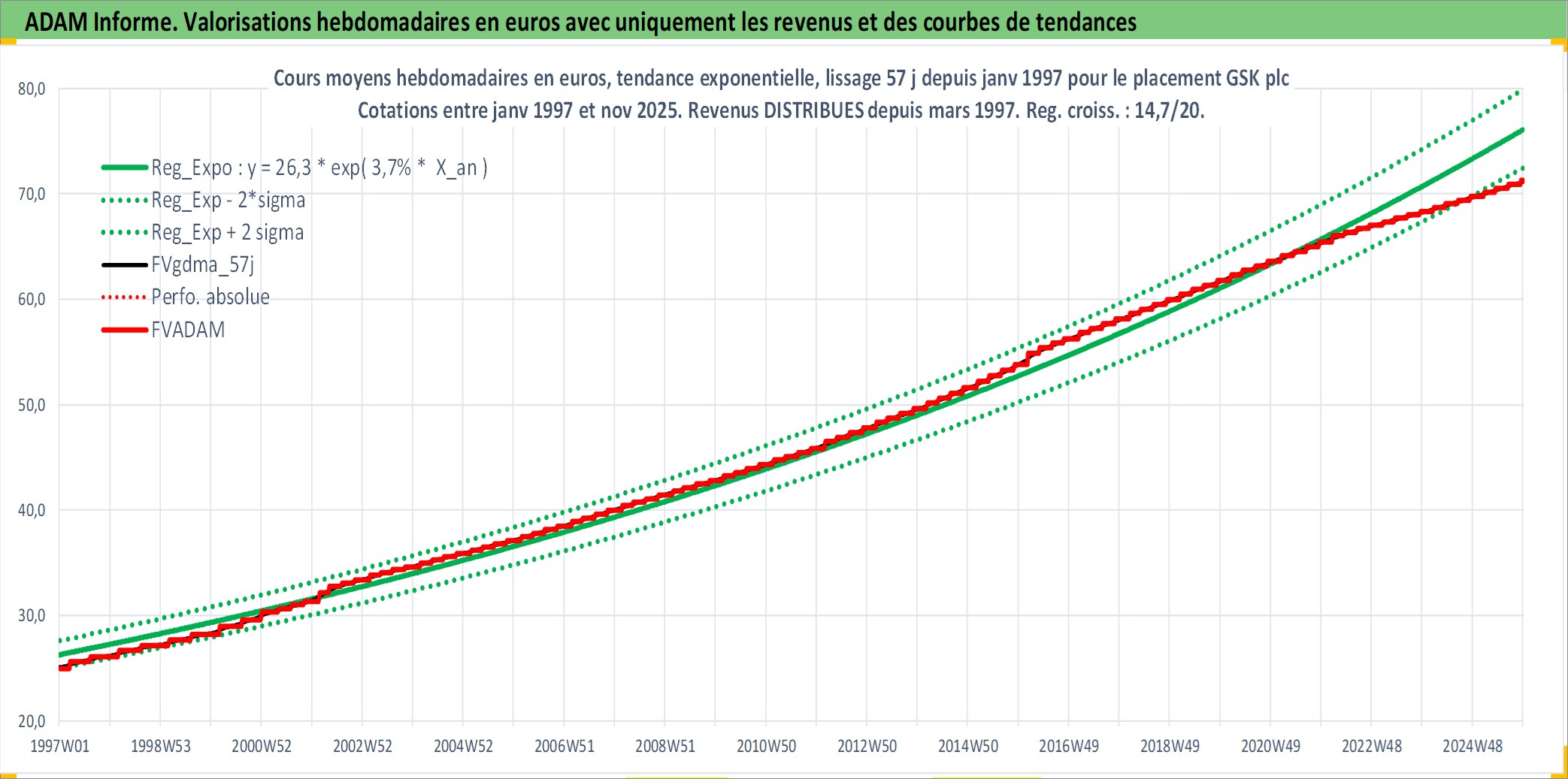 Site dédié aux investisseursPage dédiée sur site financeAnalyse des valorisations hebdomadaires de l'action GSK plc. Cet actif est cote en USD. Les valorisations sont en contrevaleur EURO et couvrent les semaines 1997W01 a 2025W48. Les revenus de cet actif financier sont pris en compte depuis la semaine 1997W12. La note ESG de cet actif n'est pas connue.