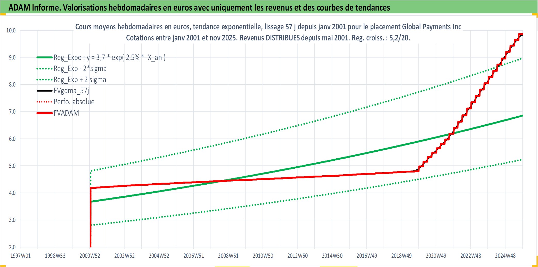 Site dédié aux investisseursPage dédiée sur site financeAnalyse des valorisations hebdomadaires de l'action Global Payments Inc. Cet actif est cote en USD. Les valorisations sont en contrevaleur EURO et couvrent les semaines 2001W03 a 2025W48. Les revenus de cet actif financier sont pris en compte depuis la semaine 2001W20. La note globale ESG de cet actif est estimee a 11.0 (apres rebasage entre 0 et 20).