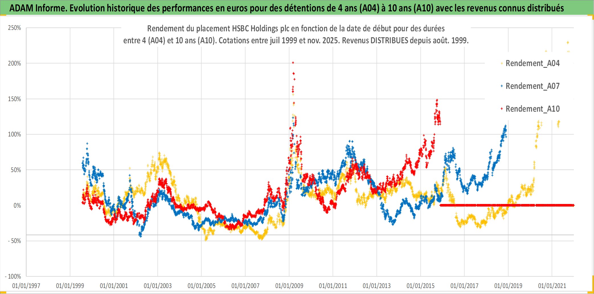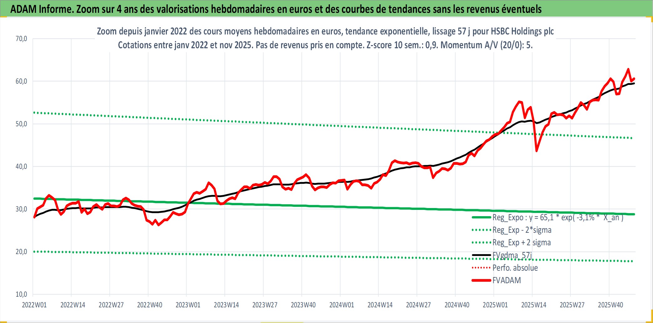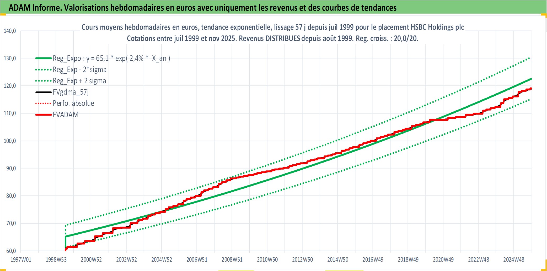 Site dédié aux investisseursPage dédiée sur site financeAnalyse des valorisations hebdomadaires de l'action HSBC Holdings plc. Cet actif est cote en USD. Les valorisations sont en contrevaleur EURO et couvrent les semaines 1999W28 a 2025W48. Les revenus de cet actif financier sont pris en compte depuis la semaine 1999W33. La note ESG de cet actif n'est pas connue.