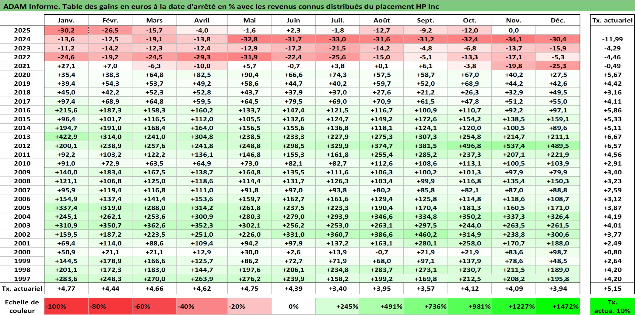 Dernière perfo 10 ans en %