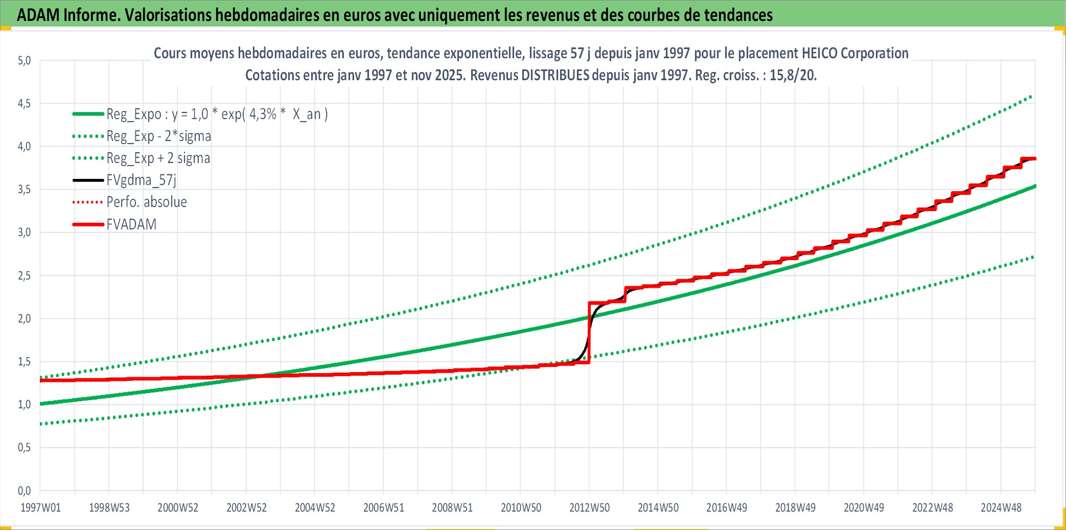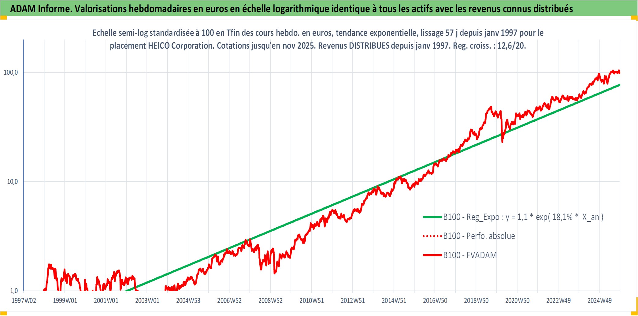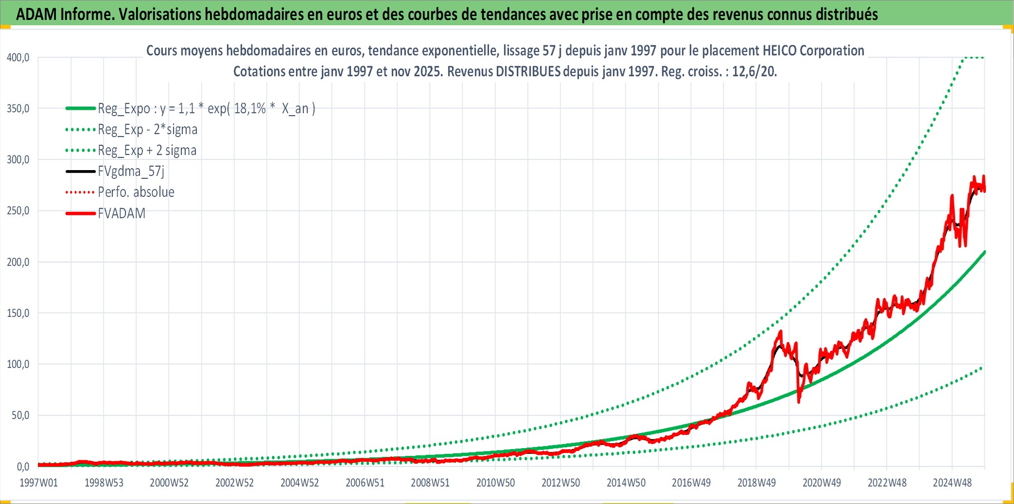 Site dédié aux investisseursPage dédiée sur site financeAnalyse des valorisations hebdomadaires de l'action HEICO Corporation. Cet actif est cote en USD. Les valorisations sont en contrevaleur EURO et couvrent les semaines 1997W01 a 2025W48. Les revenus de cet actif financier sont pris en compte depuis la semaine 1997W02. La note ESG de cet actif n'est pas connue.