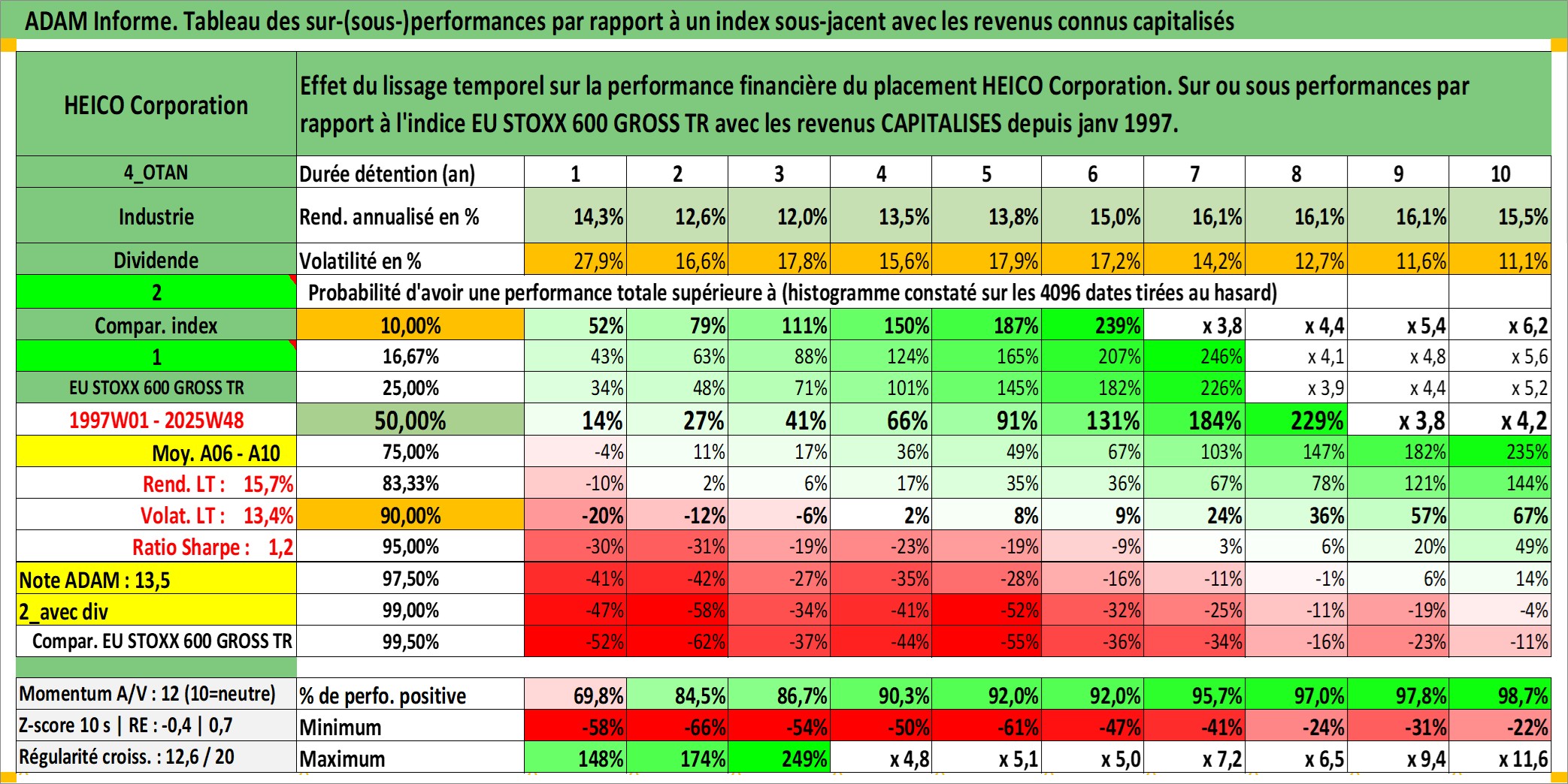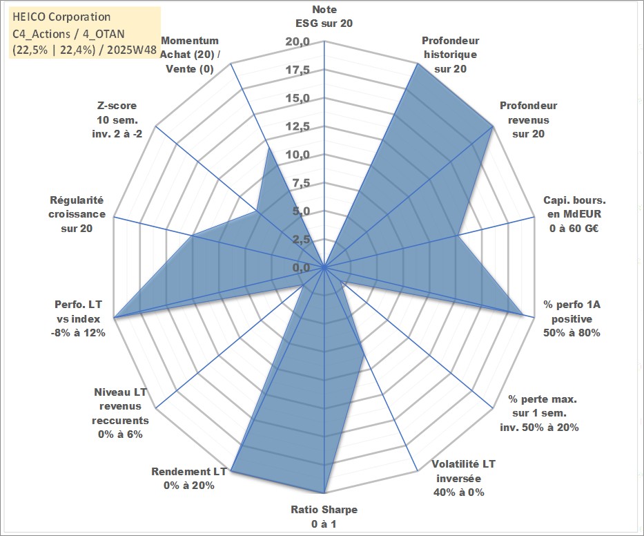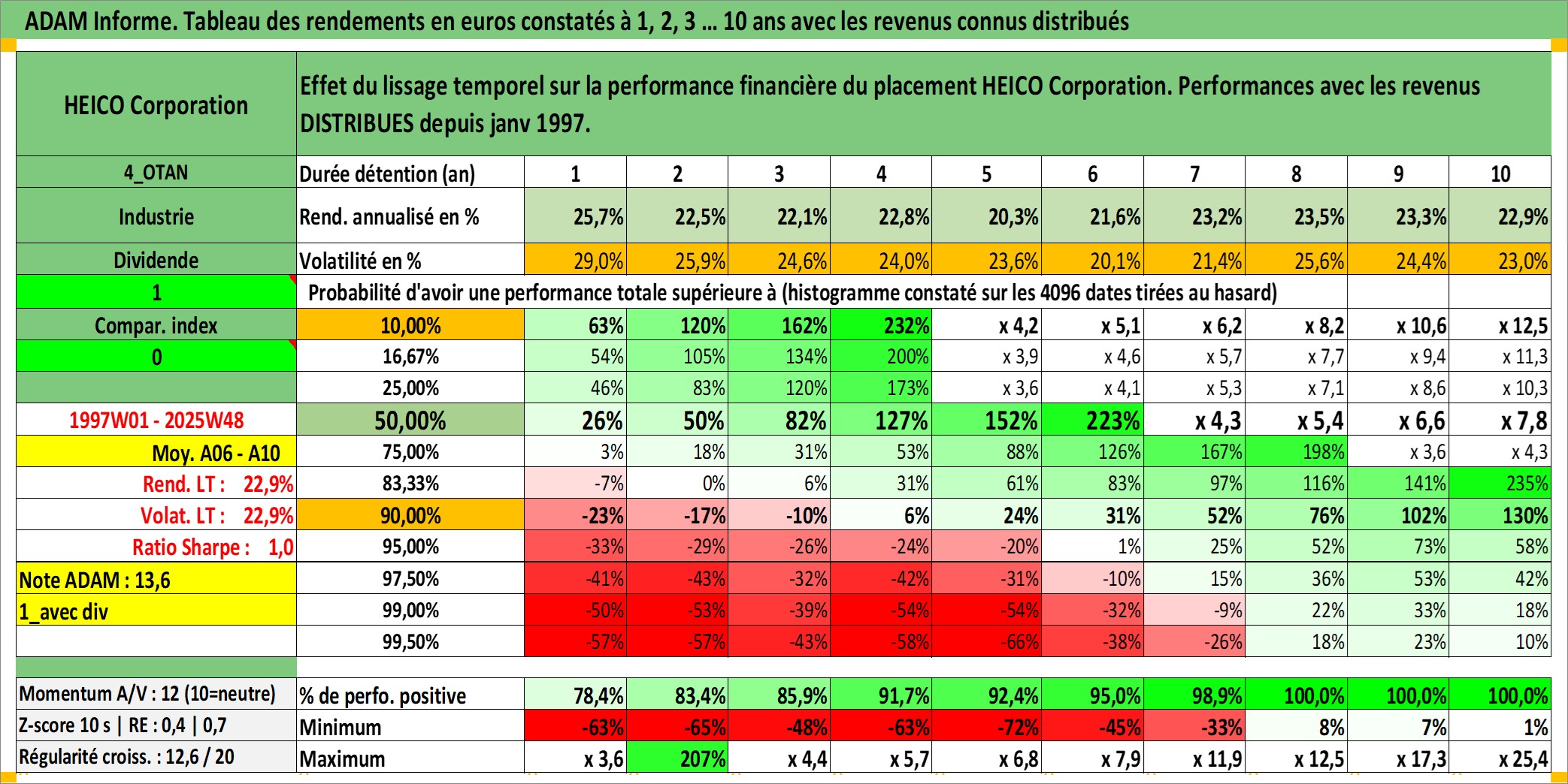 Site dédié aux investisseursPage dédiée sur site financeAnalyse des valorisations hebdomadaires de l'action HEICO Corporation. Cet actif est cote en USD. Les valorisations sont en contrevaleur EURO et couvrent les semaines 1997W01 a 2025W48. Les revenus de cet actif financier sont pris en compte depuis la semaine 1997W02. La note ESG de cet actif n'est pas connue.