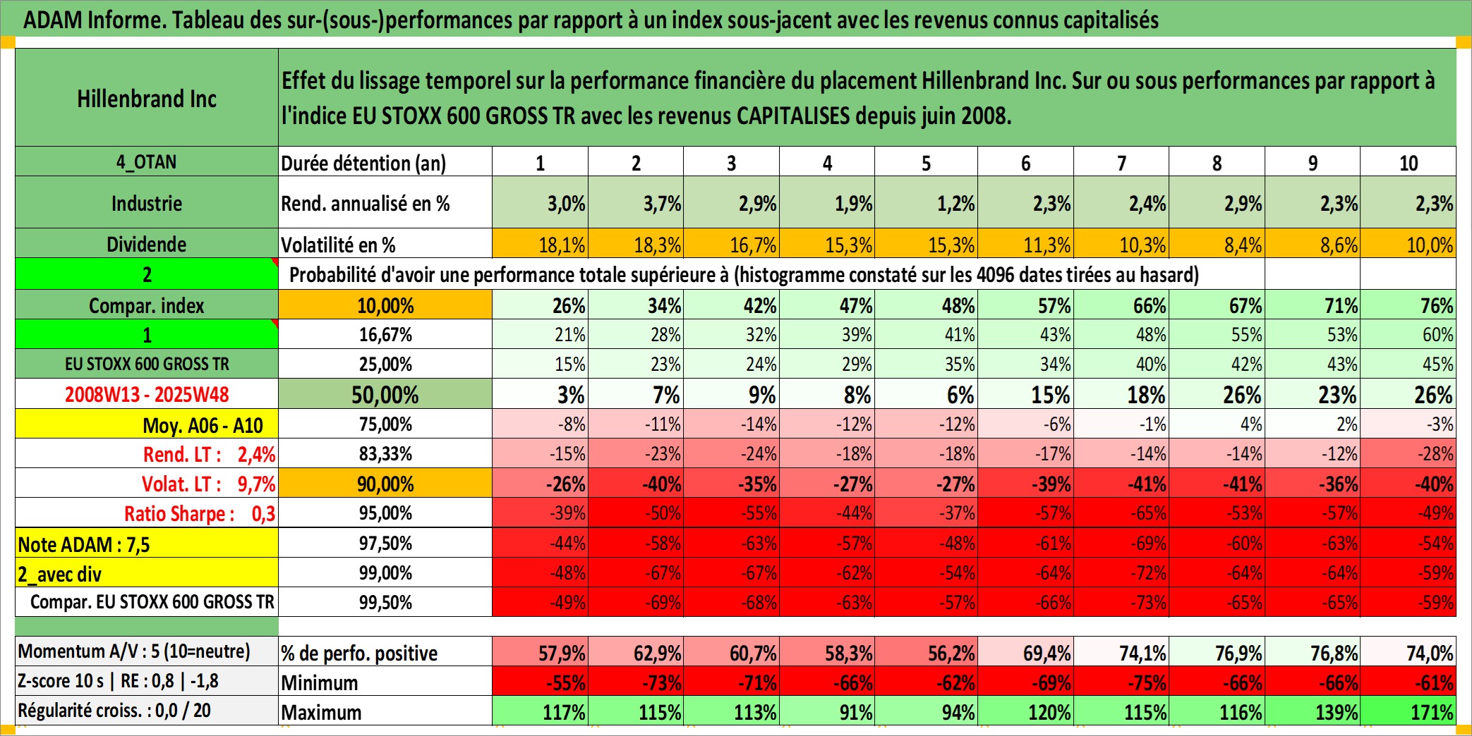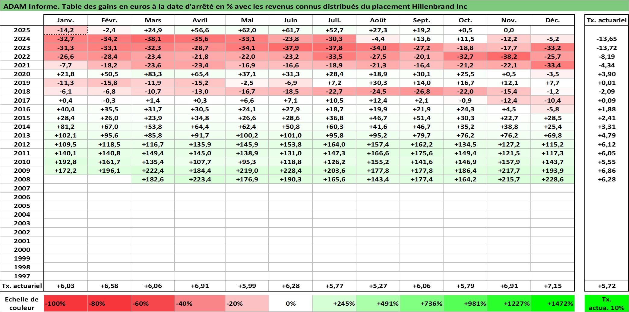 Site dédié aux investisseursPage dédiée sur site financeAnalyse des valorisations hebdomadaires de l'action Hillenbrand Inc. Cet actif est cote en USD. Les valorisations sont en contrevaleur EURO et couvrent les semaines 2008W13 a 2025W48. Les revenus de cet actif financier sont pris en compte depuis la semaine 2008W24. La note ESG de cet actif n'est pas connue.