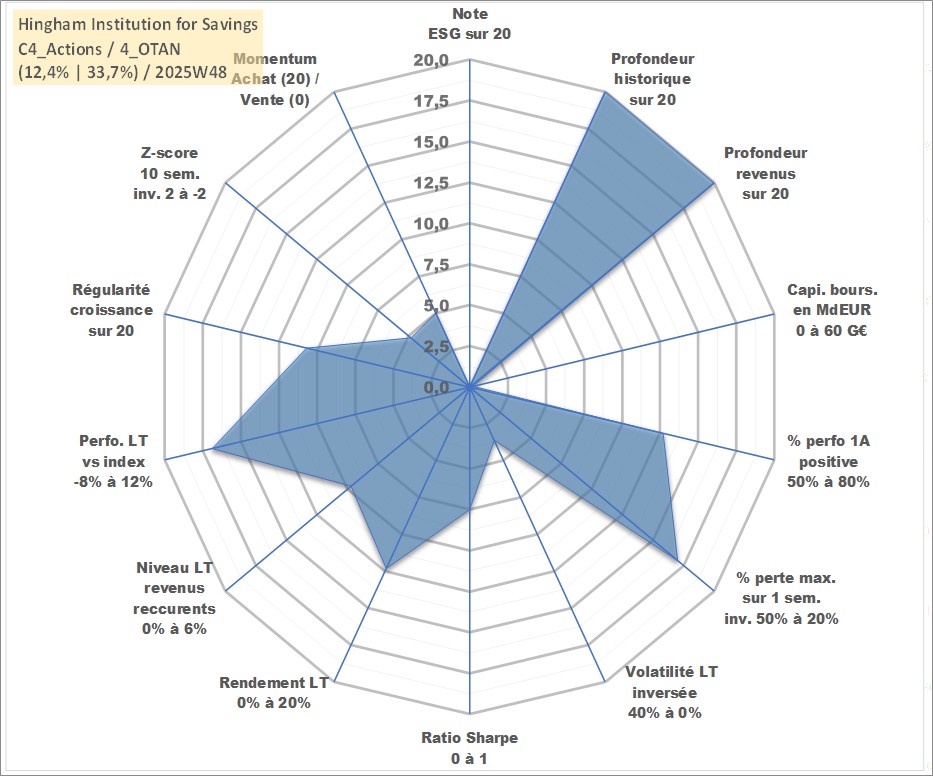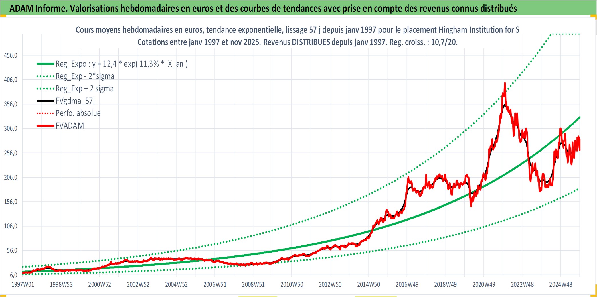 Site dédié aux investisseursPage dédiée sur site financeAnalyse des valorisations hebdomadaires de l'action Hingham Institution for Savings. Cet actif est cote en USD. Les valorisations sont en contrevaleur EURO et couvrent les semaines 1997W01 a 2025W48. Les revenus de cet actif financier sont pris en compte depuis la semaine 1997W02. La note ESG de cet actif n'est pas connue.