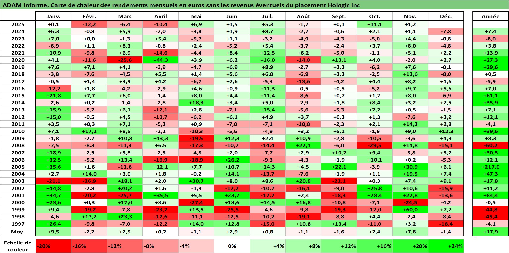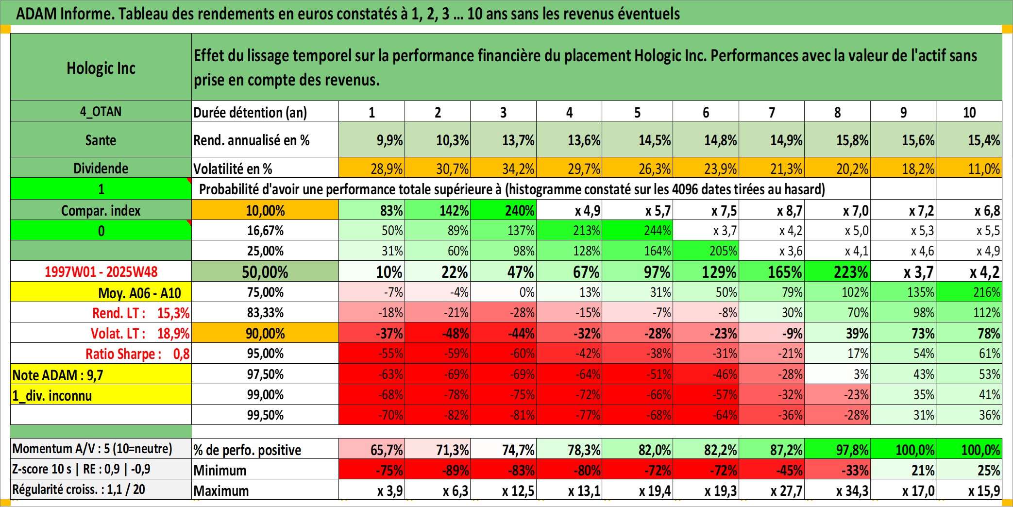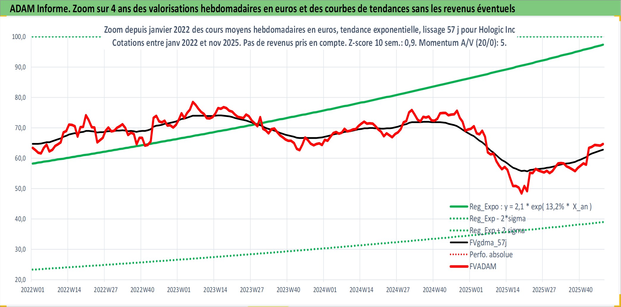 Site dédié aux investisseursPage dédiée sur site financeAnalyse des valorisations hebdomadaires de l'action Hologic Inc. Cet actif est cote en USD. Les valorisations sont en contrevaleur EURO et couvrent les semaines 1997W01 a 2025W48. Les revenus de cet actif financier ne sont pas connus car non existants ou non disponibles sur le site Yahoo Finance. La note globale ESG de cet actif est estimee a 6.0 (apres rebasage entre 0 et 20).