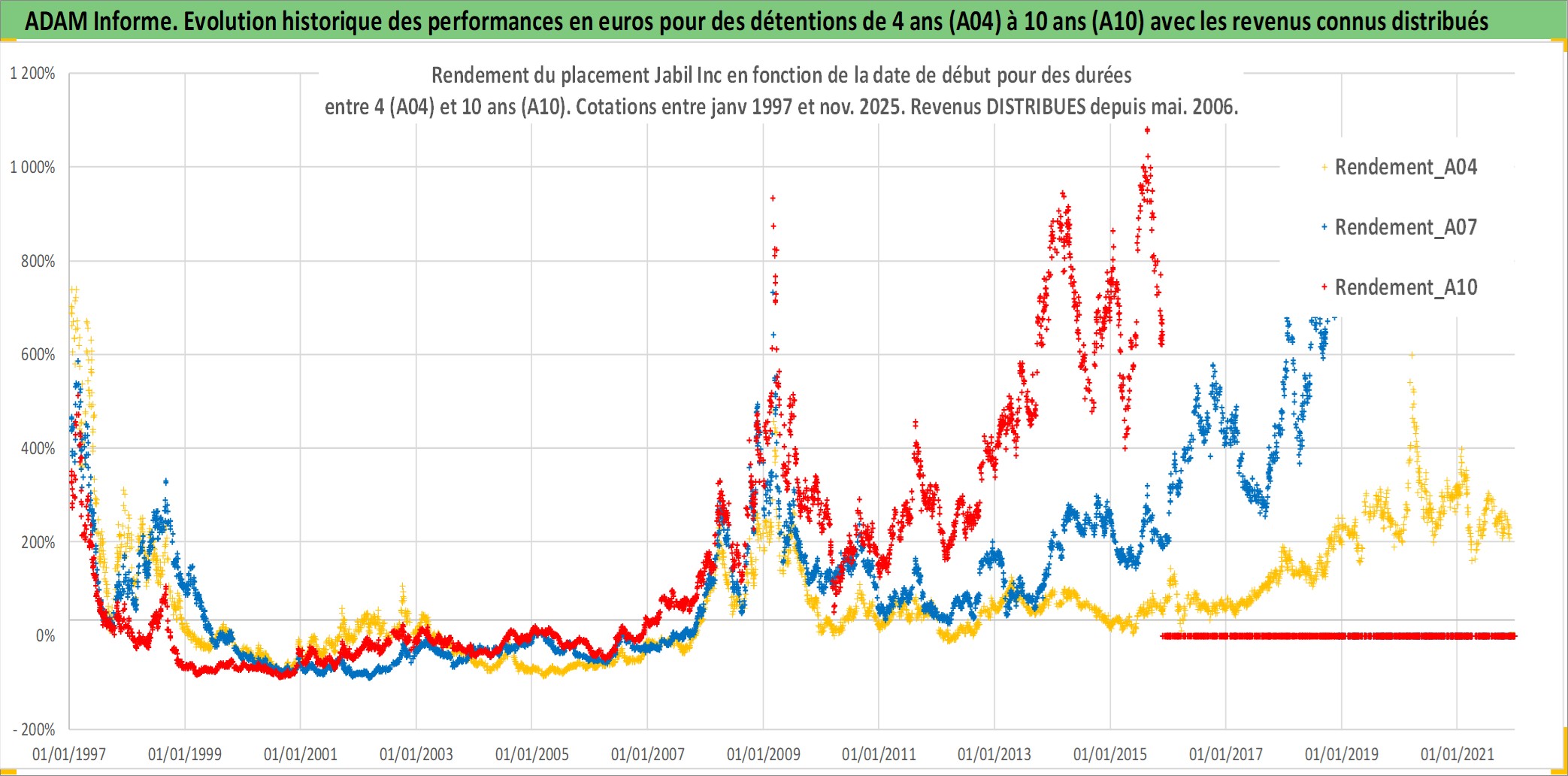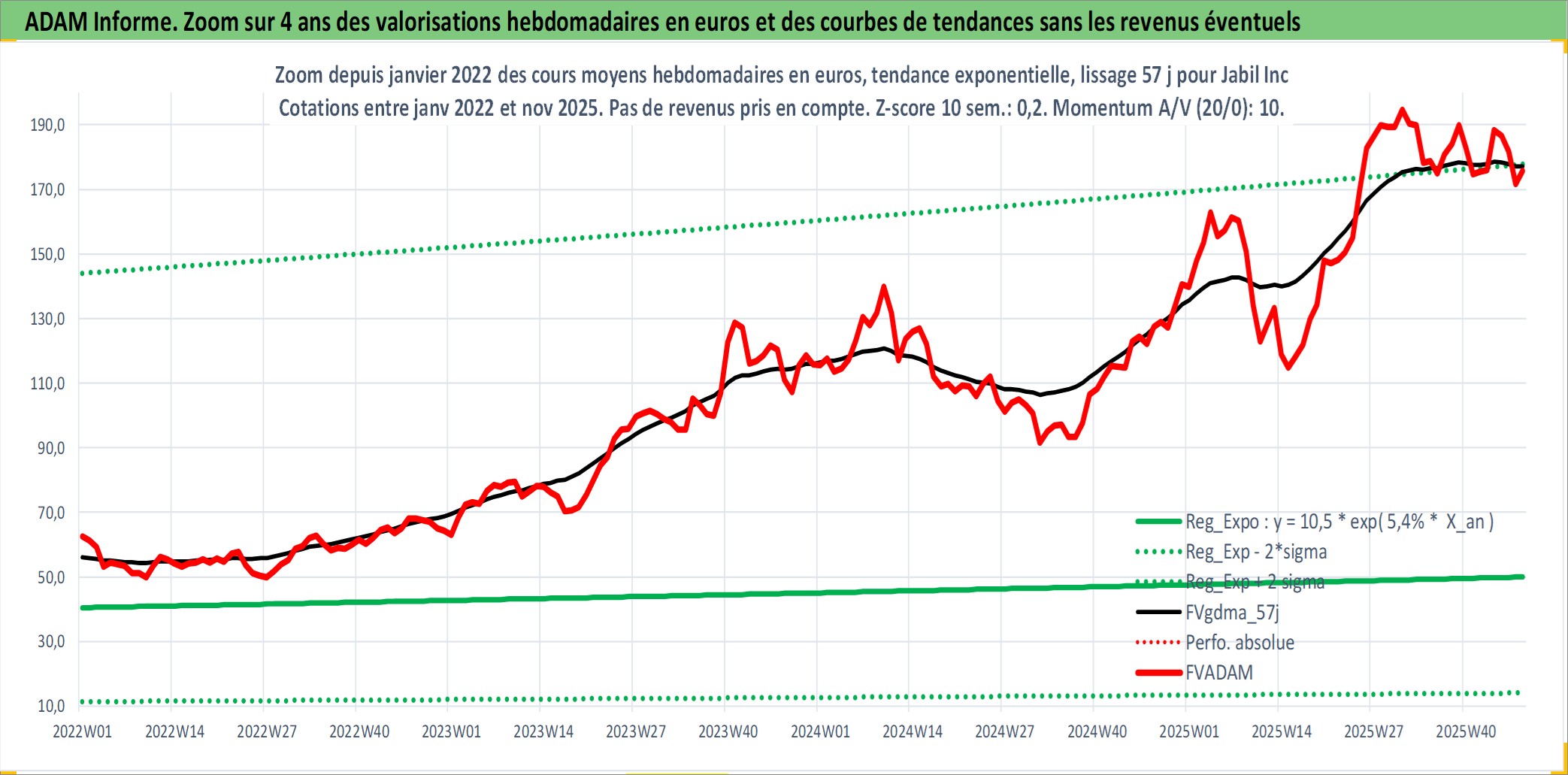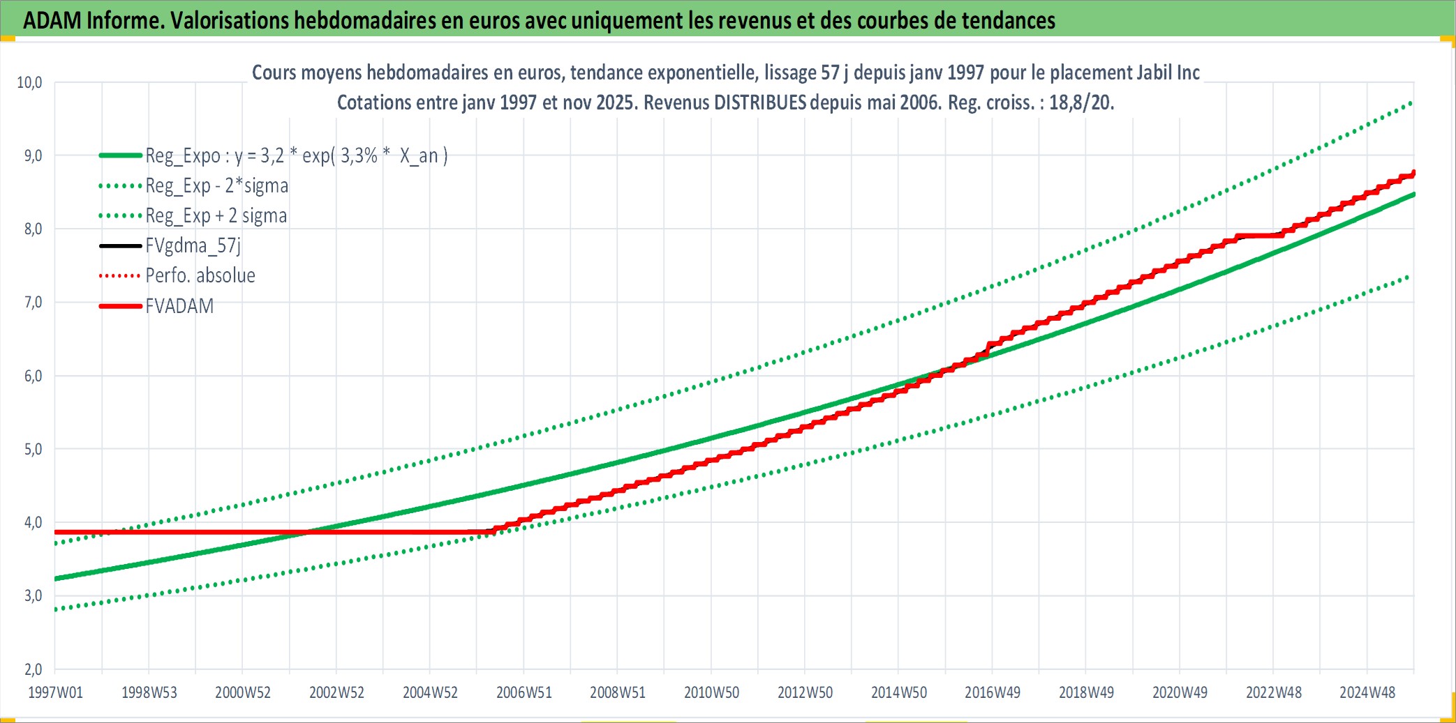 Site dédié aux investisseursPage dédiée sur site financeAnalyse des valorisations hebdomadaires de l'action Jabil Inc. Cet actif est cote en USD. Les valorisations sont en contrevaleur EURO et couvrent les semaines 1997W01 a 2025W48. Les revenus de cet actif financier sont pris en compte depuis la semaine 2006W19. La note ESG de cet actif n'est pas connue.