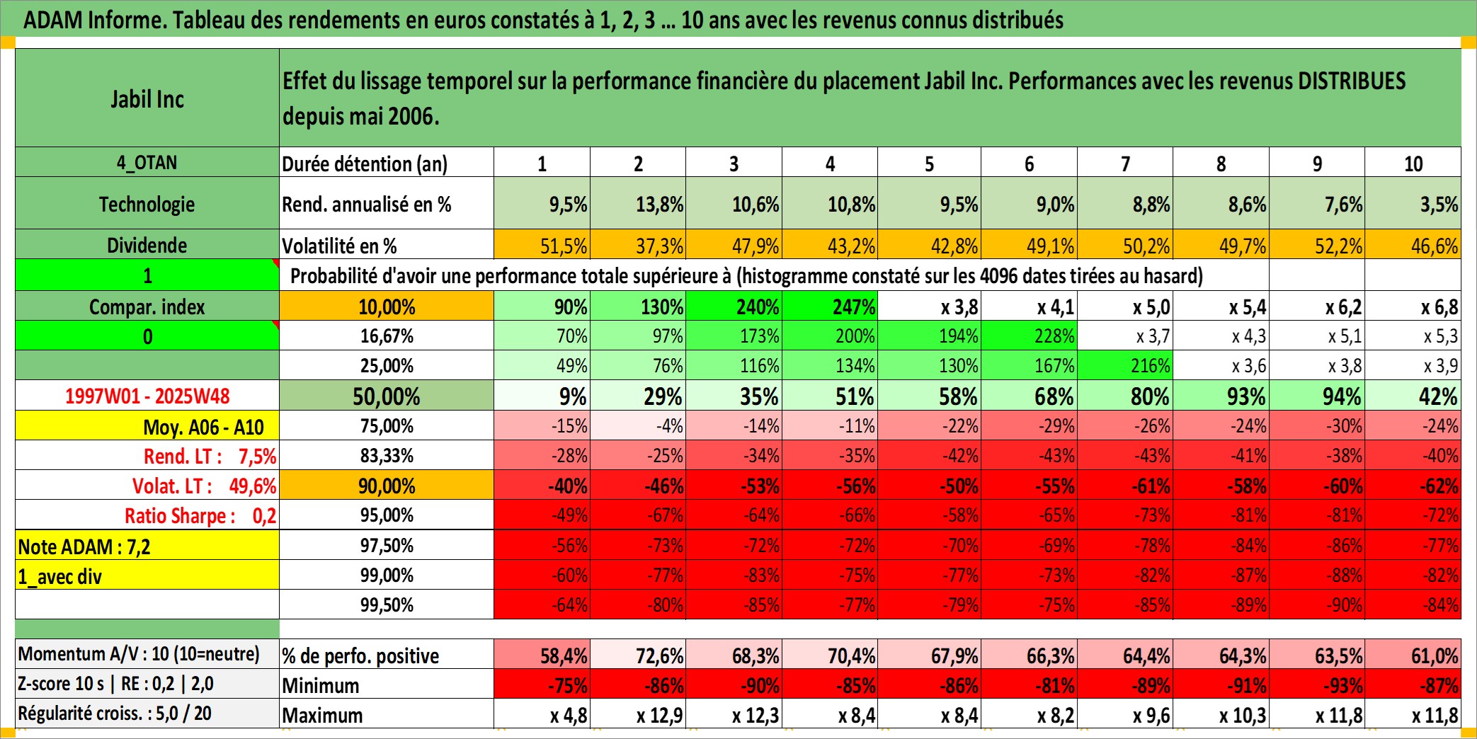 Dernière perfo 10 ans en %