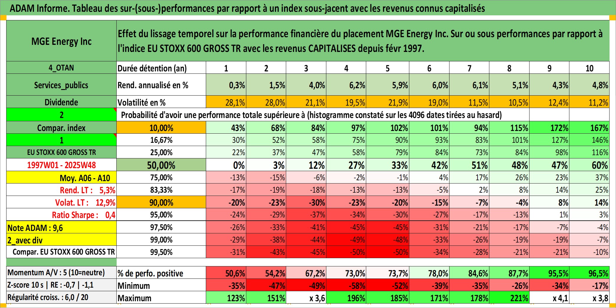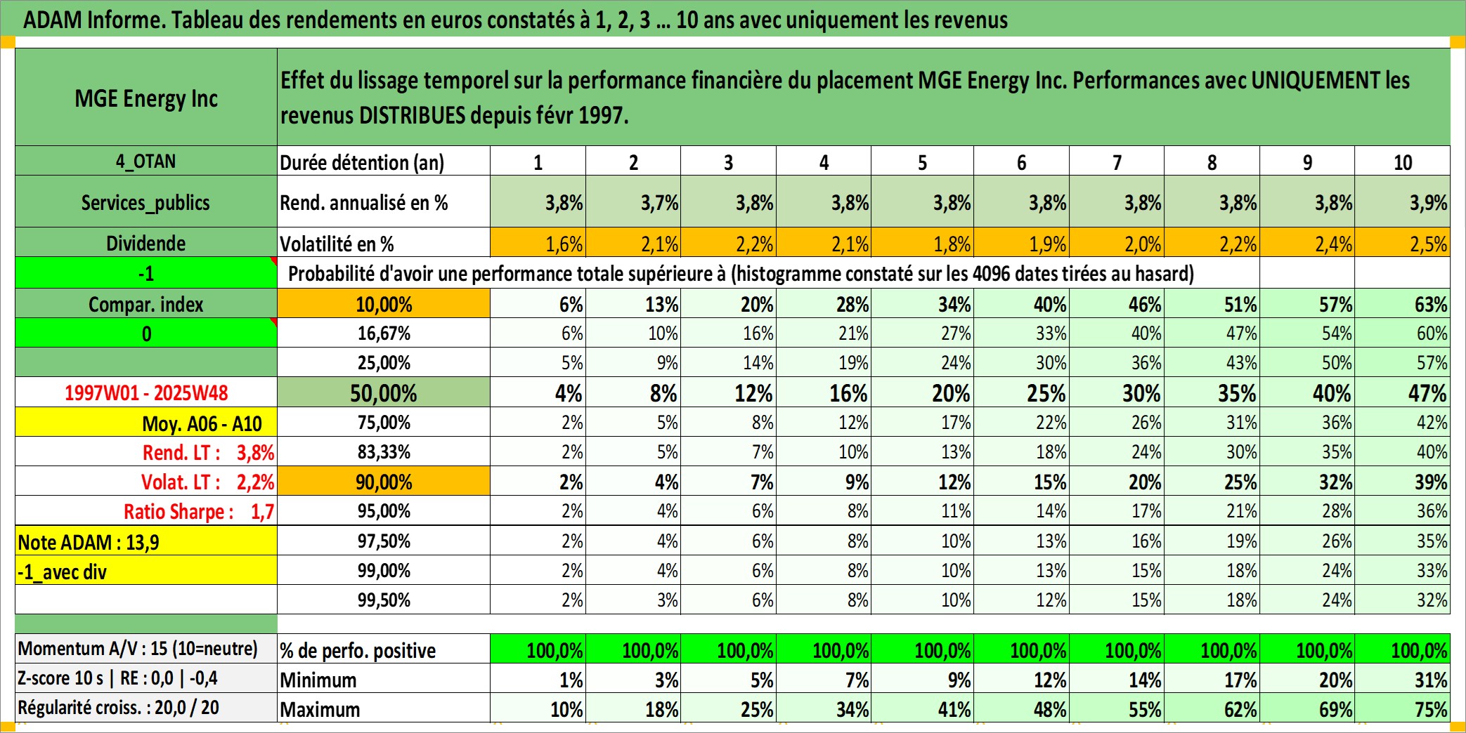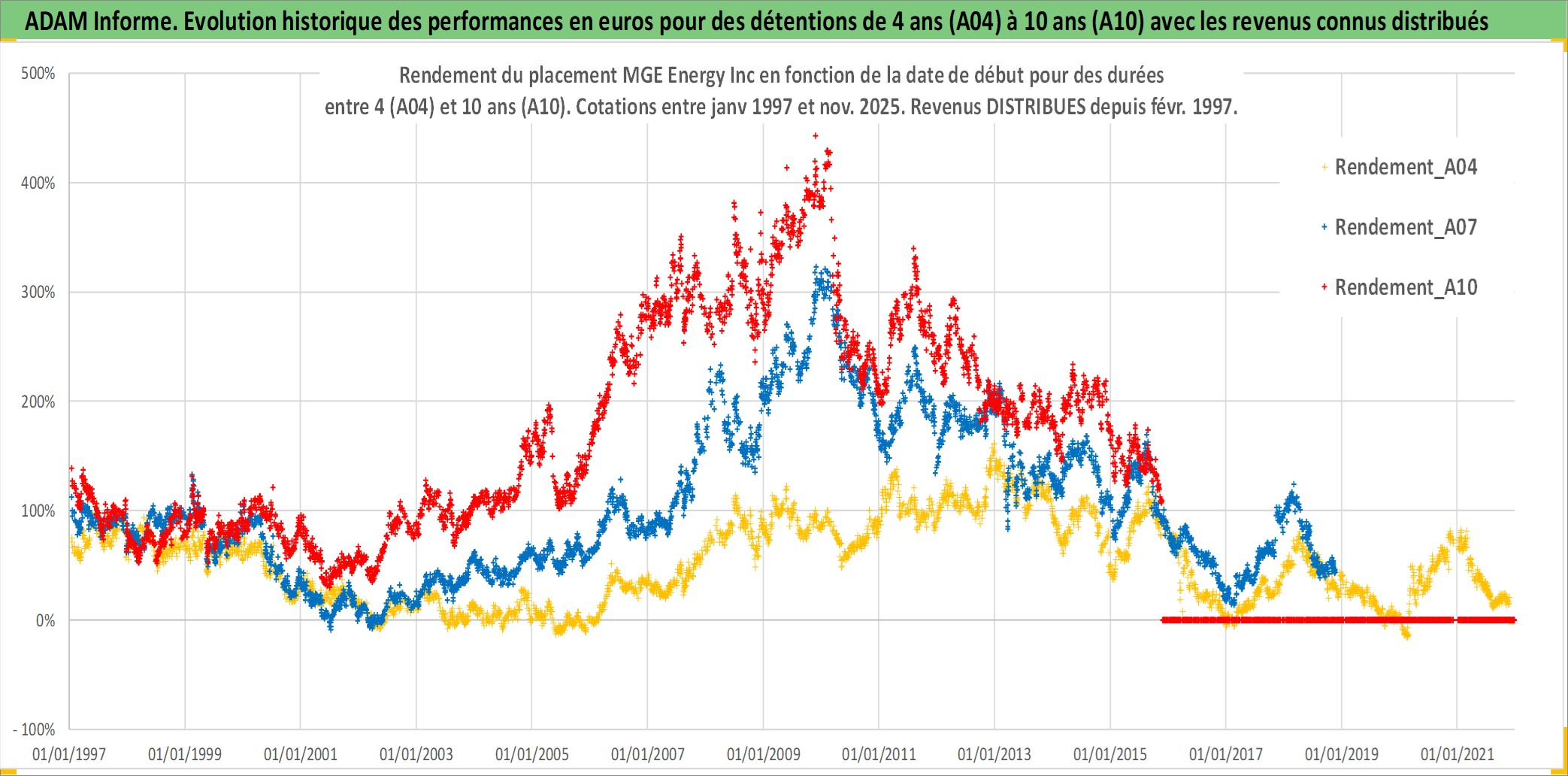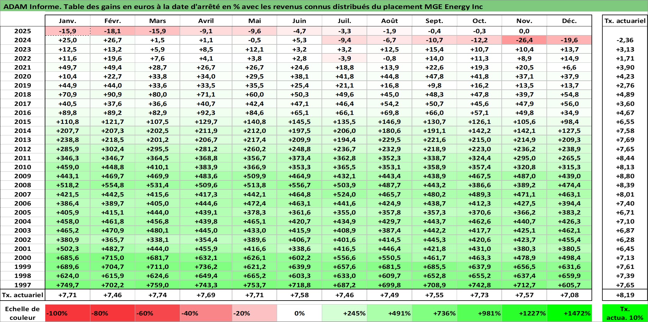 Site dédié aux investisseursPage dédiée sur site financeAnalyse des valorisations hebdomadaires de l'action MGE Energy Inc. Cet actif est cote en USD. Les valorisations sont en contrevaleur EURO et couvrent les semaines 1997W01 a 2025W48. Les revenus de cet actif financier sont pris en compte depuis la semaine 1997W09. La note ESG de cet actif n'est pas connue.
