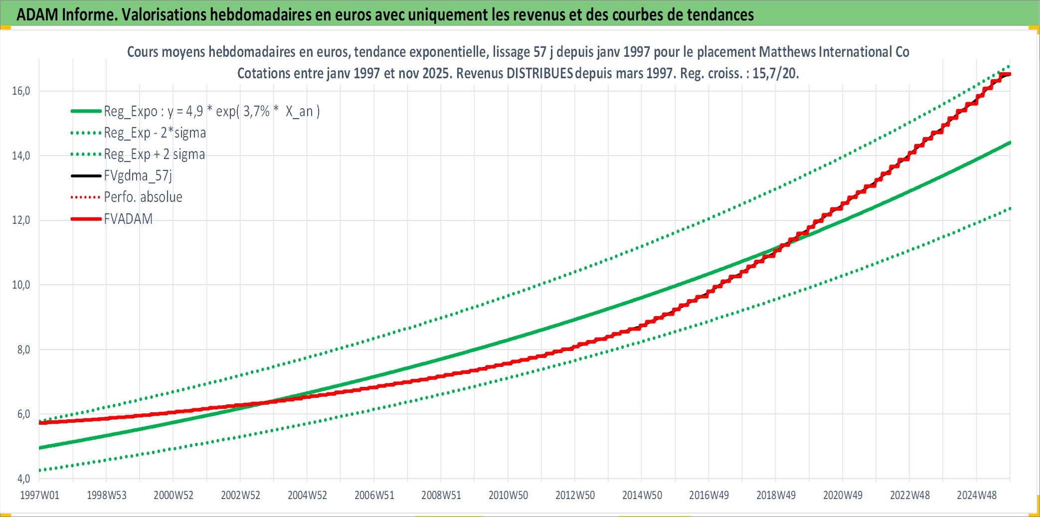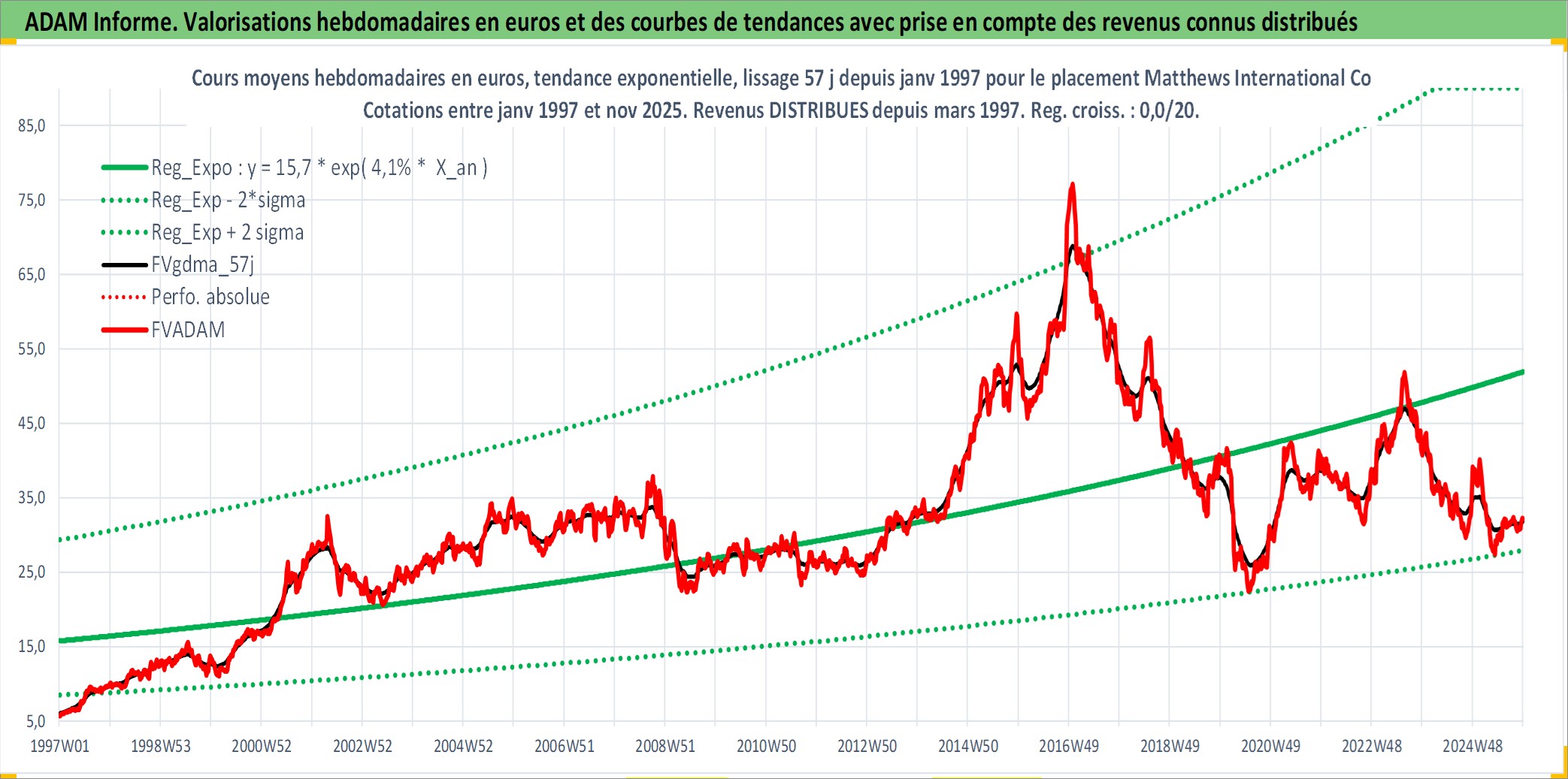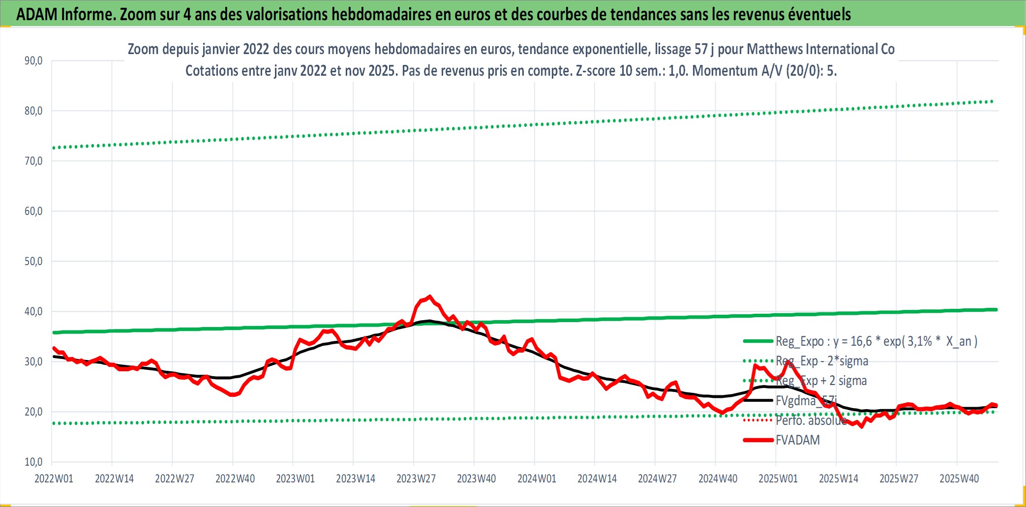 Site dédié aux investisseursPage dédiée sur site financeAnalyse des valorisations hebdomadaires de l'action Matthews International Corporation. Cet actif est cote en USD. Les valorisations sont en contrevaleur EURO et couvrent les semaines 1997W01 a 2025W48. Les revenus de cet actif financier sont pris en compte depuis la semaine 1997W13. La note ESG de cet actif n'est pas connue.