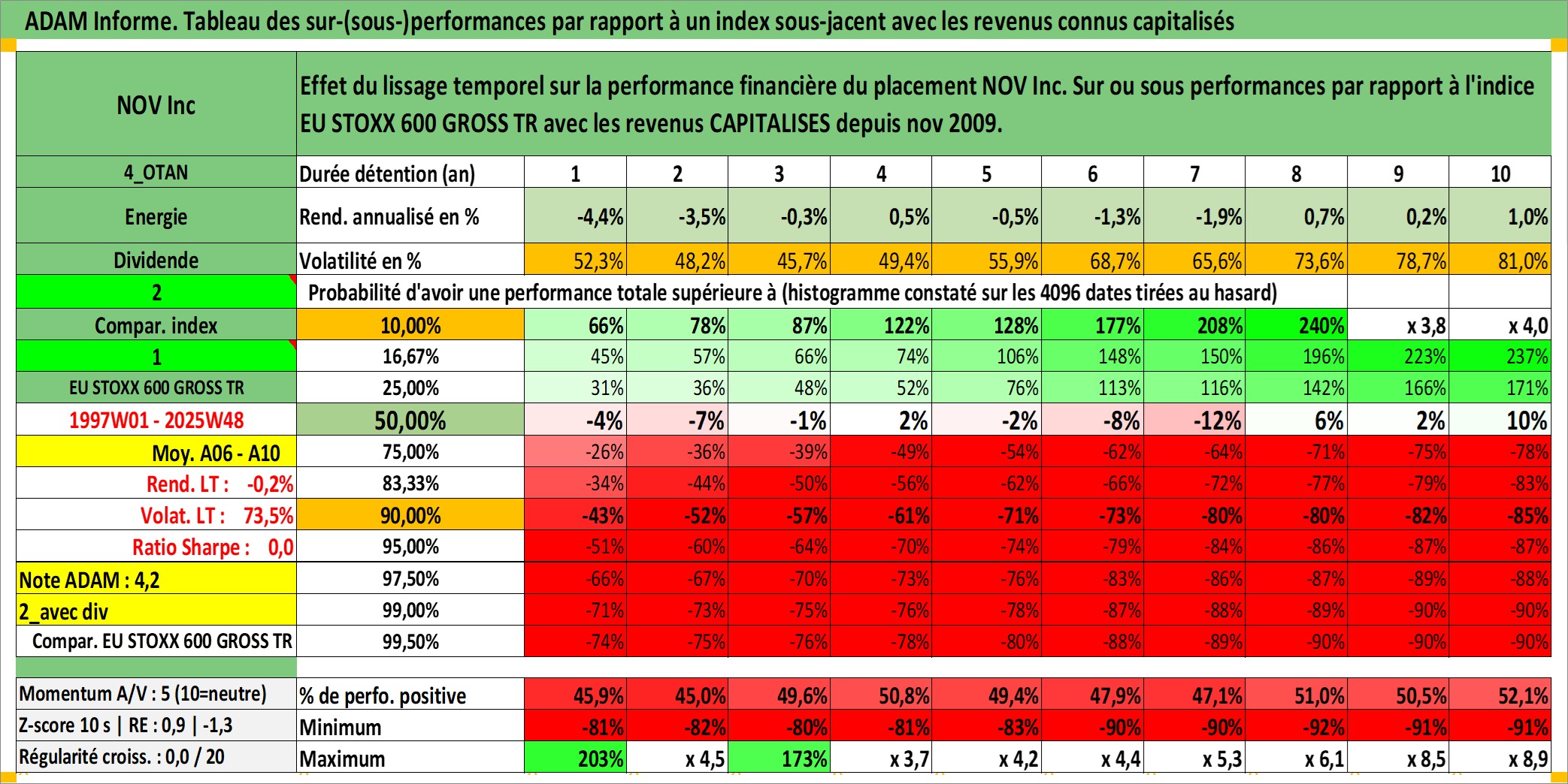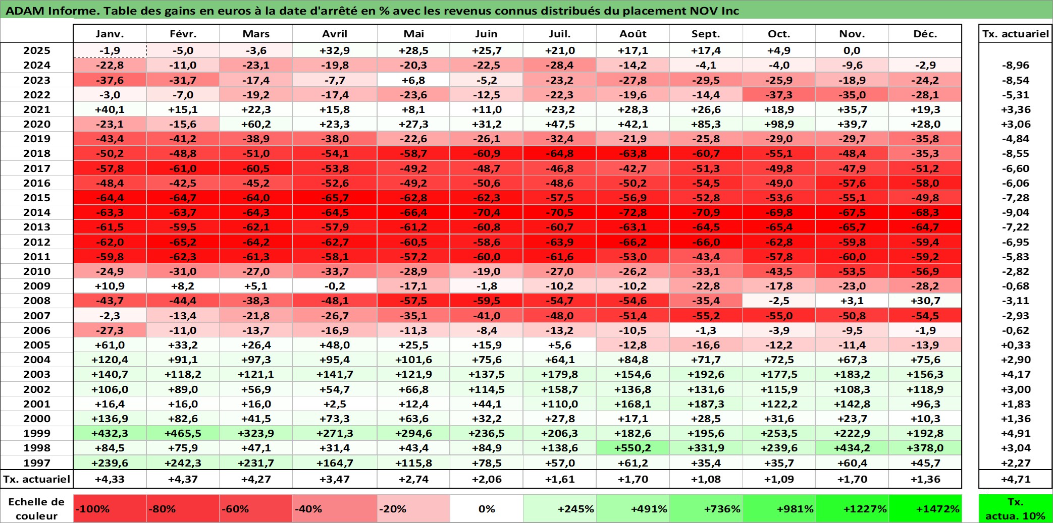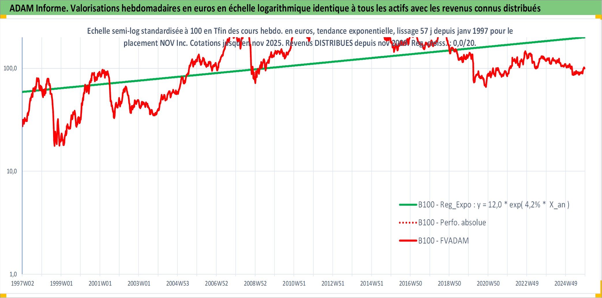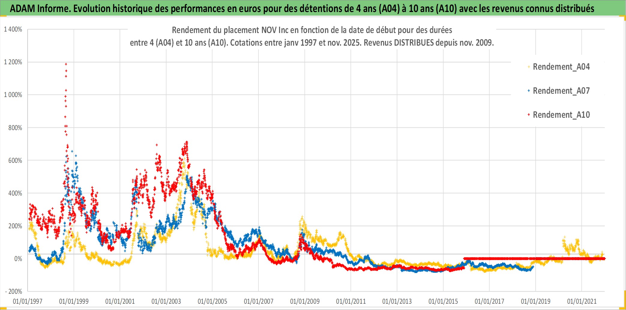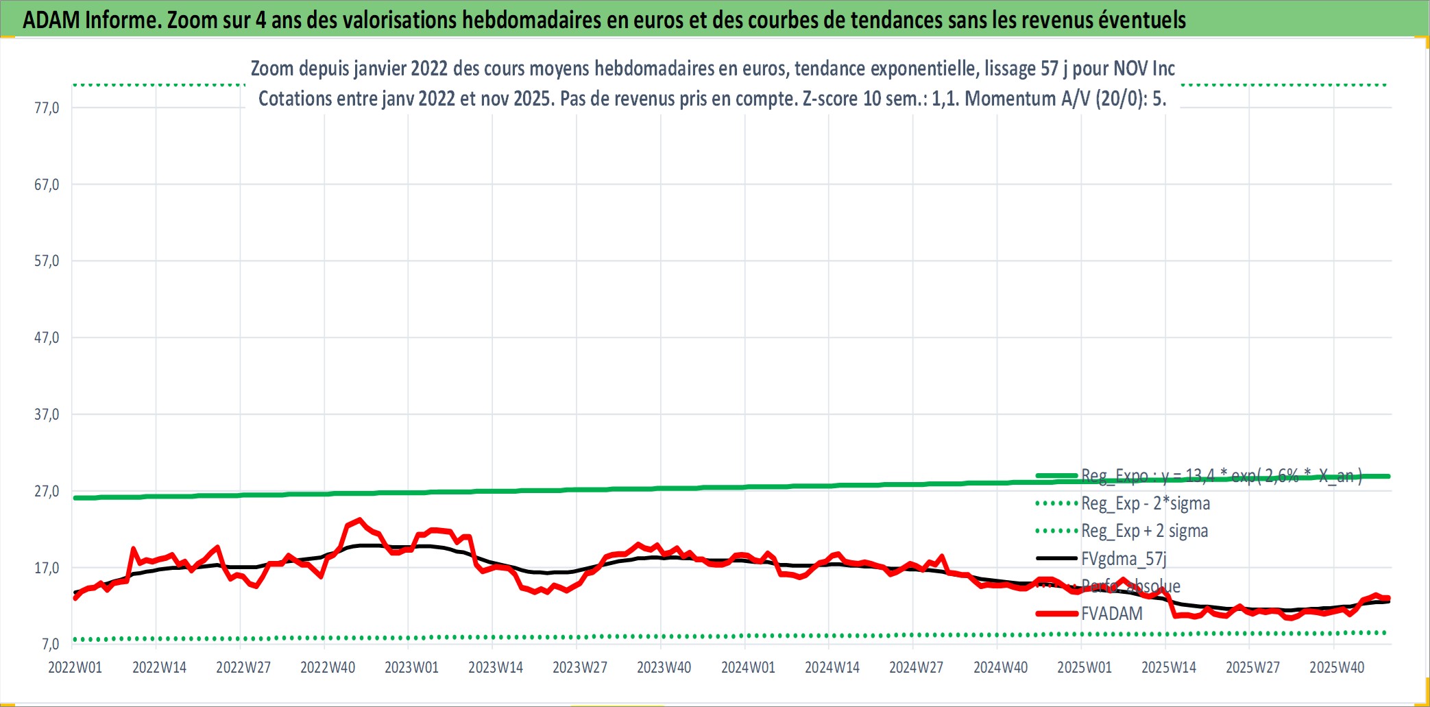 Site dédié aux investisseursPage dédiée sur site financeAnalyse des valorisations hebdomadaires de l'action NOV Inc. Cet actif est cote en USD. Les valorisations sont en contrevaleur EURO et couvrent les semaines 1997W01 a 2025W48. Les revenus de cet actif financier sont pris en compte depuis la semaine 2009W49. La note globale ESG de cet actif est estimee a 4.0 (apres rebasage entre 0 et 20).