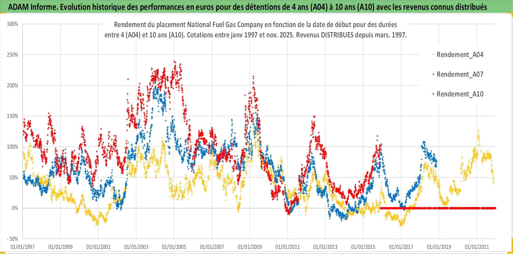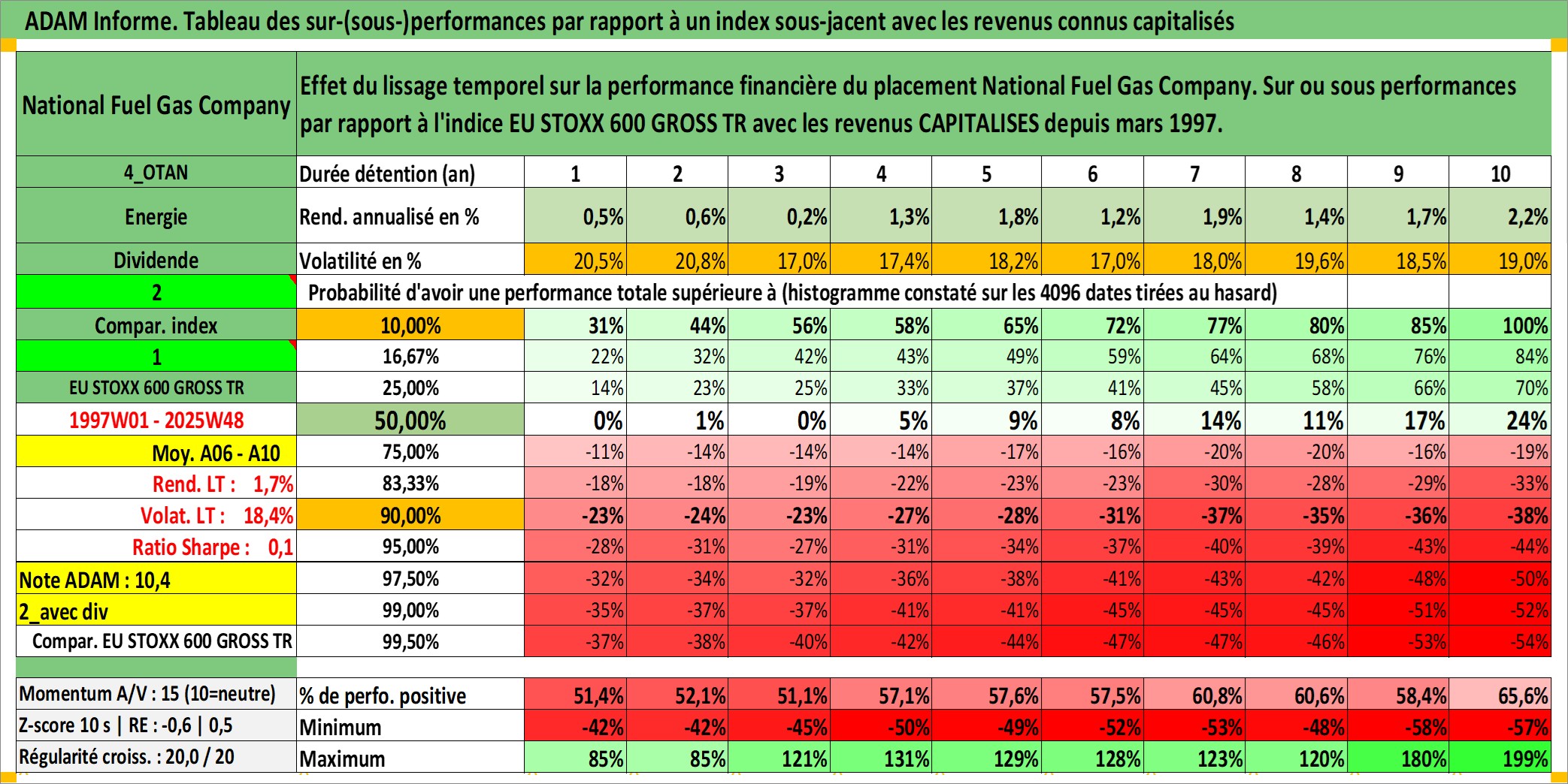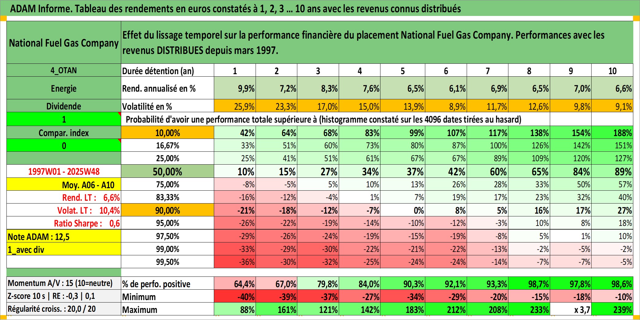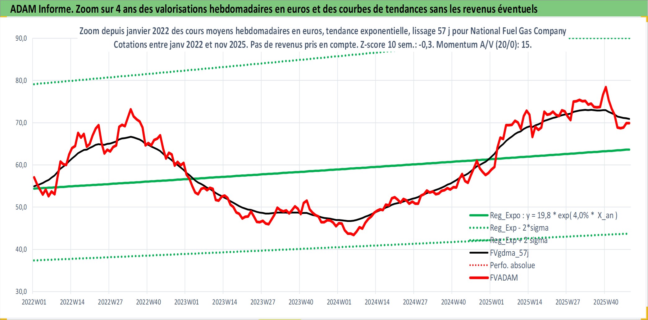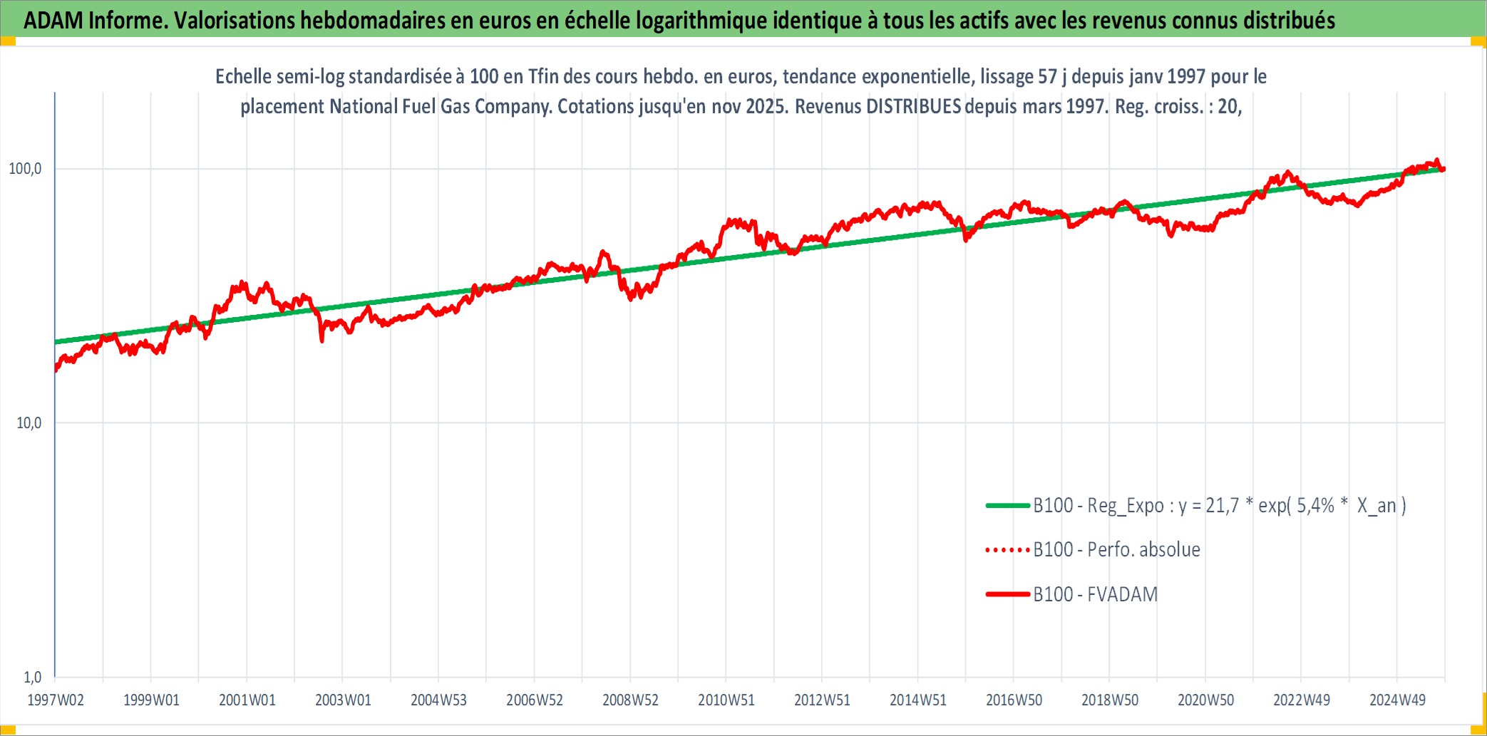 Site dédié aux investisseursPage dédiée sur site financeAnalyse des valorisations hebdomadaires de l'action National Fuel Gas Company. Cet actif est cote en USD. Les valorisations sont en contrevaleur EURO et couvrent les semaines 1997W01 a 2025W48. Les revenus de cet actif financier sont pris en compte depuis la semaine 1997W13. La note ESG de cet actif n'est pas connue.