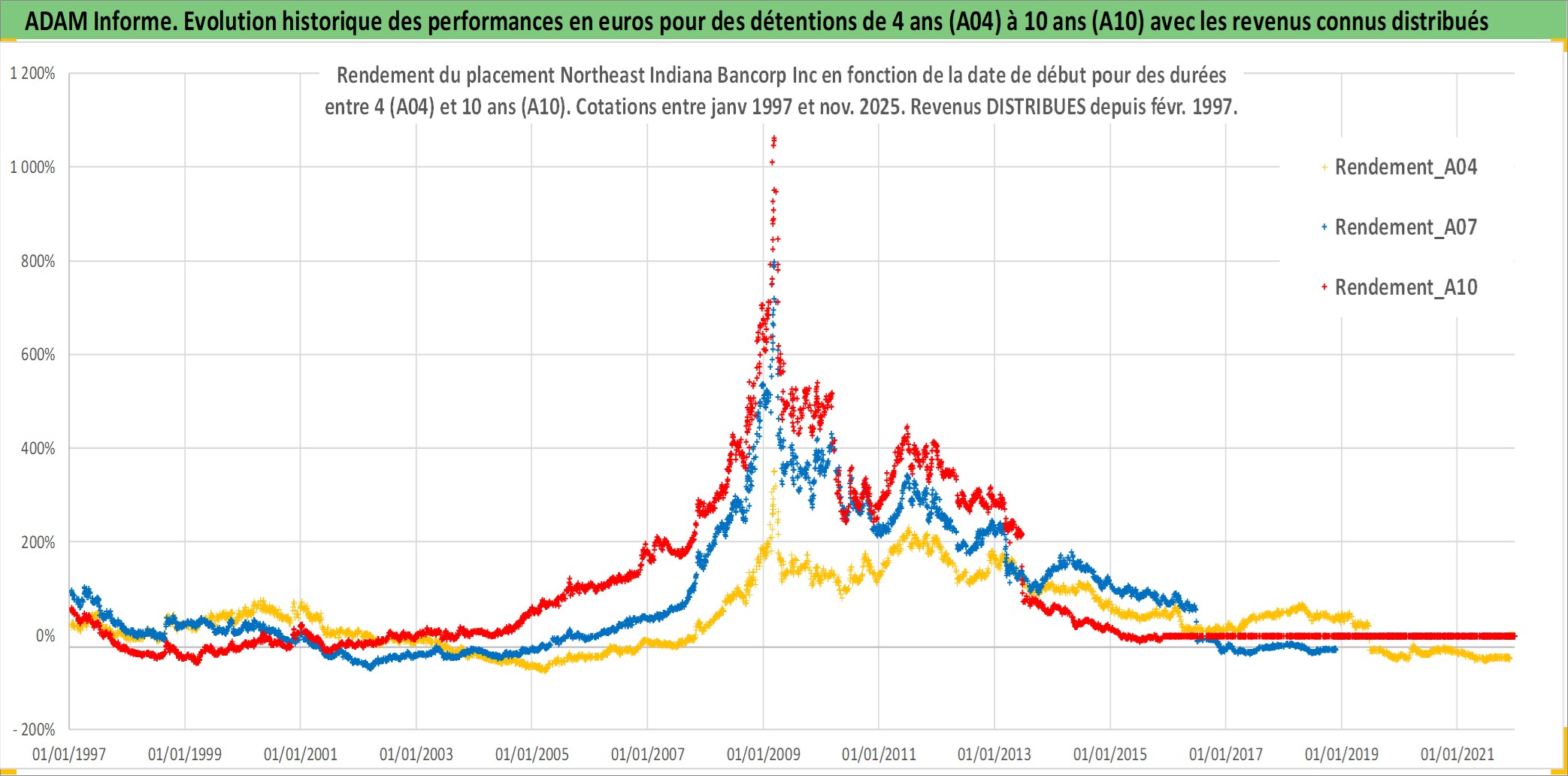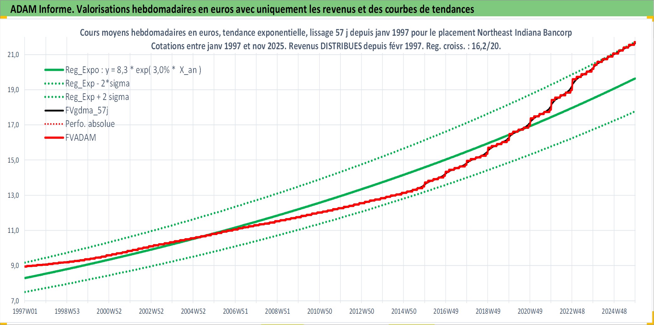 Site dédié aux investisseursPage dédiée sur site financeAnalyse des valorisations hebdomadaires de l'action Northeast Indiana Bancorp Inc. Cet actif est cote en USD. Les valorisations sont en contrevaleur EURO et couvrent les semaines 1997W01 a 2025W48. Les revenus de cet actif financier sont pris en compte depuis la semaine 1997W06. La note ESG de cet actif n'est pas connue.