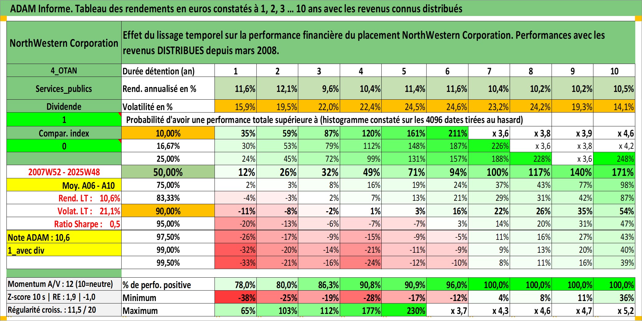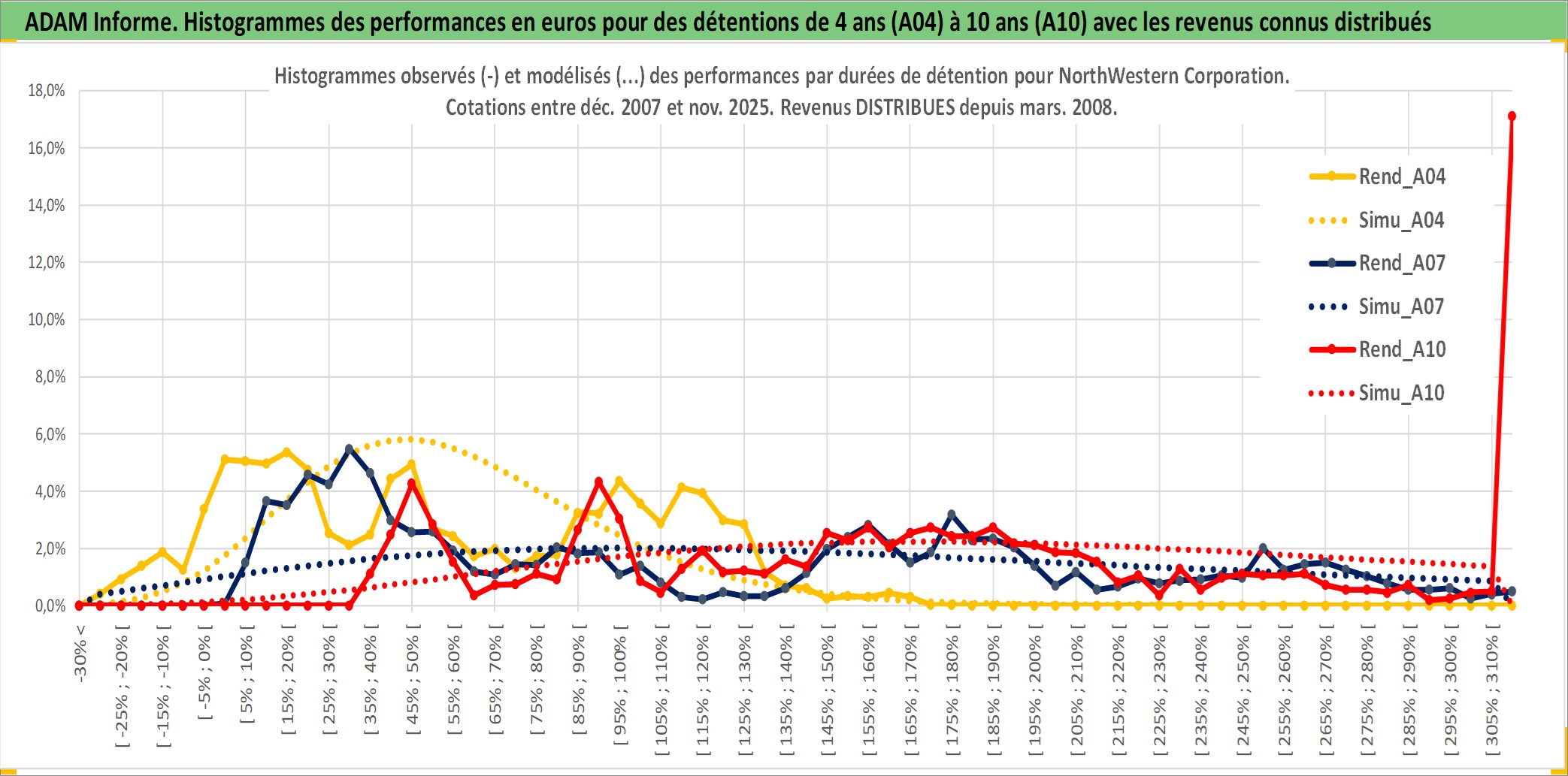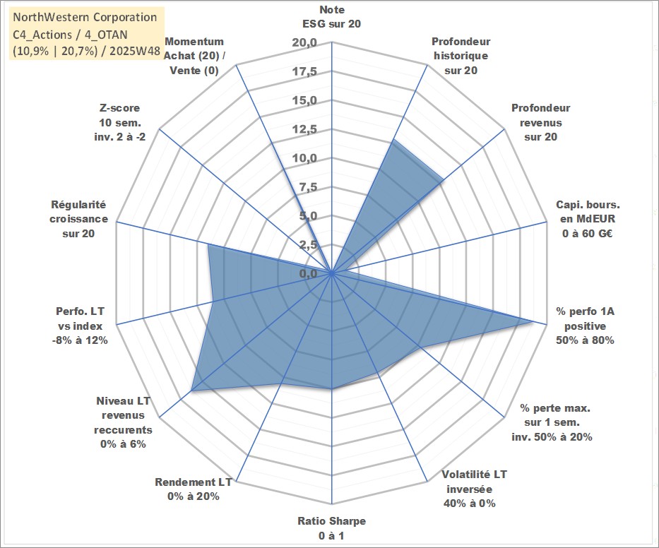 Site dédié aux investisseursPage dédiée sur site financeAnalyse des valorisations hebdomadaires de l'action NorthWestern Corporation. Cet actif est cote en USD. Les valorisations sont en contrevaleur EURO et couvrent les semaines 2007W52 a 2025W48. Les revenus de cet actif financier sont pris en compte depuis la semaine 2008W11. La note ESG de cet actif n'est pas connue.