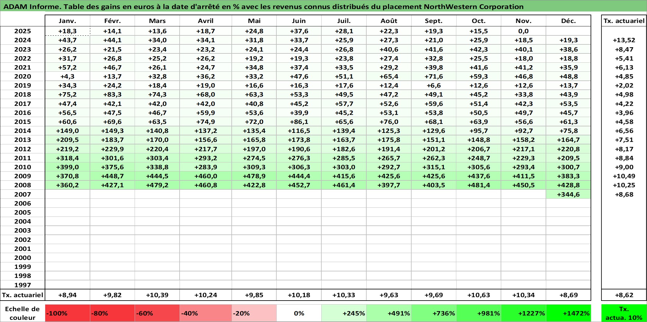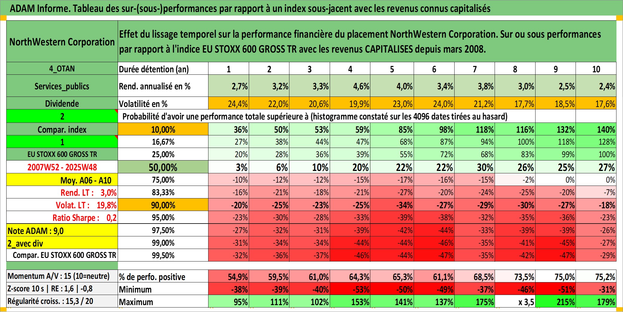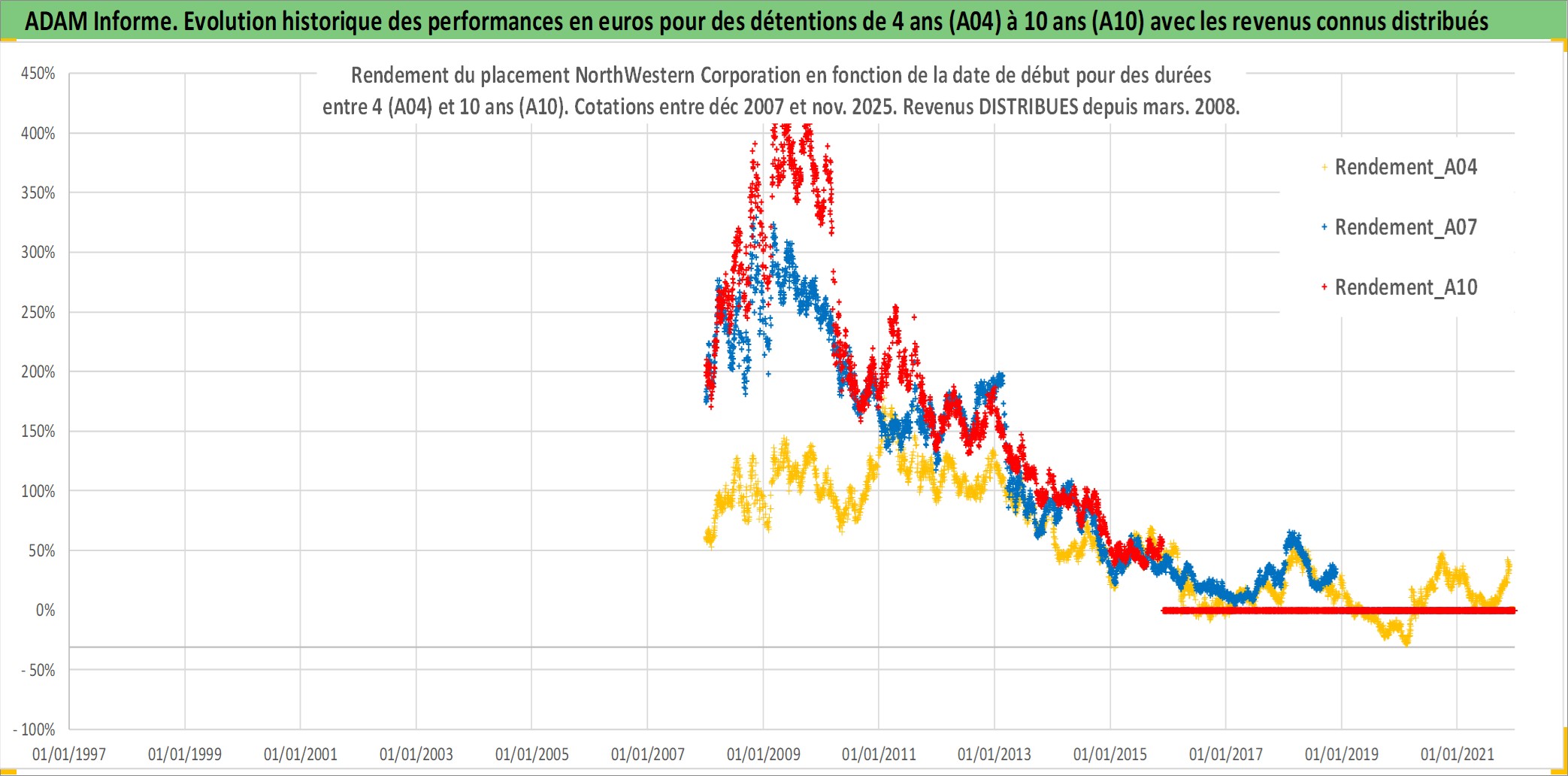 Site dédié aux investisseursPage dédiée sur site financeAnalyse des valorisations hebdomadaires de l'action NorthWestern Corporation. Cet actif est cote en USD. Les valorisations sont en contrevaleur EURO et couvrent les semaines 2007W52 a 2025W48. Les revenus de cet actif financier sont pris en compte depuis la semaine 2008W11. La note ESG de cet actif n'est pas connue.