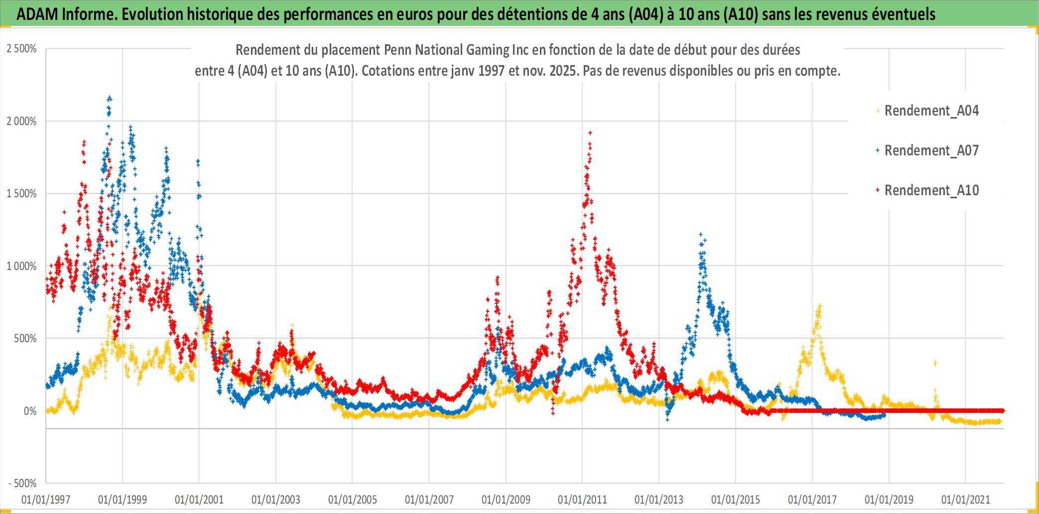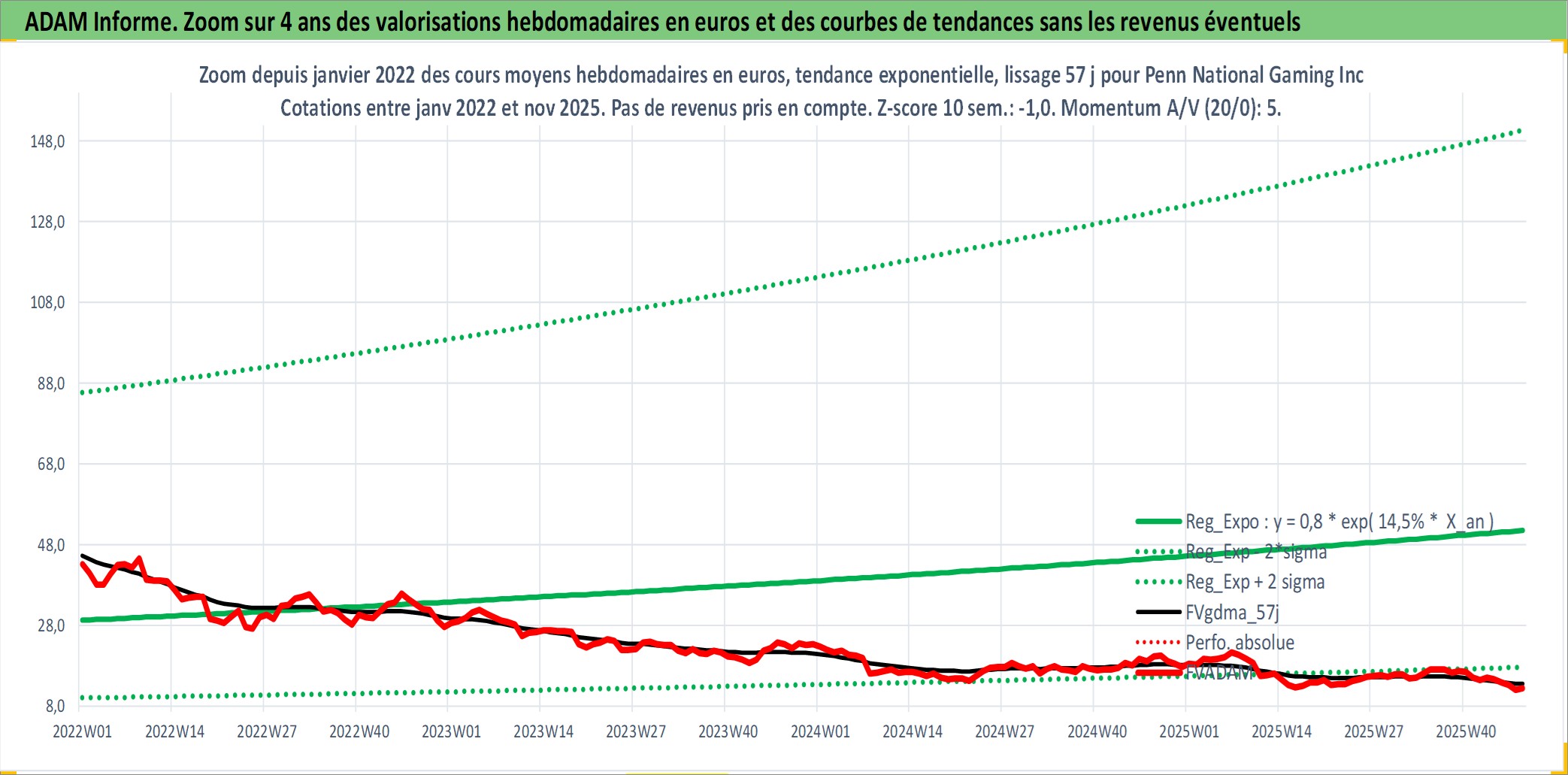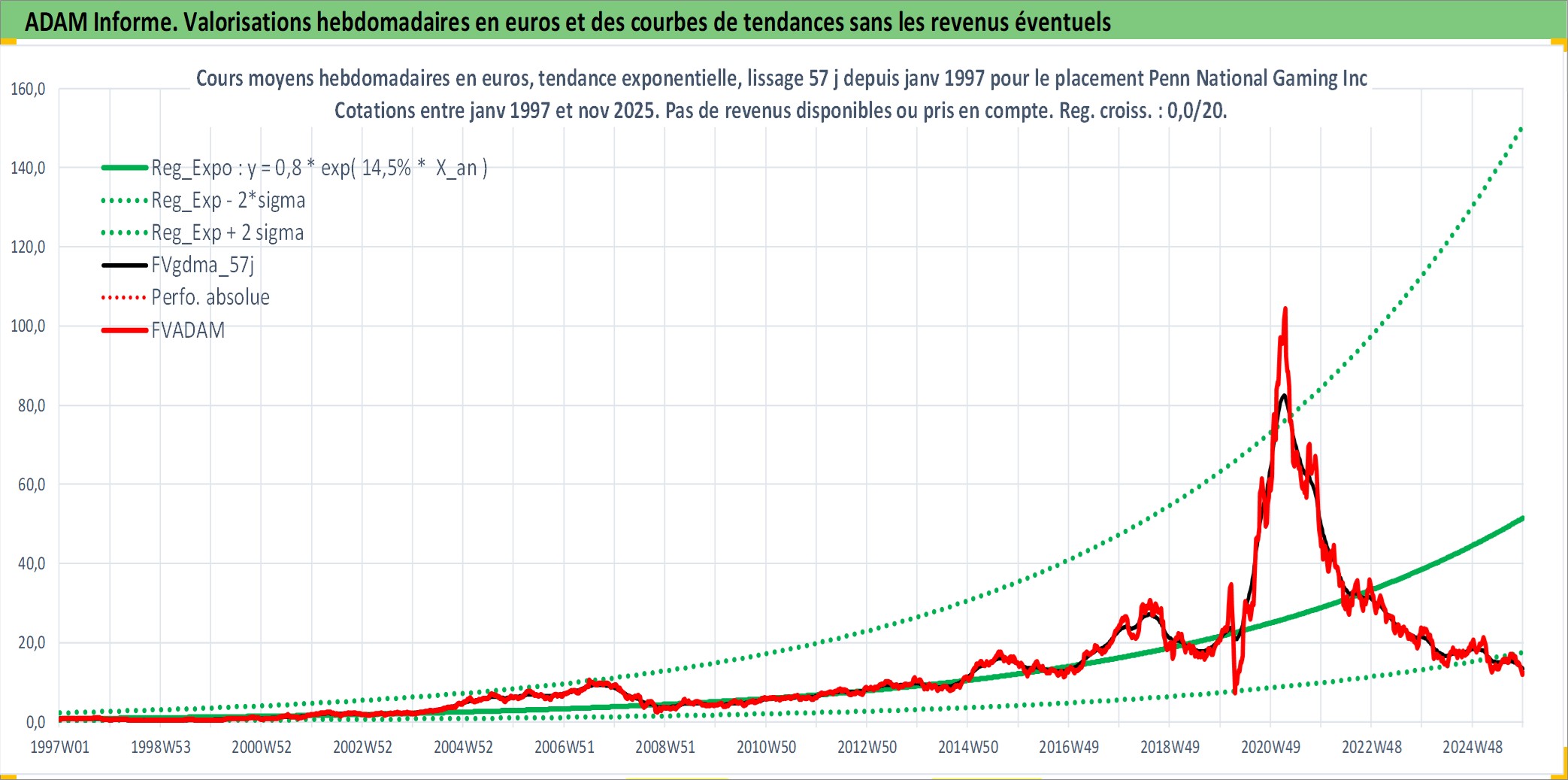 Site dédié aux investisseursPage dédiée sur site financeAnalyse des valorisations hebdomadaires de l'action Penn National Gaming Inc. Cet actif est cote en USD. Les valorisations sont en contrevaleur EURO et couvrent les semaines 1997W01 a 2025W48. Les revenus de cet actif financier ne sont pas connus car non existants ou non disponibles sur le site Yahoo Finance. La note ESG de cet actif n'est pas connue.