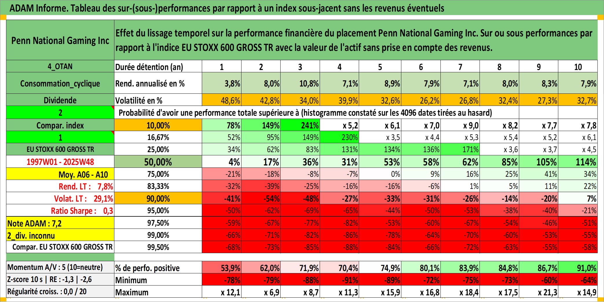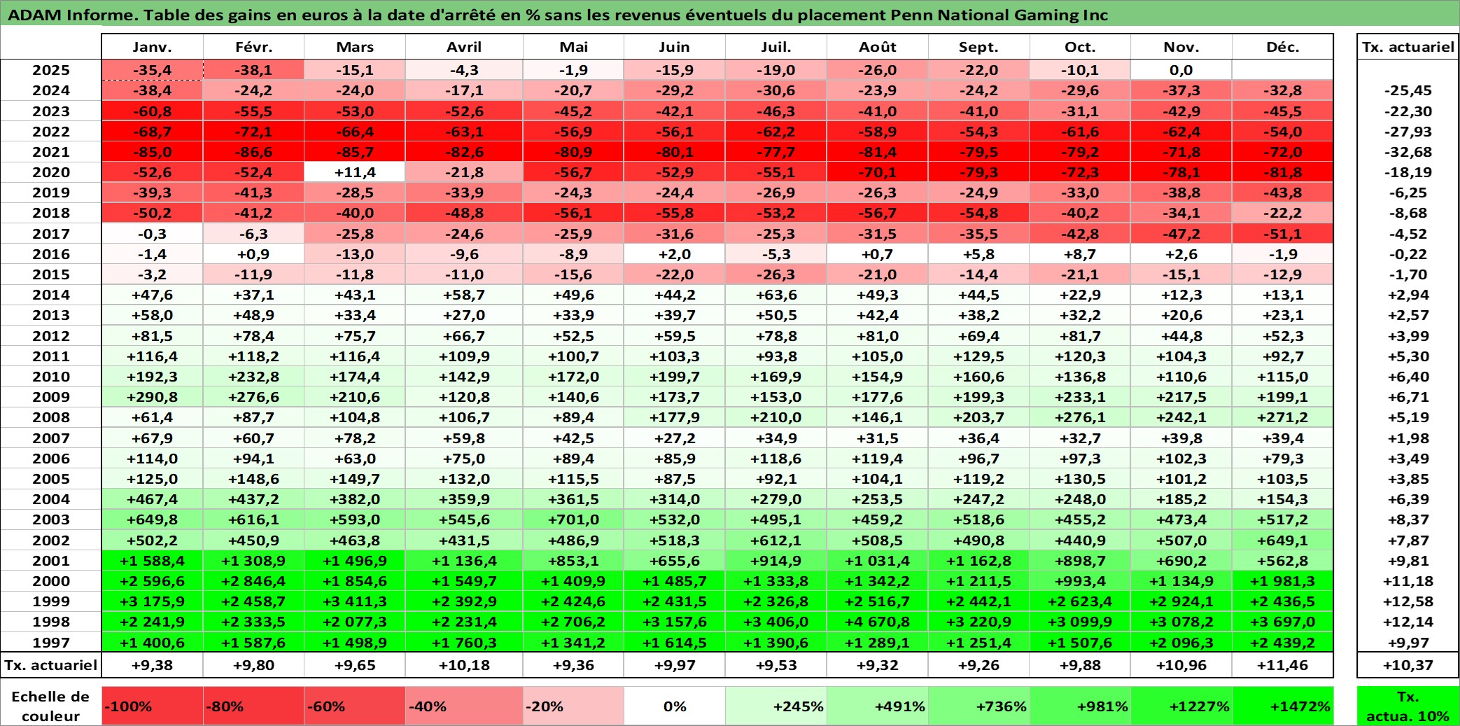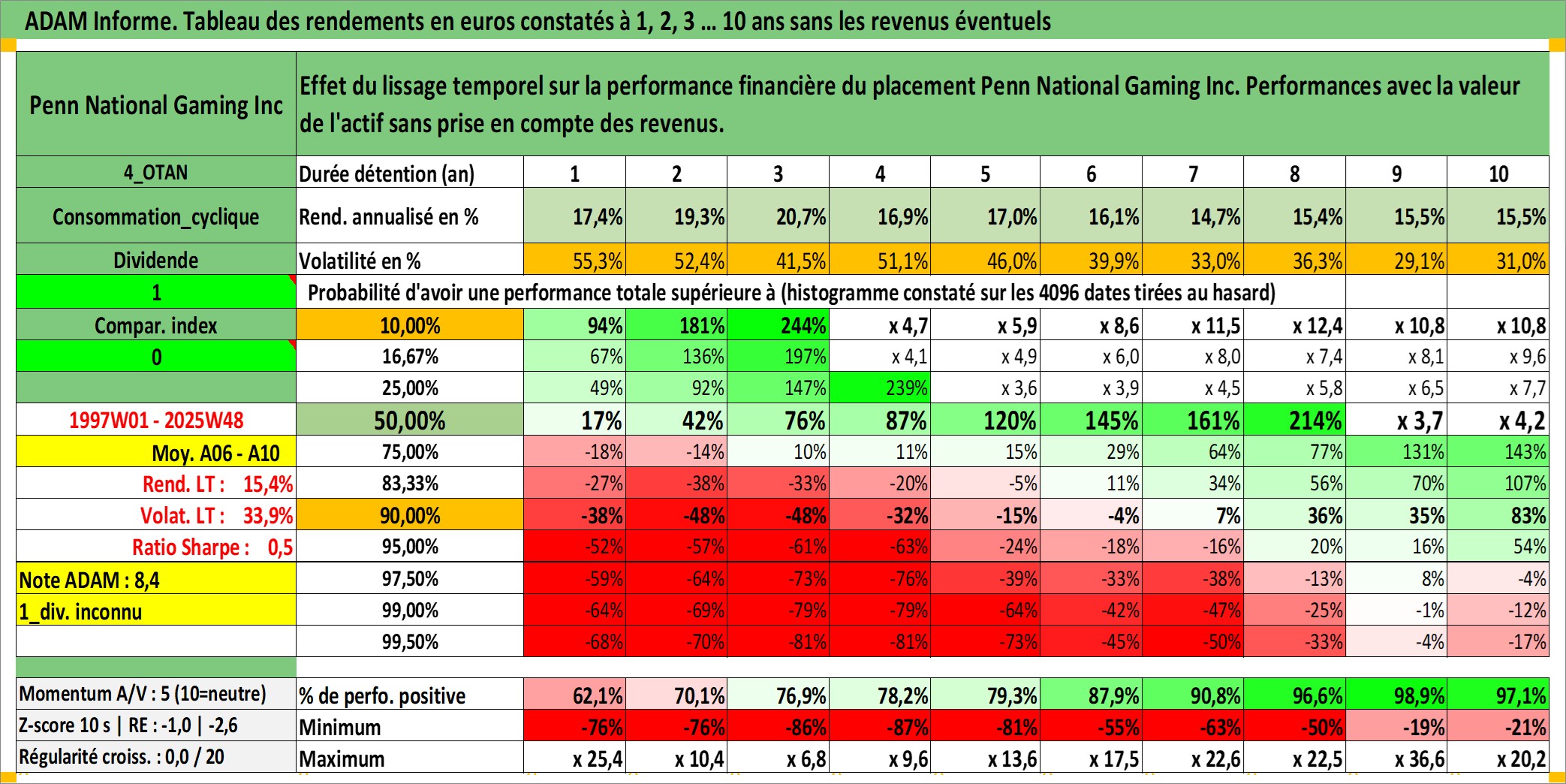 Site dédié aux investisseursPage dédiée sur site financeAnalyse des valorisations hebdomadaires de l'action Penn National Gaming Inc. Cet actif est cote en USD. Les valorisations sont en contrevaleur EURO et couvrent les semaines 1997W01 a 2025W48. Les revenus de cet actif financier ne sont pas connus car non existants ou non disponibles sur le site Yahoo Finance. La note ESG de cet actif n'est pas connue.