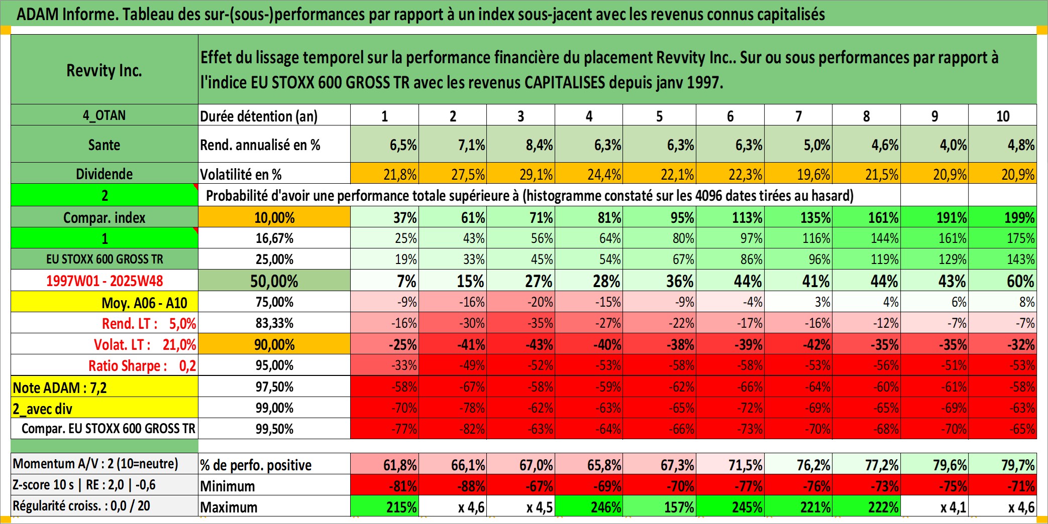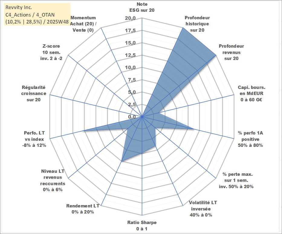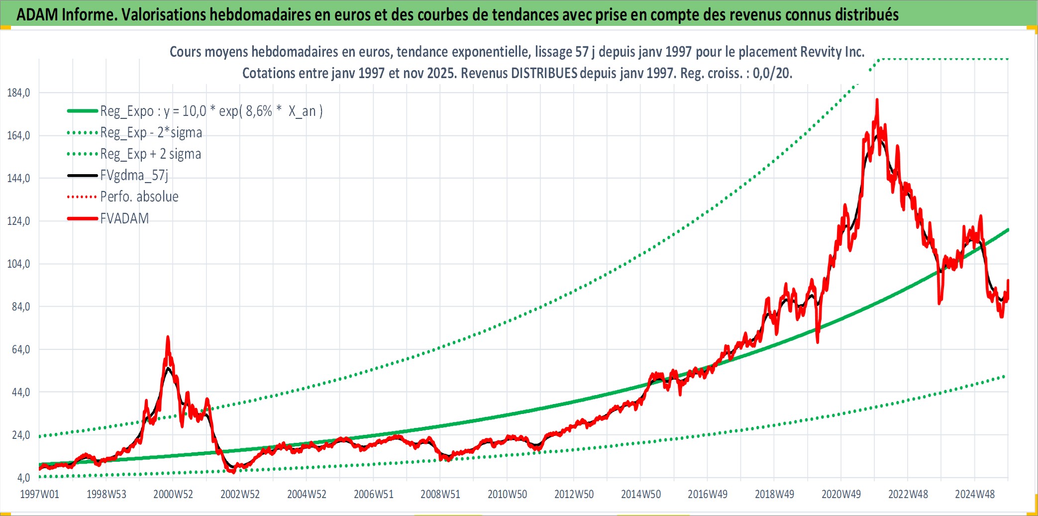 Site dédié aux investisseursPage dédiée sur site financeAnalyse des valorisations hebdomadaires de l'action Revvity Inc.. Cet actif est cote en USD. Les valorisations sont en contrevaleur EURO et couvrent les semaines 1997W01 a 2025W48. Les revenus de cet actif financier sont pris en compte depuis la semaine 1997W03. La note ESG de cet actif n'est pas connue.