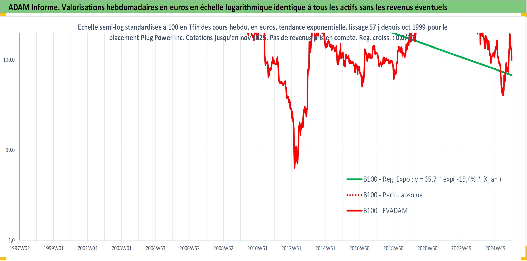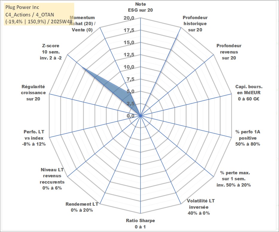 Site dédié aux investisseursPage dédiée sur site financeAnalyse des valorisations hebdomadaires de l'action Plug Power Inc. Cet actif est cote en USD. Les valorisations sont en contrevaleur EURO et couvrent les semaines 1999W43 a 2025W48. Les revenus de cet actif financier ne sont pas connus car non existants ou non disponibles sur le site Yahoo Finance. La note ESG de cet actif n'est pas connue.