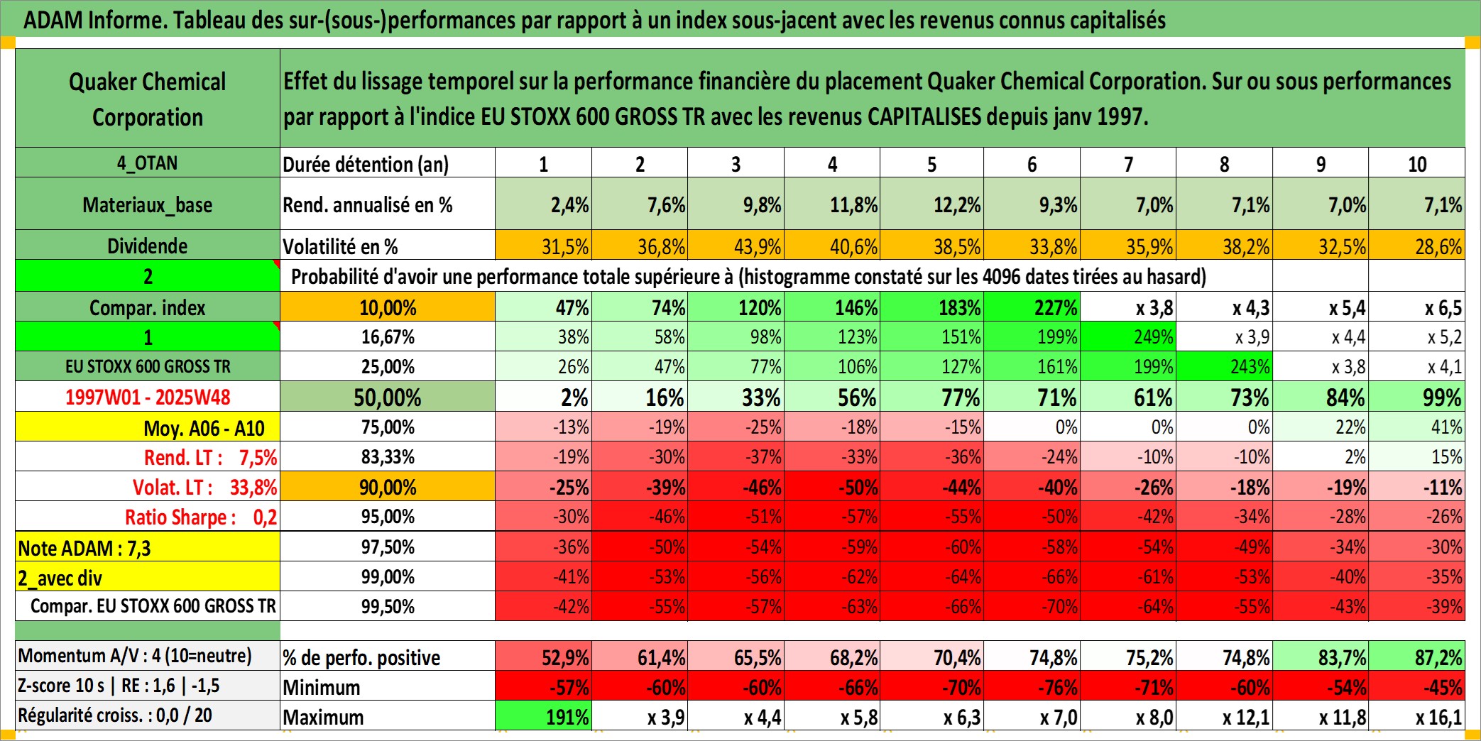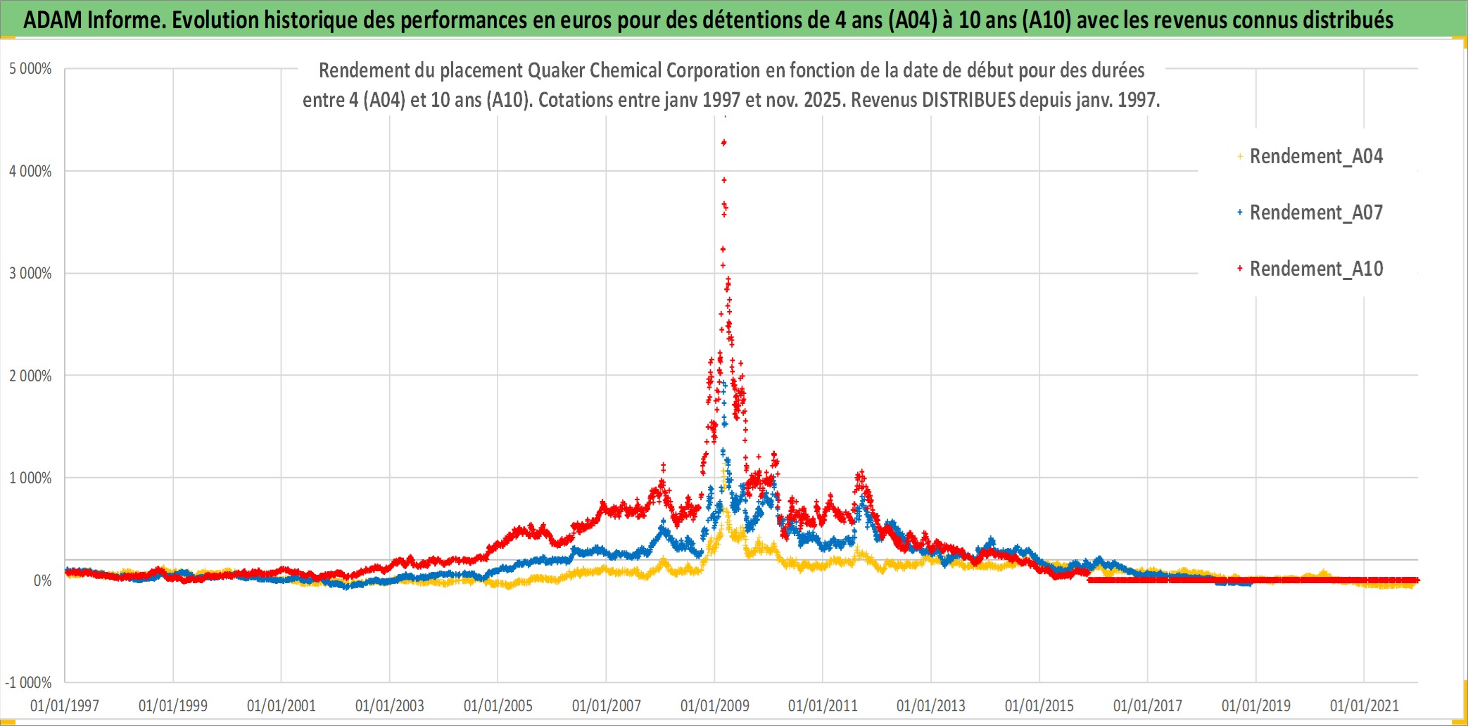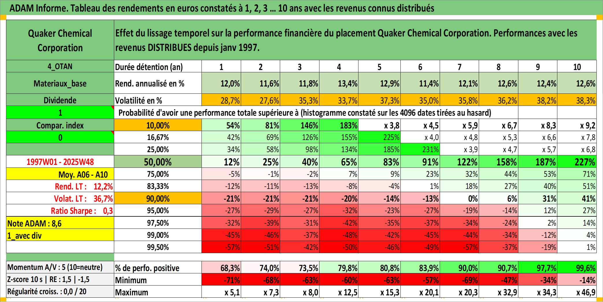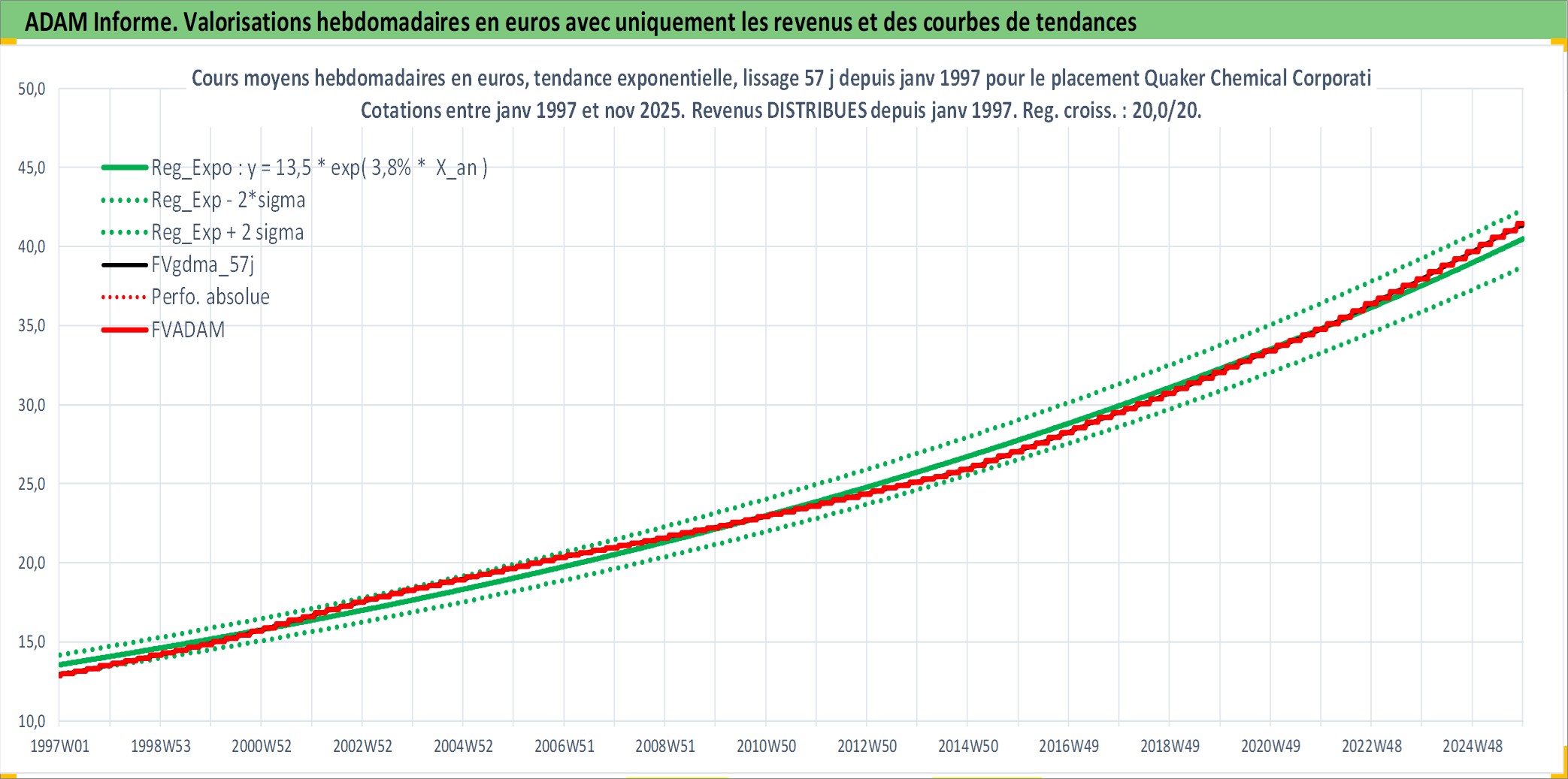 Site dédié aux investisseursPage dédiée sur site financeAnalyse des valorisations hebdomadaires de l'action Quaker Chemical Corporation. Cet actif est cote en USD. Les valorisations sont en contrevaleur EURO et couvrent les semaines 1997W01 a 2025W48. Les revenus de cet actif financier sont pris en compte depuis la semaine 1997W03. La note ESG de cet actif n'est pas connue.