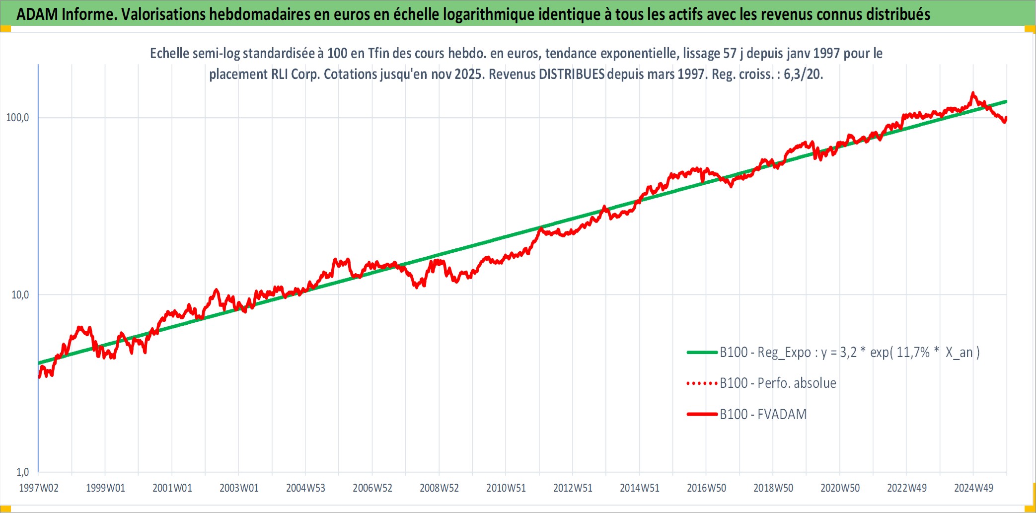 Site dédié aux investisseursPage dédiée sur site financeAnalyse des valorisations hebdomadaires de l'action RLI Corp. Cet actif est cote en USD. Les valorisations sont en contrevaleur EURO et couvrent les semaines 1997W01 a 2025W48. Les revenus de cet actif financier sont pris en compte depuis la semaine 1997W13. La note ESG de cet actif n'est pas connue.