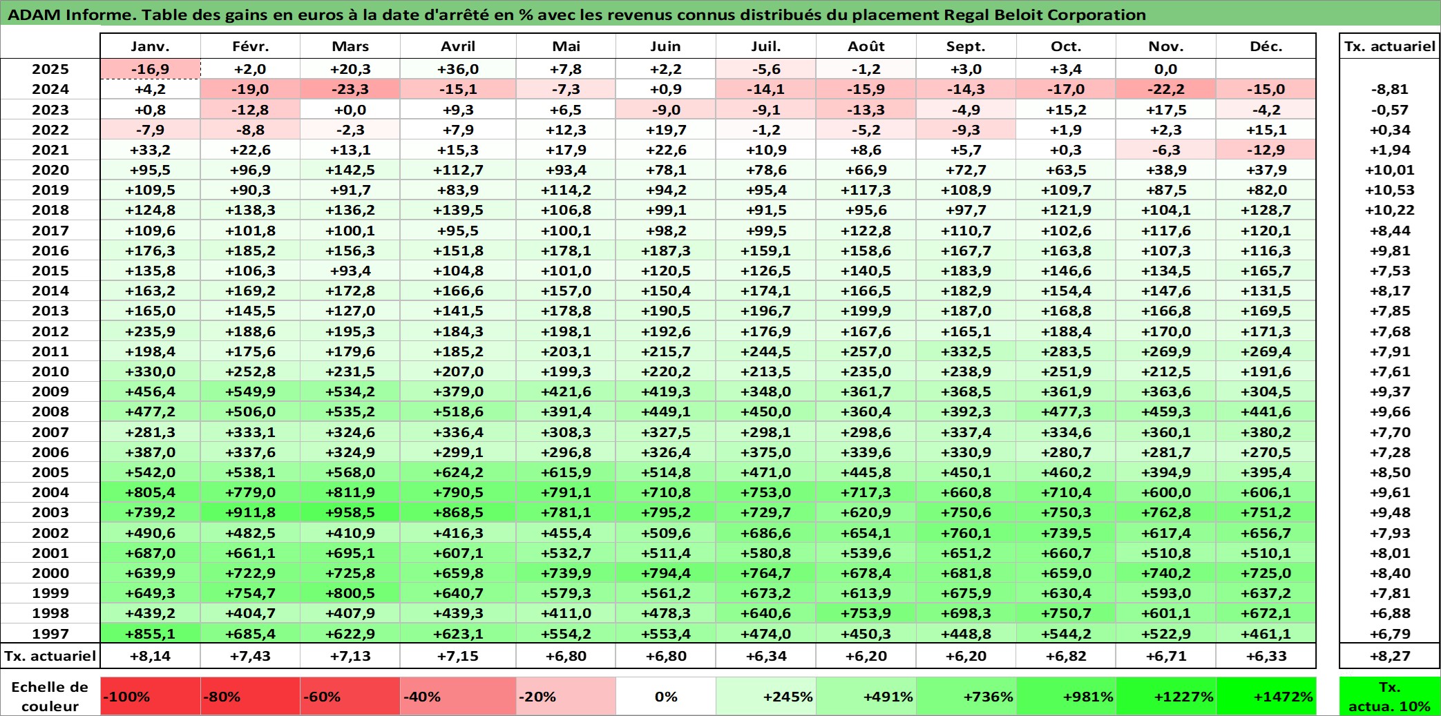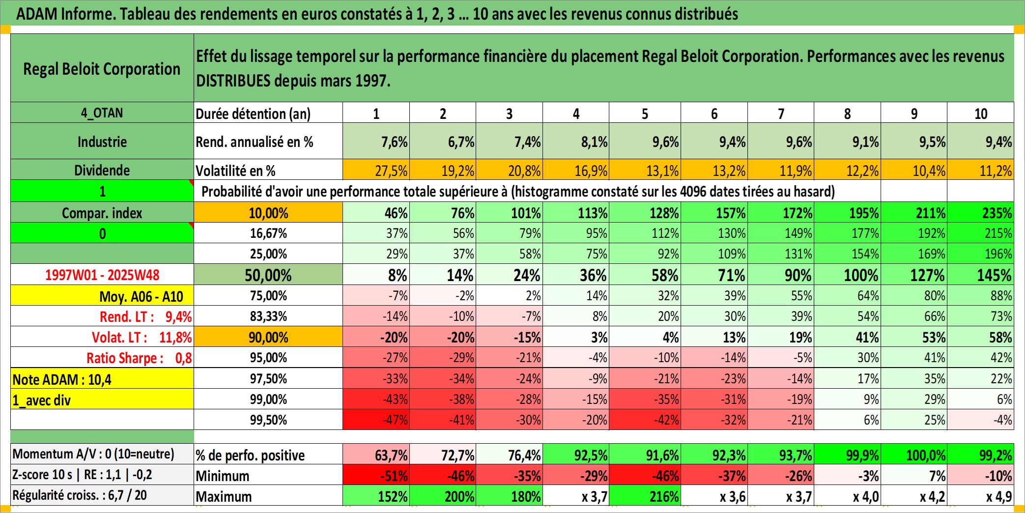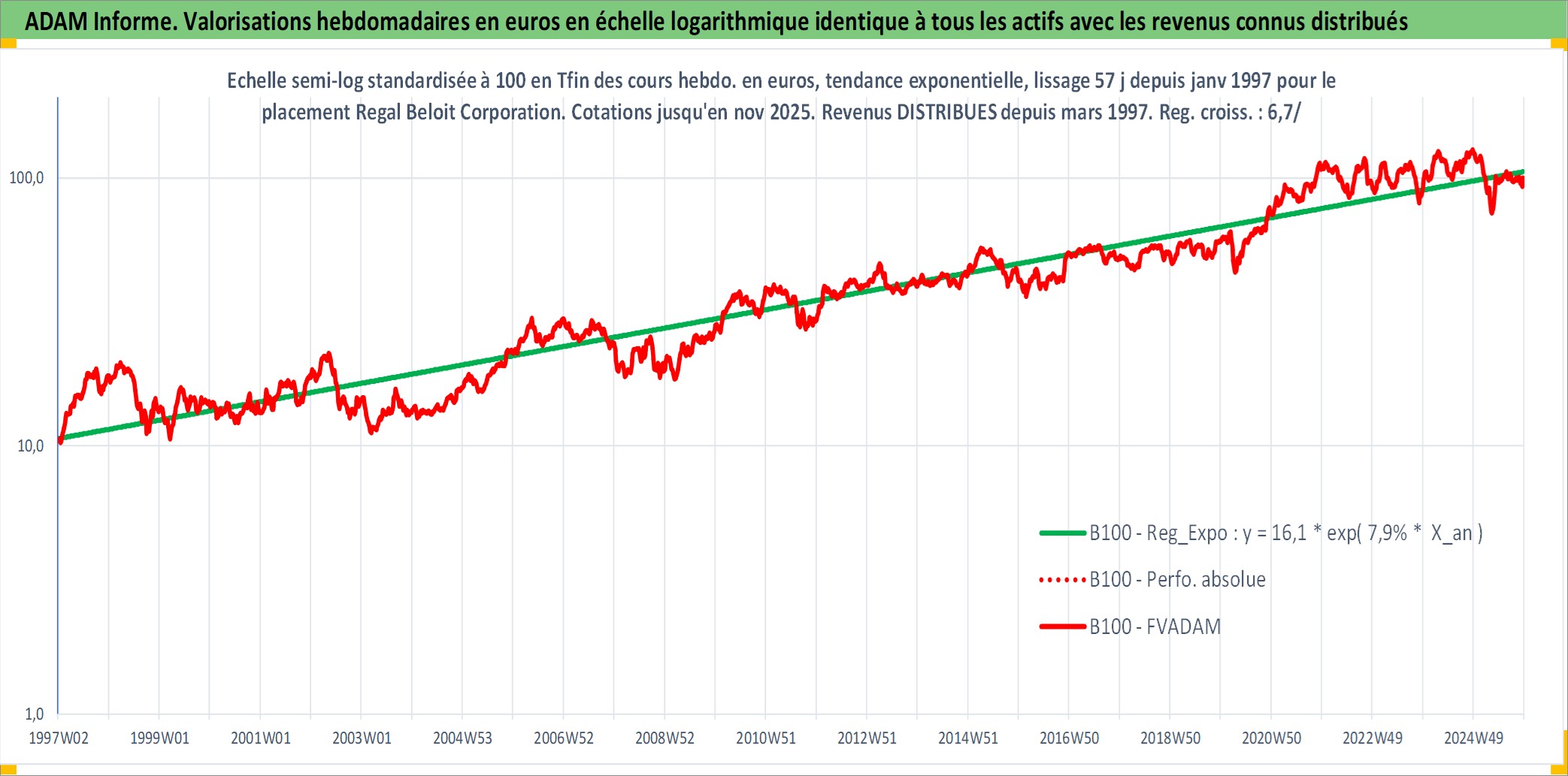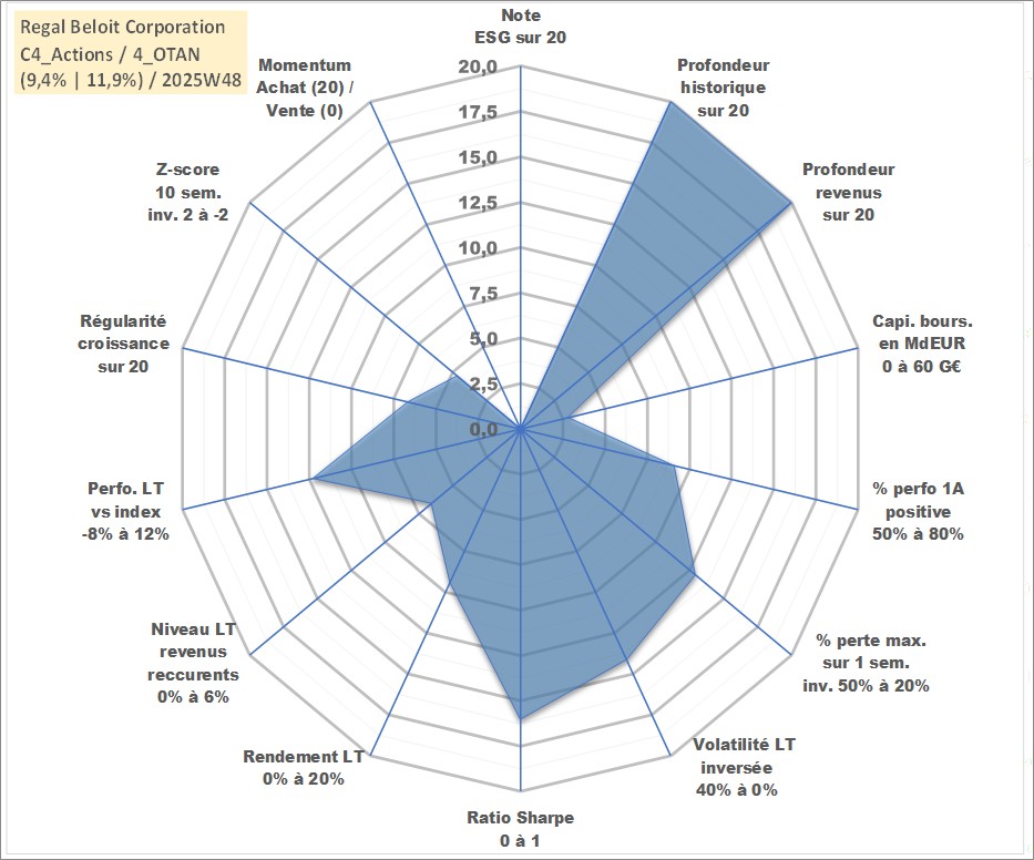 Site dédié aux investisseursPage dédiée sur site financeAnalyse des valorisations hebdomadaires de l'action Regal Beloit Corporation. Cet actif est cote en USD. Les valorisations sont en contrevaleur EURO et couvrent les semaines 1997W01 a 2025W48. Les revenus de cet actif financier sont pris en compte depuis la semaine 1997W13. La note ESG de cet actif n'est pas connue.