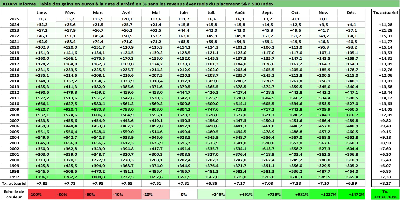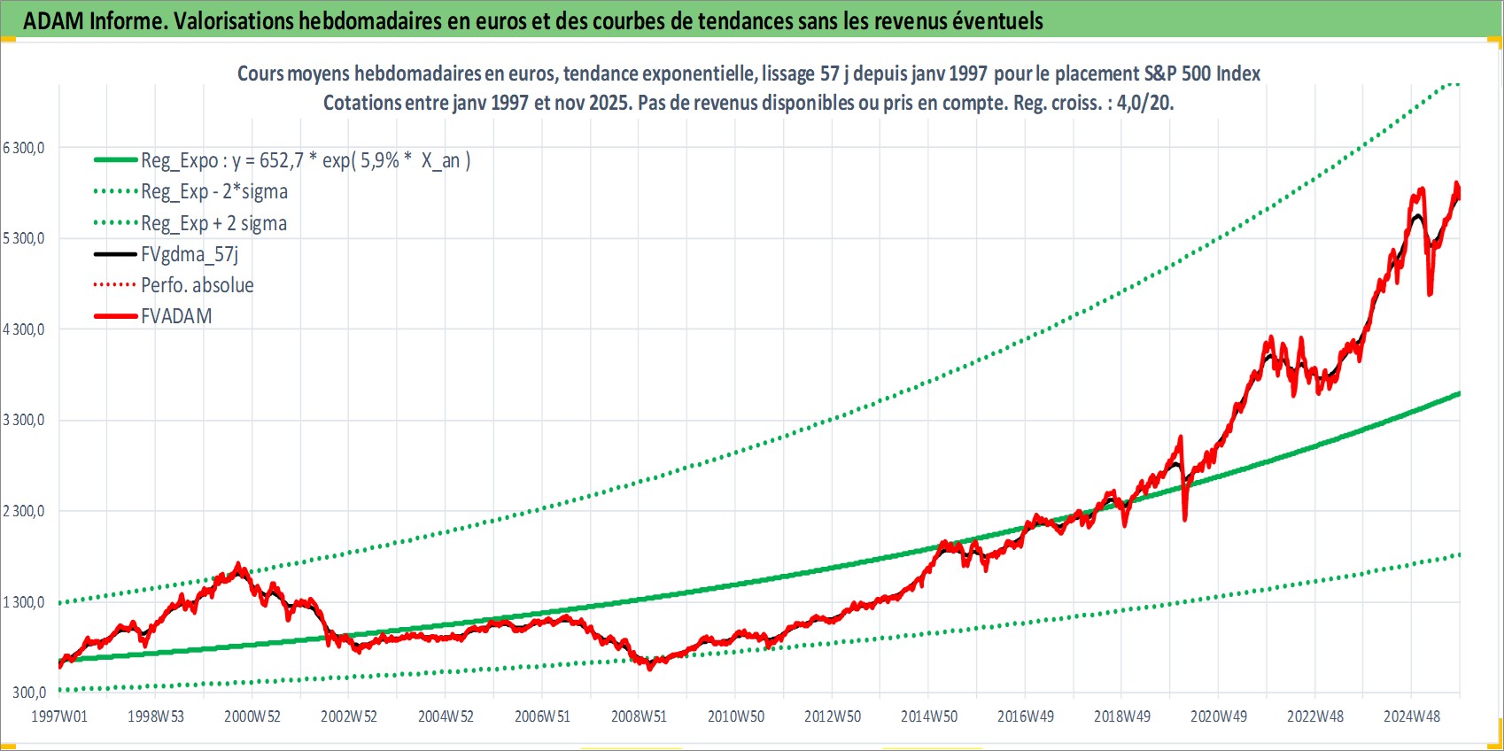 Site dédié aux investisseursPage dédiée sur site financeAnalyse des valorisations hebdomadaires de l'actif S&P 500 Index. Cet actif est cote en USD. Les valorisations sont en contrevaleur EURO et couvrent les semaines 1997W01 a 2025W48. Les revenus de cet actif financier ne sont pas connus car non existants ou non disponibles sur le site Yahoo Finance. La note ESG de cet actif n'est pas connue.