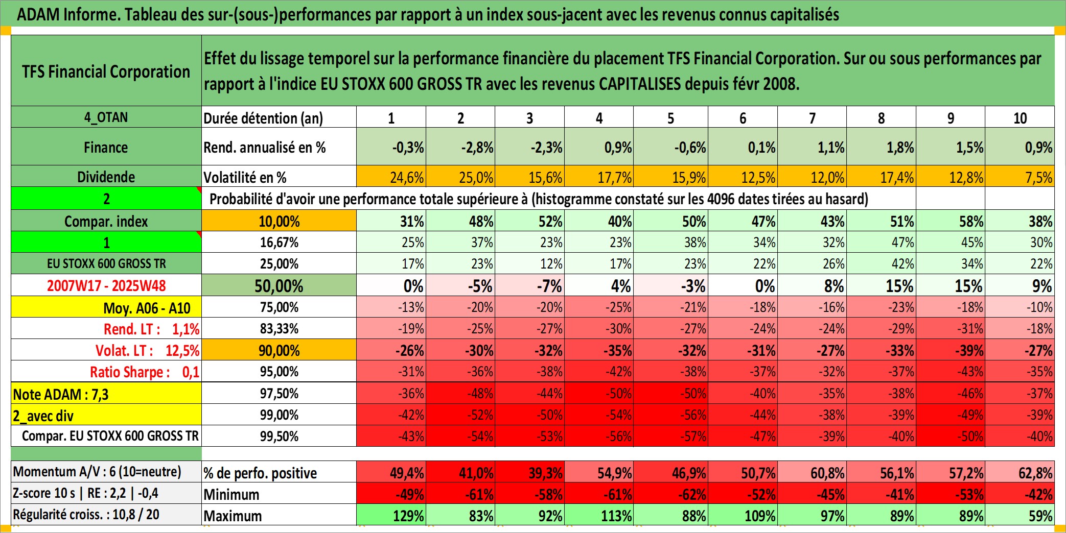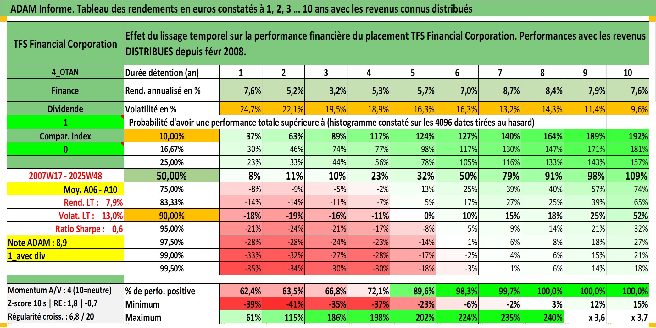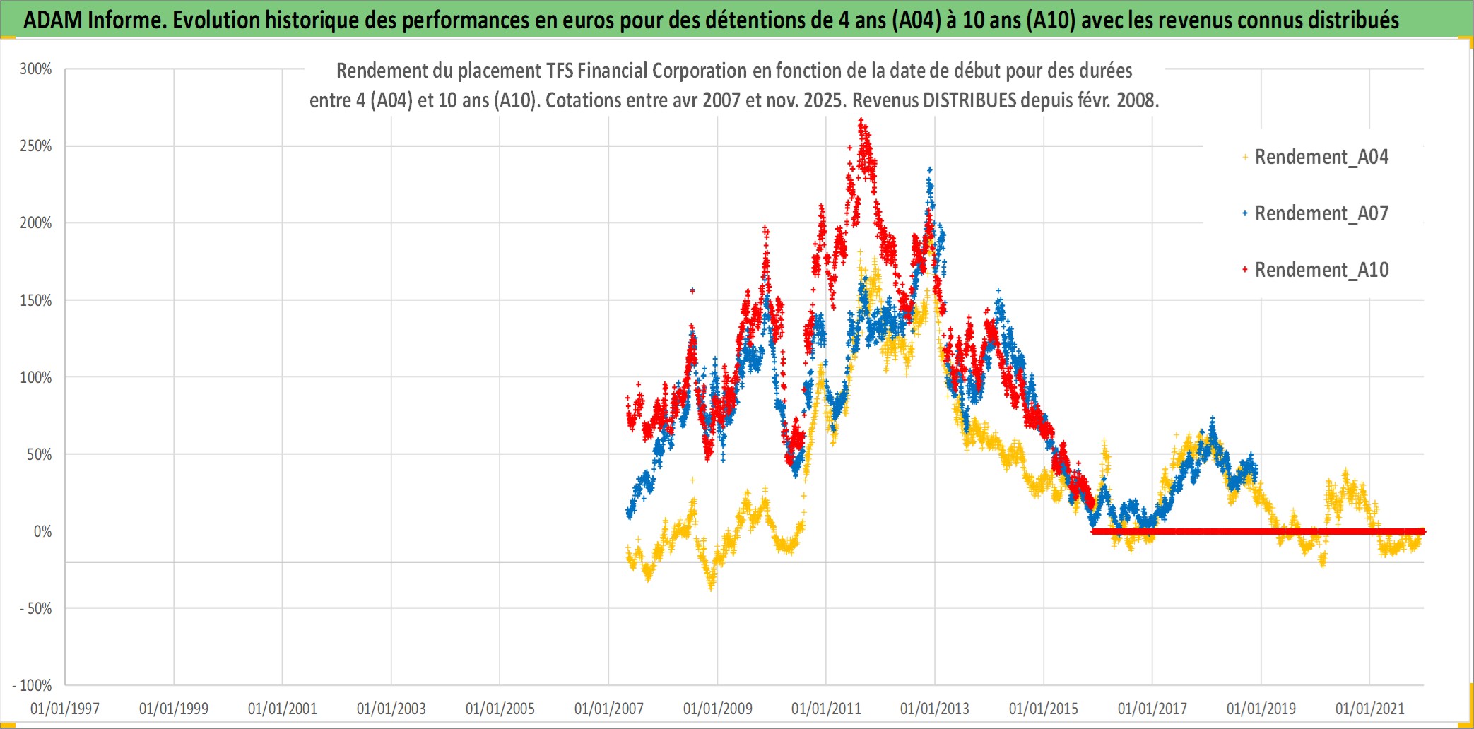 Site dédié aux investisseursPage dédiée sur site financeAnalyse des valorisations hebdomadaires de l'action TFS Financial Corporation. Cet actif est cote en USD. Les valorisations sont en contrevaleur EURO et couvrent les semaines 2007W17 a 2025W48. Les revenus de cet actif financier sont pris en compte depuis la semaine 2008W08. La note ESG de cet actif n'est pas connue.