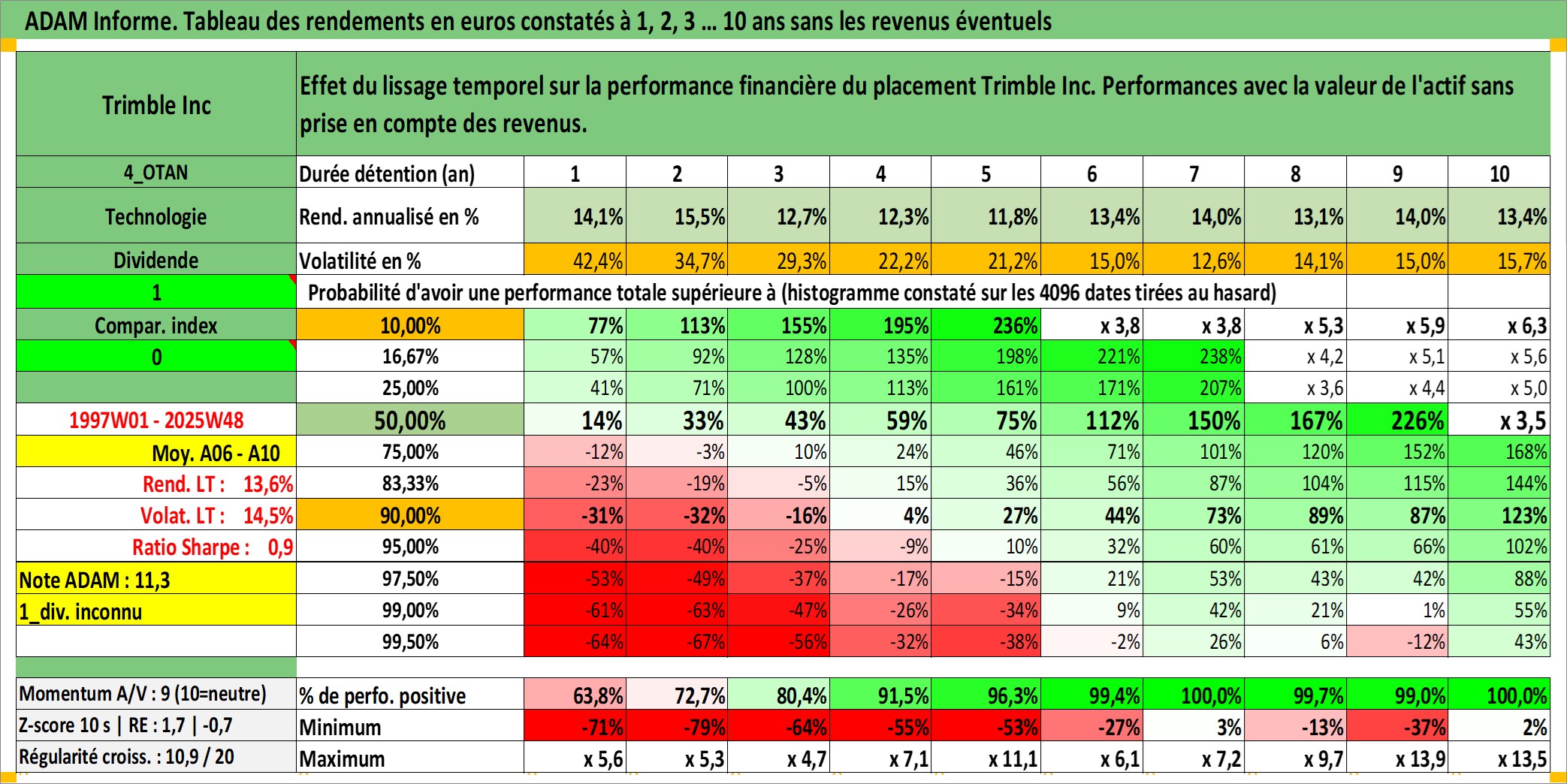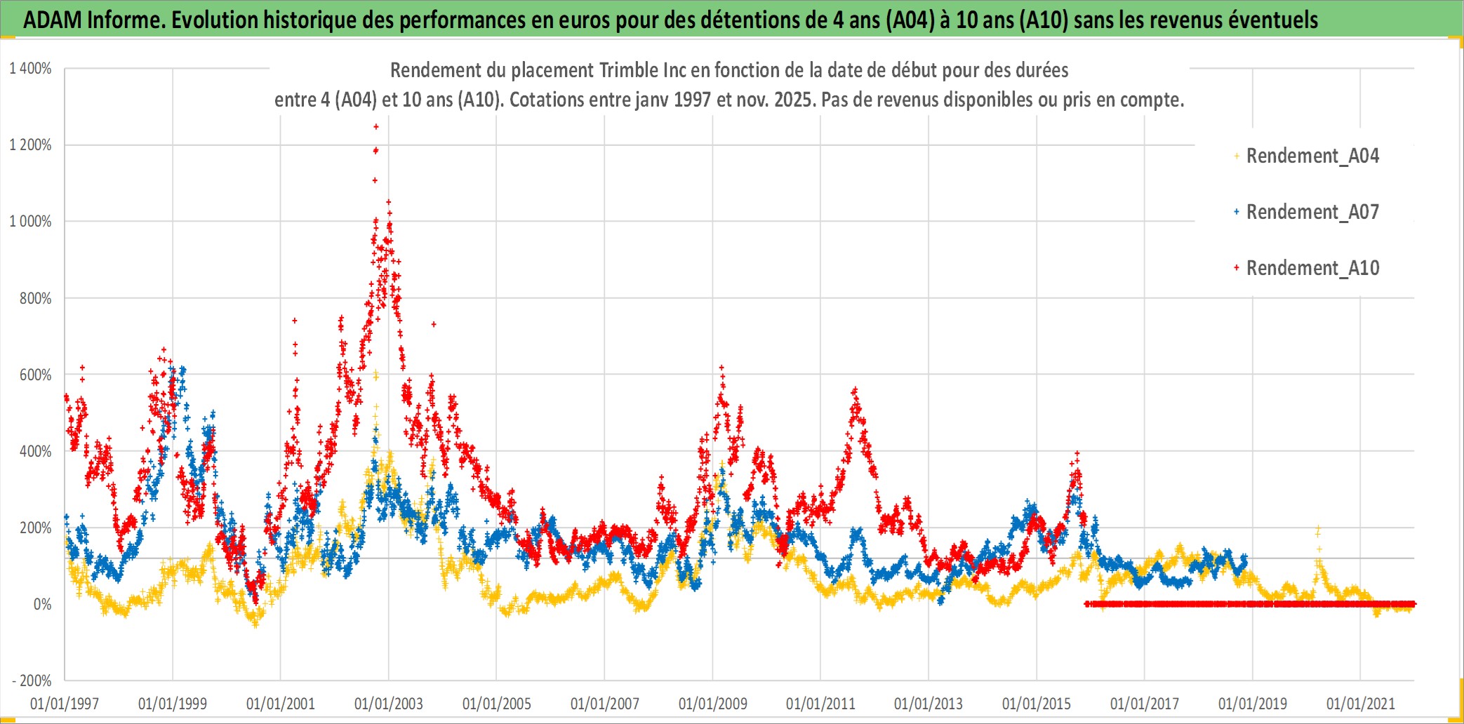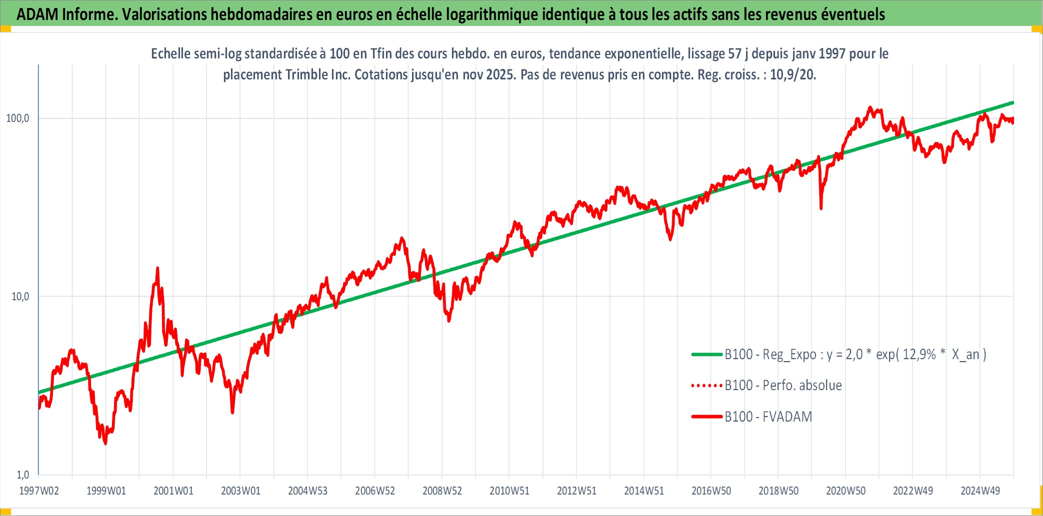 Site dédié aux investisseursPage dédiée sur site financeAnalyse des valorisations hebdomadaires de l'action Trimble Inc. Cet actif est cote en USD. Les valorisations sont en contrevaleur EURO et couvrent les semaines 1997W01 a 2025W48. Les revenus de cet actif financier ne sont pas connus car non existants ou non disponibles sur le site Yahoo Finance. La note globale ESG de cet actif est estimee a 15.0 (apres rebasage entre 0 et 20).