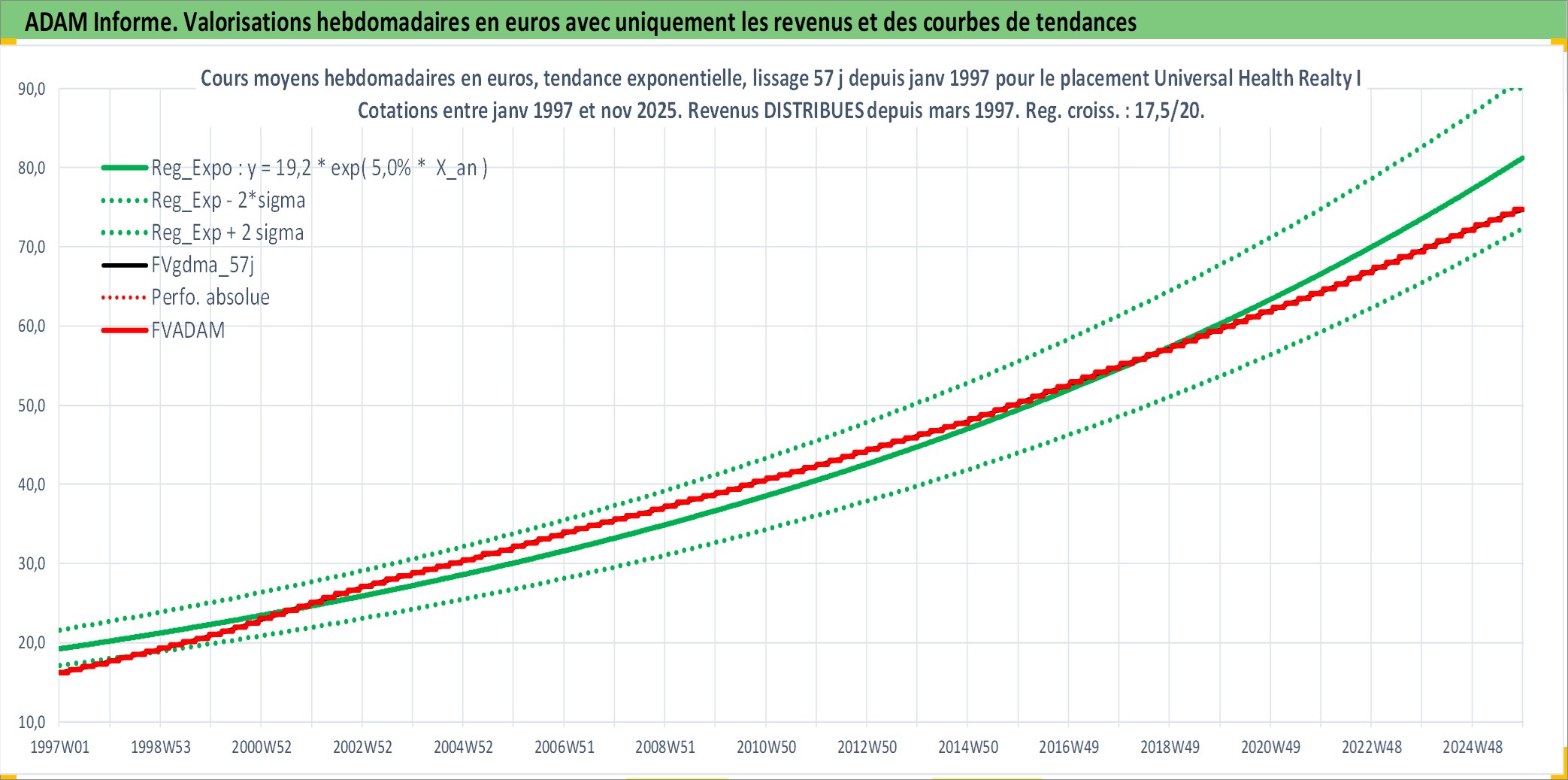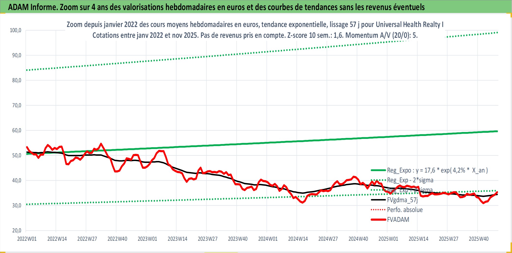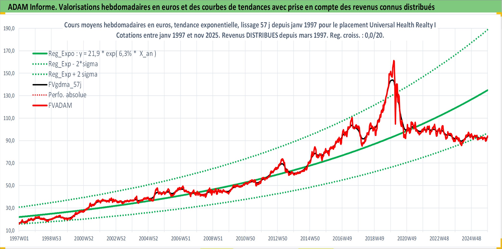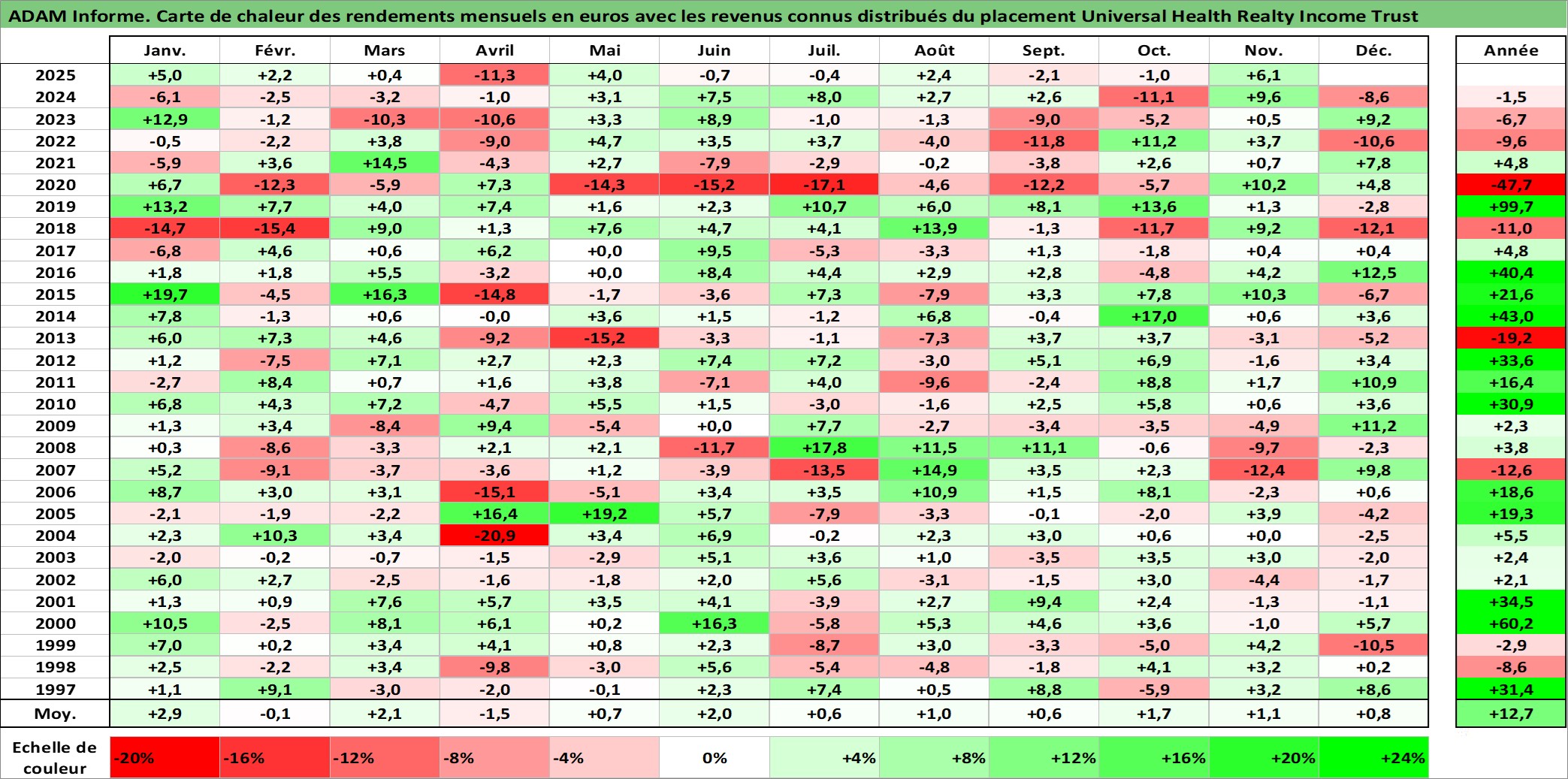 Site dédié aux investisseursPage dédiée sur site financeAnalyse des valorisations hebdomadaires de l'action Universal Health Realty Income Trust. Cet actif est cote en USD. Les valorisations sont en contrevaleur EURO et couvrent les semaines 1997W01 a 2025W48. Les revenus de cet actif financier sont pris en compte depuis la semaine 1997W11. La note ESG de cet actif n'est pas connue.