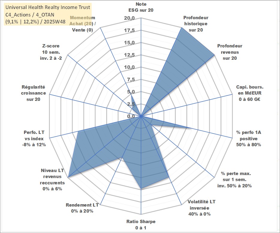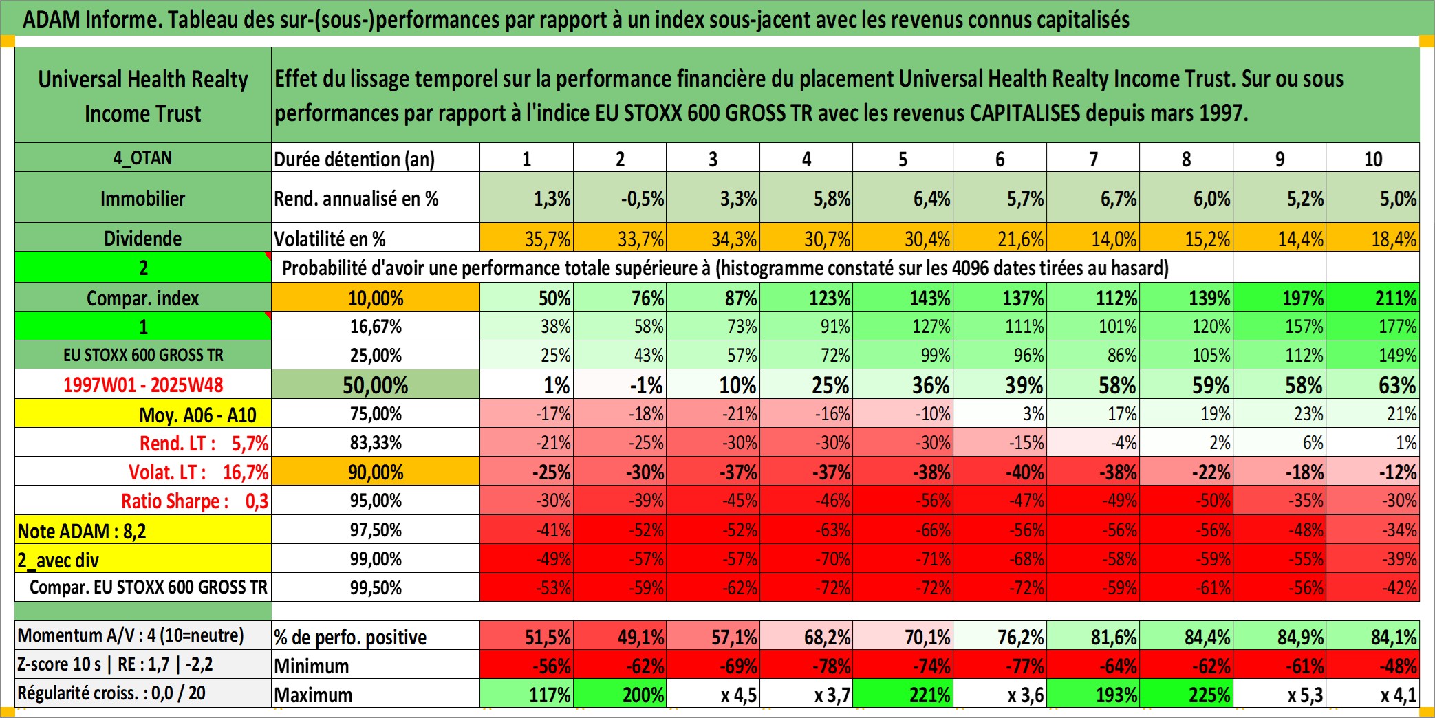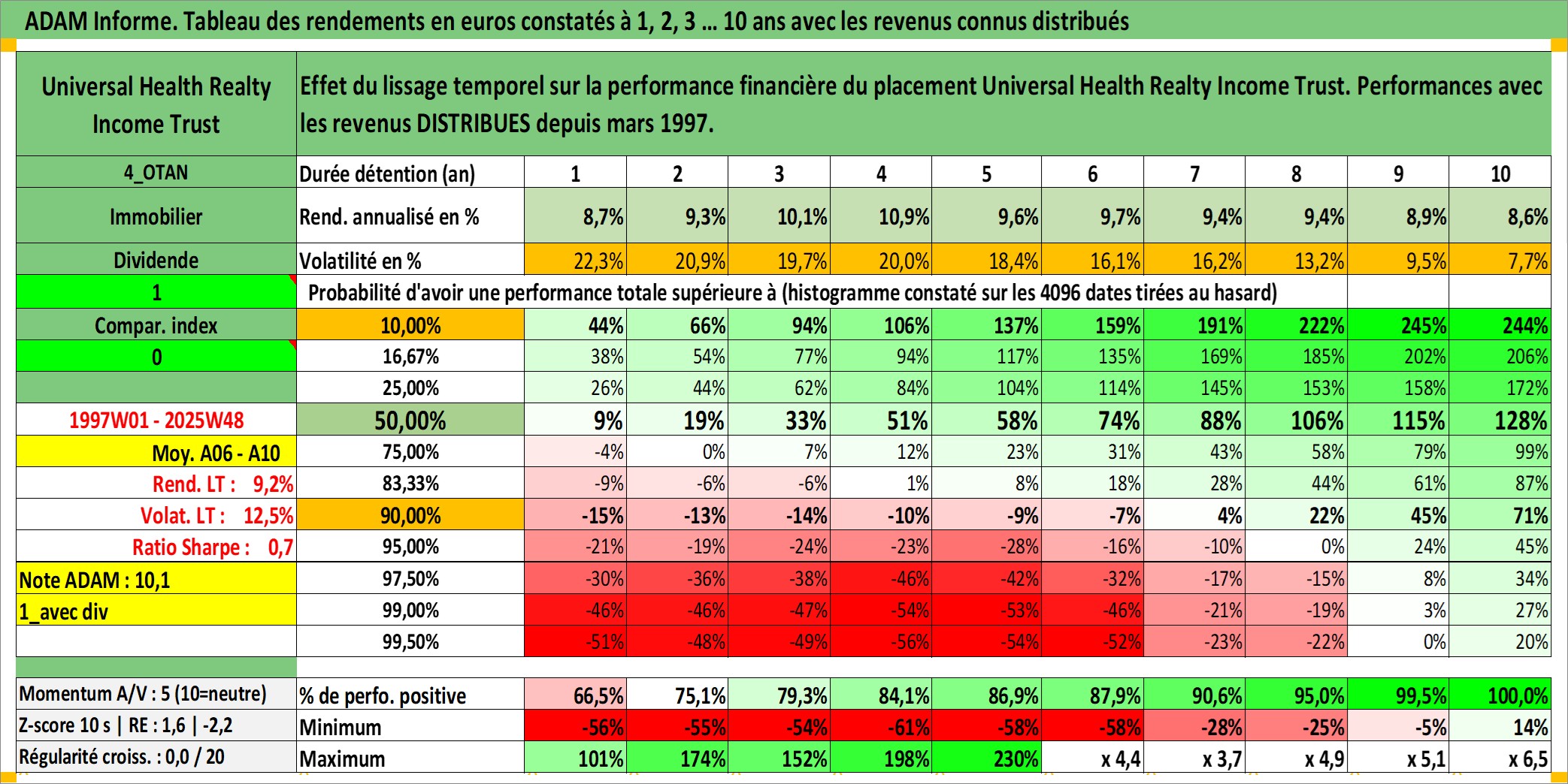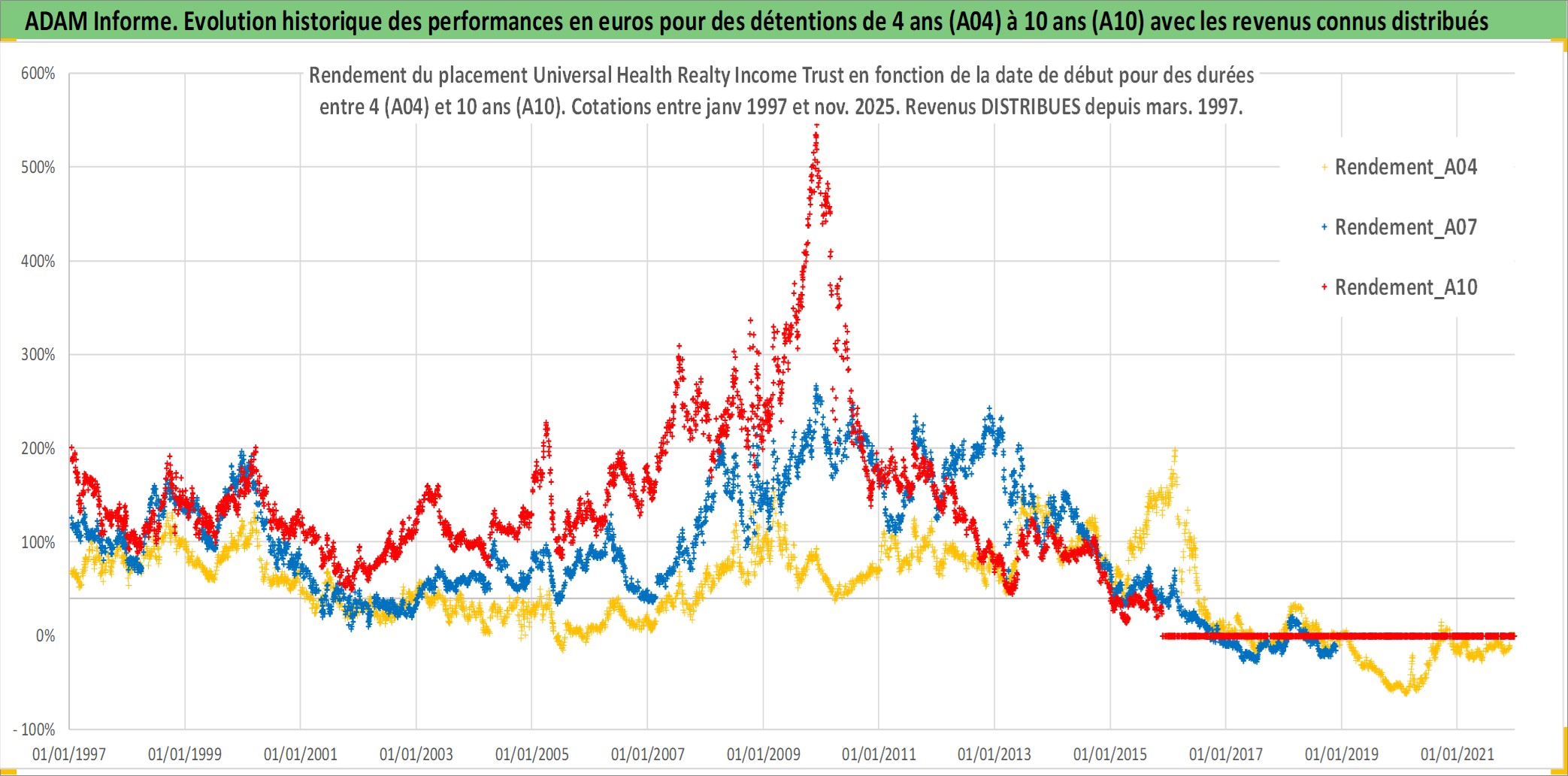 Site dédié aux investisseursPage dédiée sur site financeAnalyse des valorisations hebdomadaires de l'action Universal Health Realty Income Trust. Cet actif est cote en USD. Les valorisations sont en contrevaleur EURO et couvrent les semaines 1997W01 a 2025W48. Les revenus de cet actif financier sont pris en compte depuis la semaine 1997W11. La note ESG de cet actif n'est pas connue.