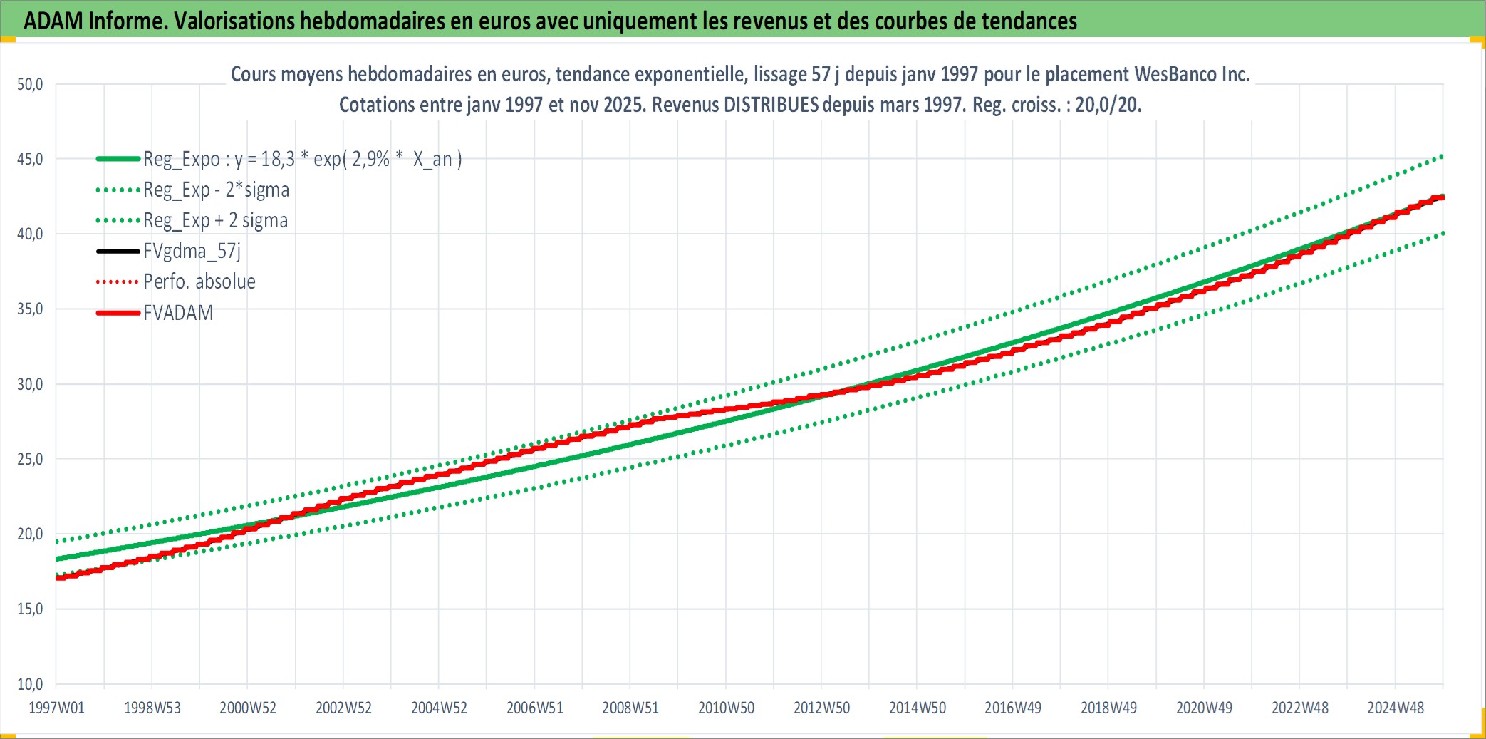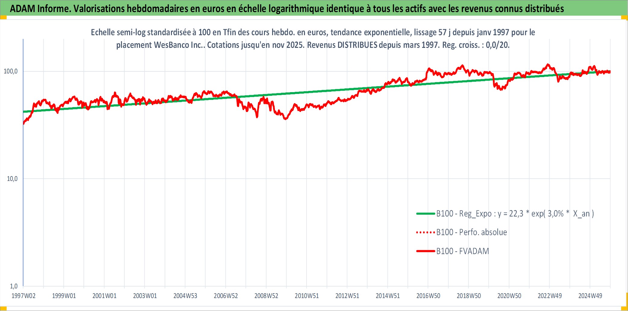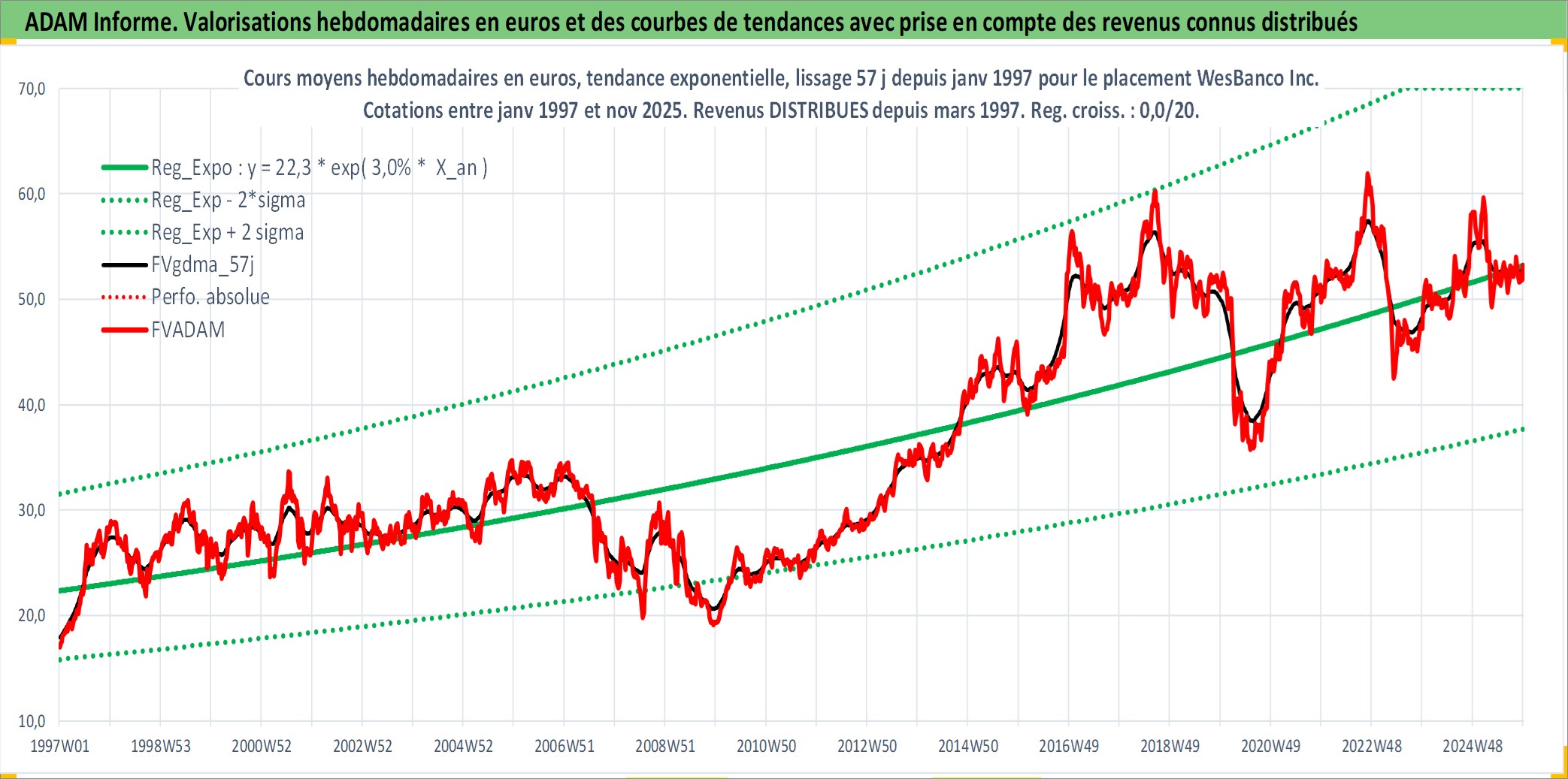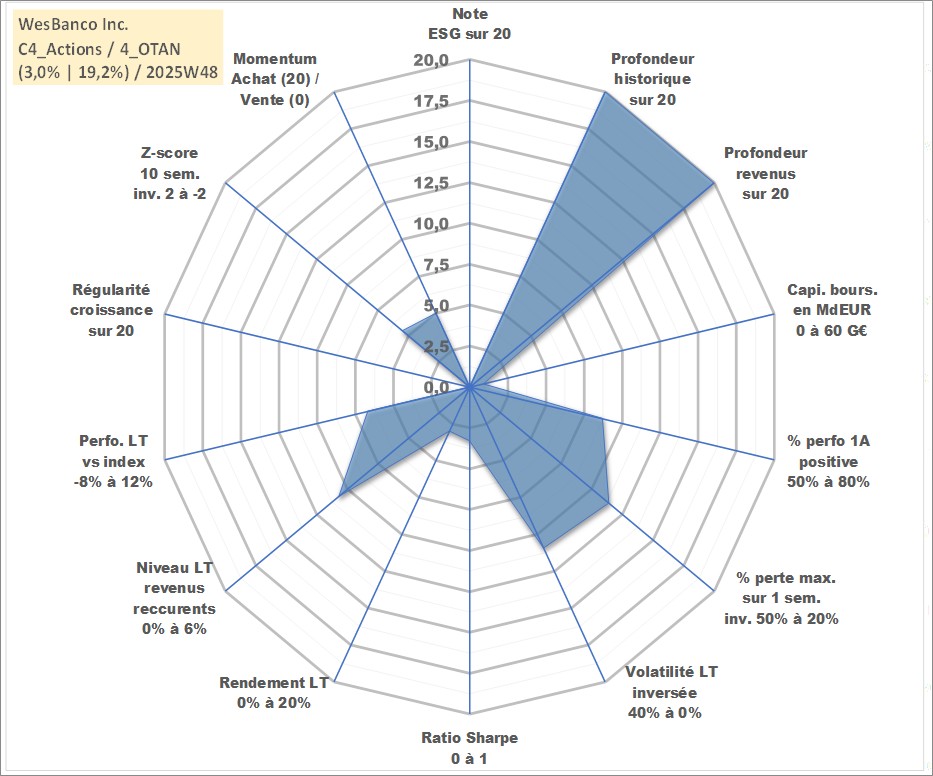 Site dédié aux investisseursPage dédiée sur site financeAnalyse des valorisations hebdomadaires de l'action WesBanco Inc.. Cet actif est cote en USD. Les valorisations sont en contrevaleur EURO et couvrent les semaines 1997W01 a 2025W48. Les revenus de cet actif financier sont pris en compte depuis la semaine 1997W11. La note ESG de cet actif n'est pas connue.