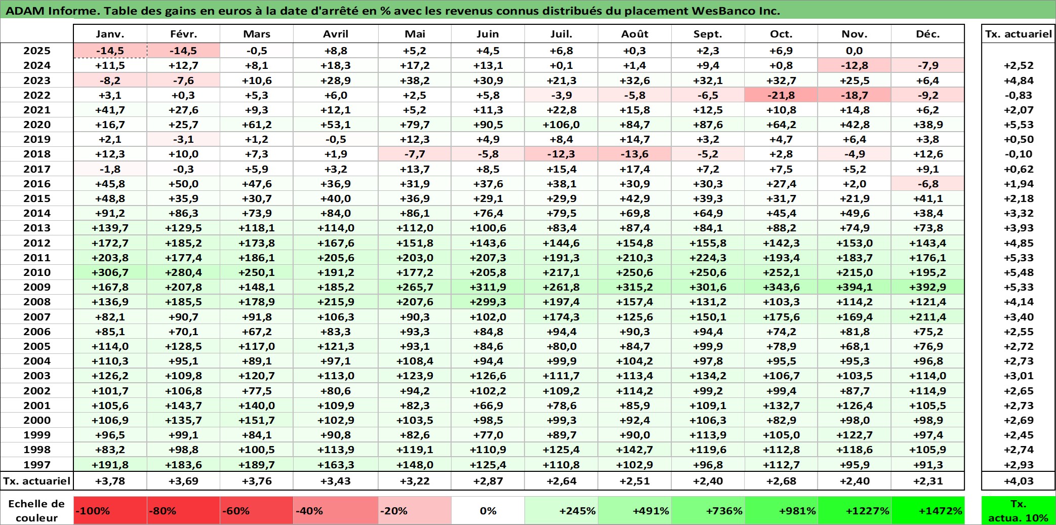 Dernière perfo 10 ans en %