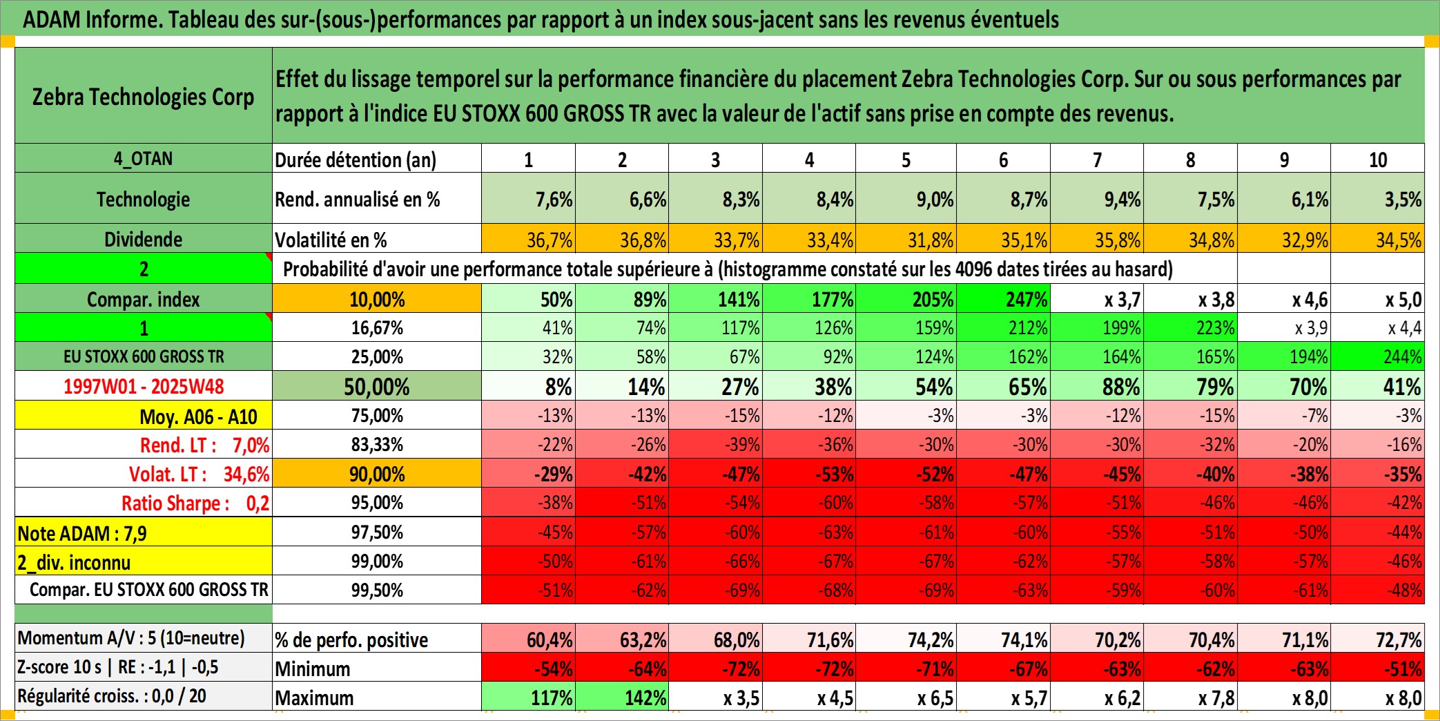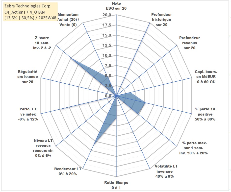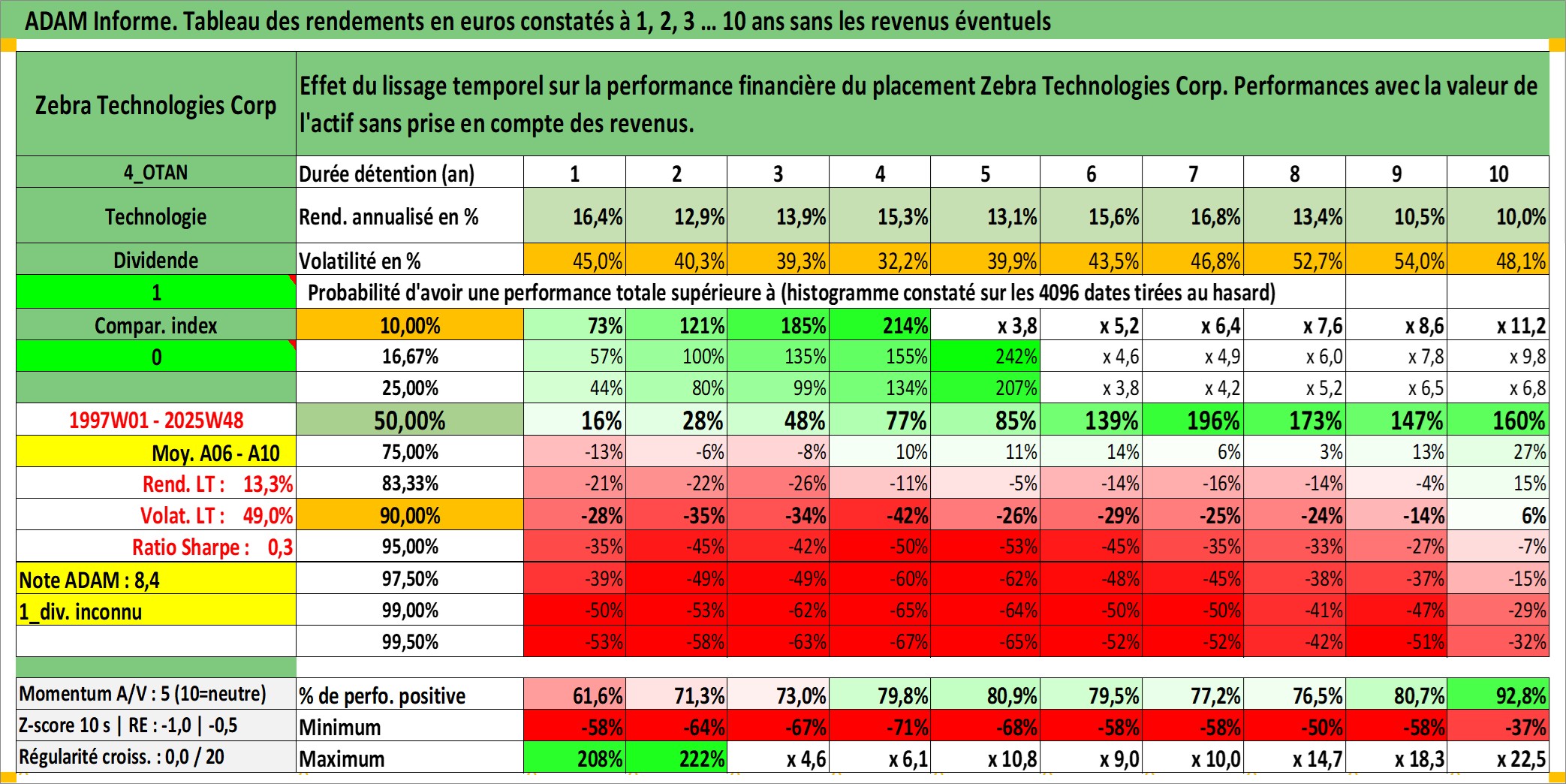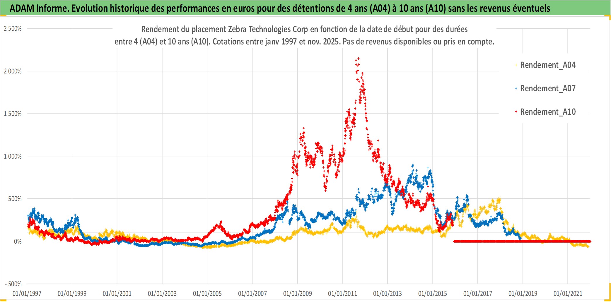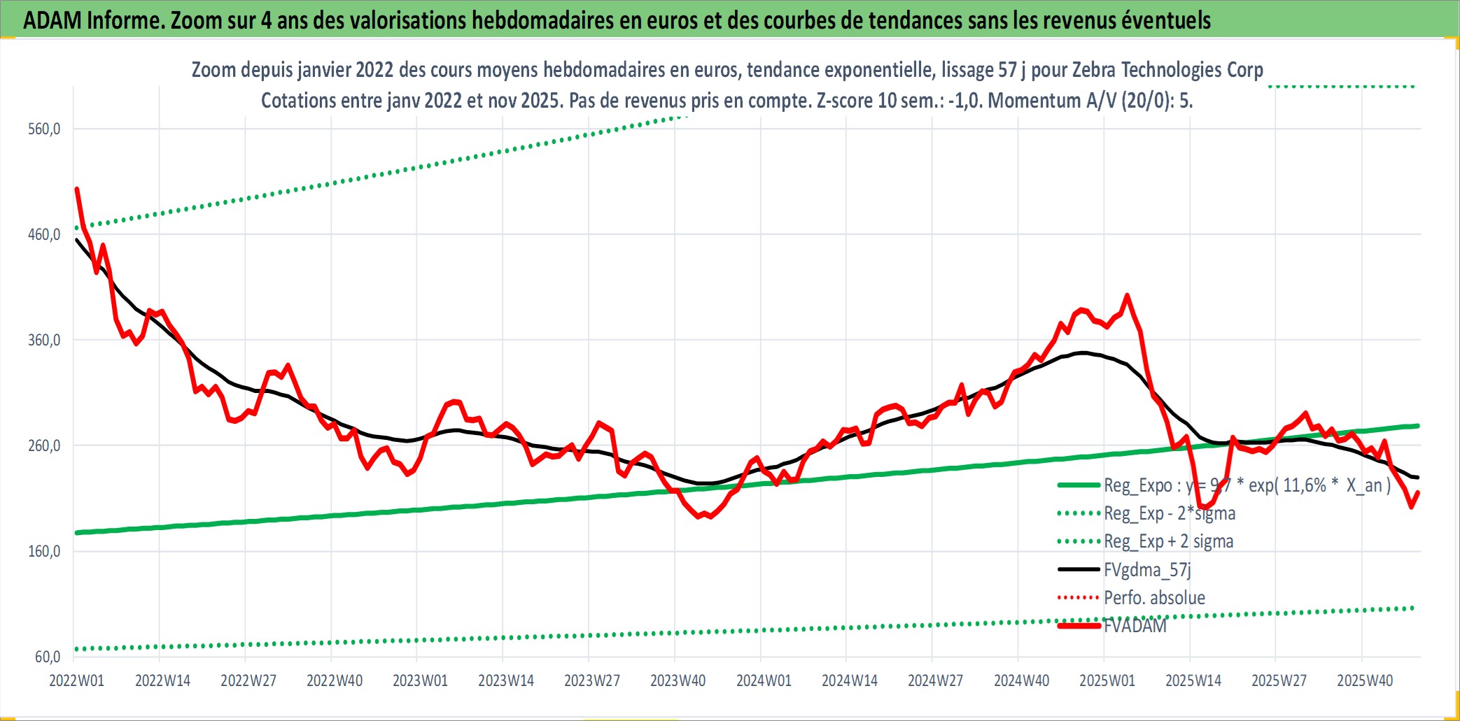 Site dédié aux investisseursPage dédiée sur site financeAnalyse des valorisations hebdomadaires de l'action Zebra Technologies Corp. Cet actif est cote en USD. Les valorisations sont en contrevaleur EURO et couvrent les semaines 1997W01 a 2025W48. Les revenus de cet actif financier ne sont pas connus car non existants ou non disponibles sur le site Yahoo Finance. La note ESG de cet actif n'est pas connue.