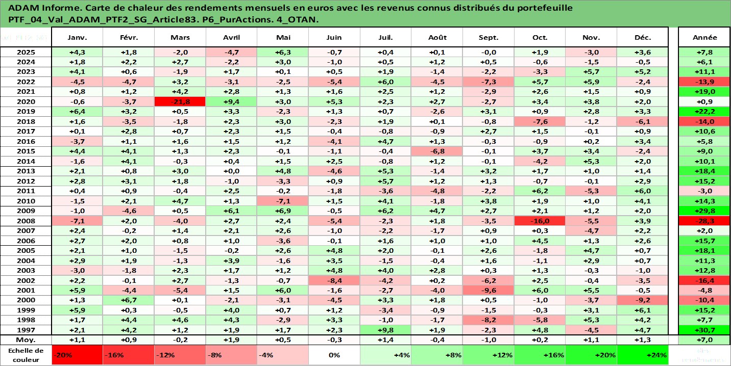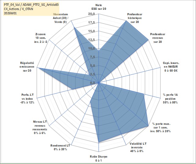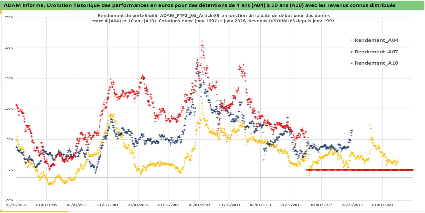 Site dédié aux investisseursPage dédiée sur site financeAnalyse des valorisations hebdomadaires du portefeuille PTF2_SG_Article83_4actifs avec un profil P6_PurActions. Ce portefeuille est cote en EUR. Les valorisations couvrent les semaines 1997W01 a 2026W01. Les revenus de cet actif financier sont pris en compte depuis la semaine 1997W01. La note globale ESG de cet actif est estimee a 9.2 (apres rebasage entre 0 et 20).