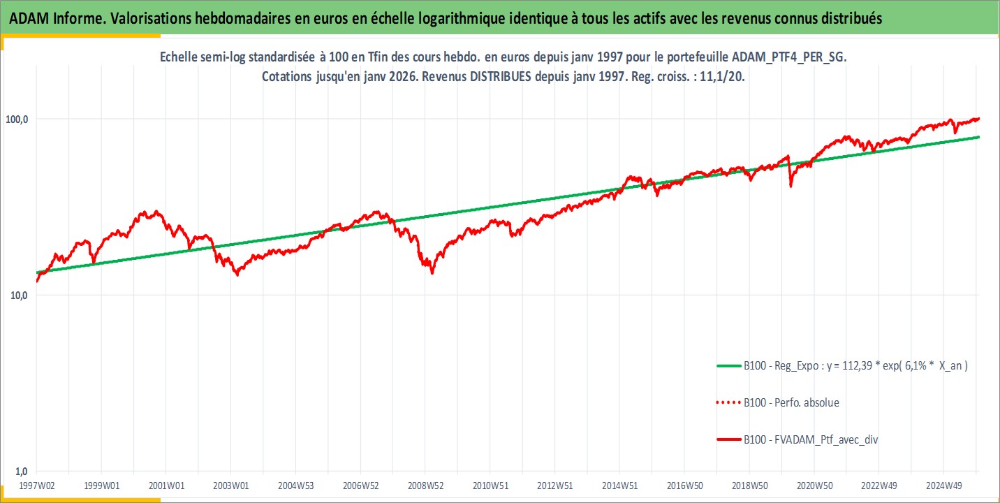 Site dédié aux investisseursPage dédiée sur site financeAnalyse des valorisations hebdomadaires du portefeuille PTF4_PER_SG_5actifs avec un profil P6_PurActions. Ce portefeuille est cote en EUR. Les valorisations couvrent les semaines 1997W01 a 2026W01. Les revenus de cet actif financier sont pris en compte depuis la semaine 1997W01. La note globale ESG de cet actif est estimee a 9.0 (apres rebasage entre 0 et 20).