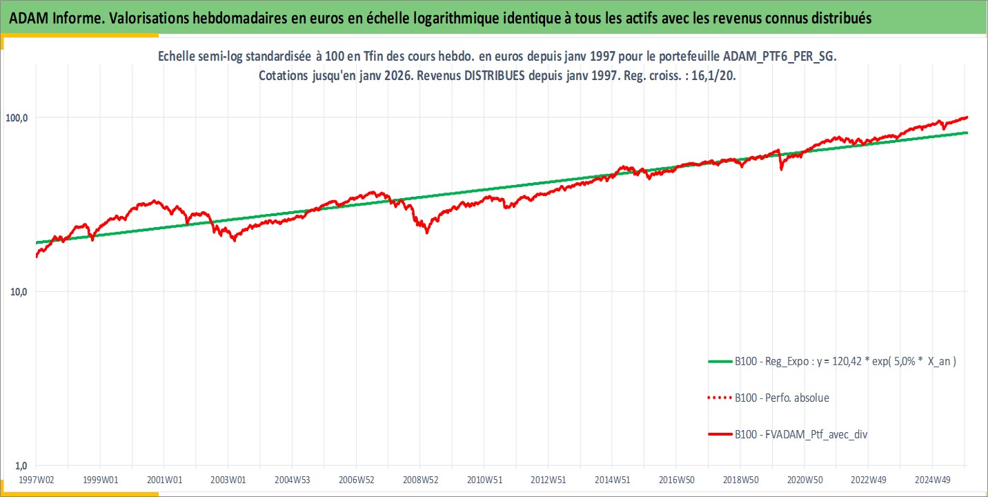 Site dédié aux investisseursPage dédiée sur site financeAnalyse des valorisations hebdomadaires du portefeuille PTF6_PER_SG_3actifs avec un profil P6_PurActions. Ce portefeuille est cote en EUR. Les valorisations couvrent les semaines 1997W01 a 2026W01. Les revenus de cet actif financier sont pris en compte depuis la semaine 1997W01. La note globale ESG de cet actif est estimee a 7.9 (apres rebasage entre 0 et 20).