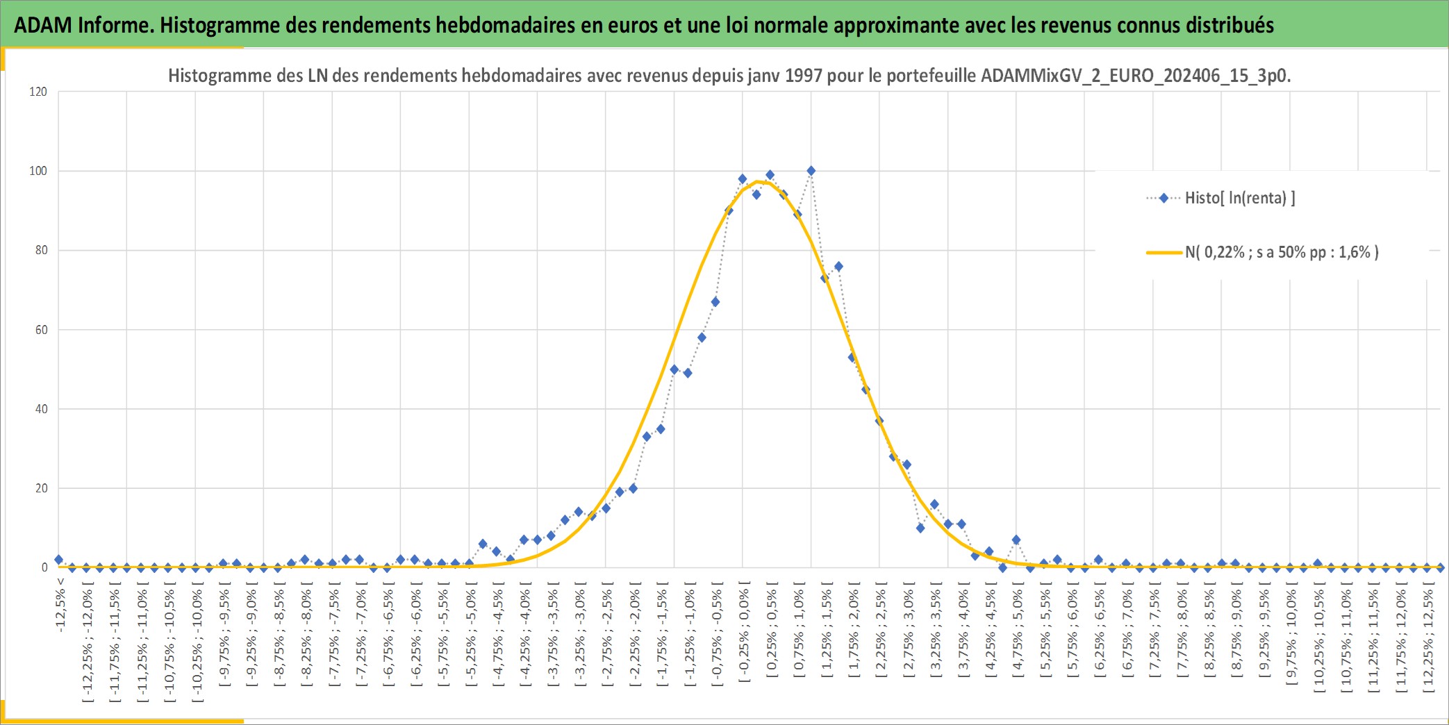 Site dédié aux investisseursPage dédiée sur site financeAnalyse des valorisations hebdomadaires du portefeuille ADAMMixGV_2_EURO_202406_15_3p0_8actifs avec un profil P6_PurActions. Ce portefeuille est cote en EUR. Les valorisations couvrent les semaines 1997W01 a 2026W01. Les revenus de cet actif financier sont pris en compte depuis la semaine 1997W01. La note globale ESG de cet actif est estimee a 12.3 (apres rebasage entre 0 et 20).