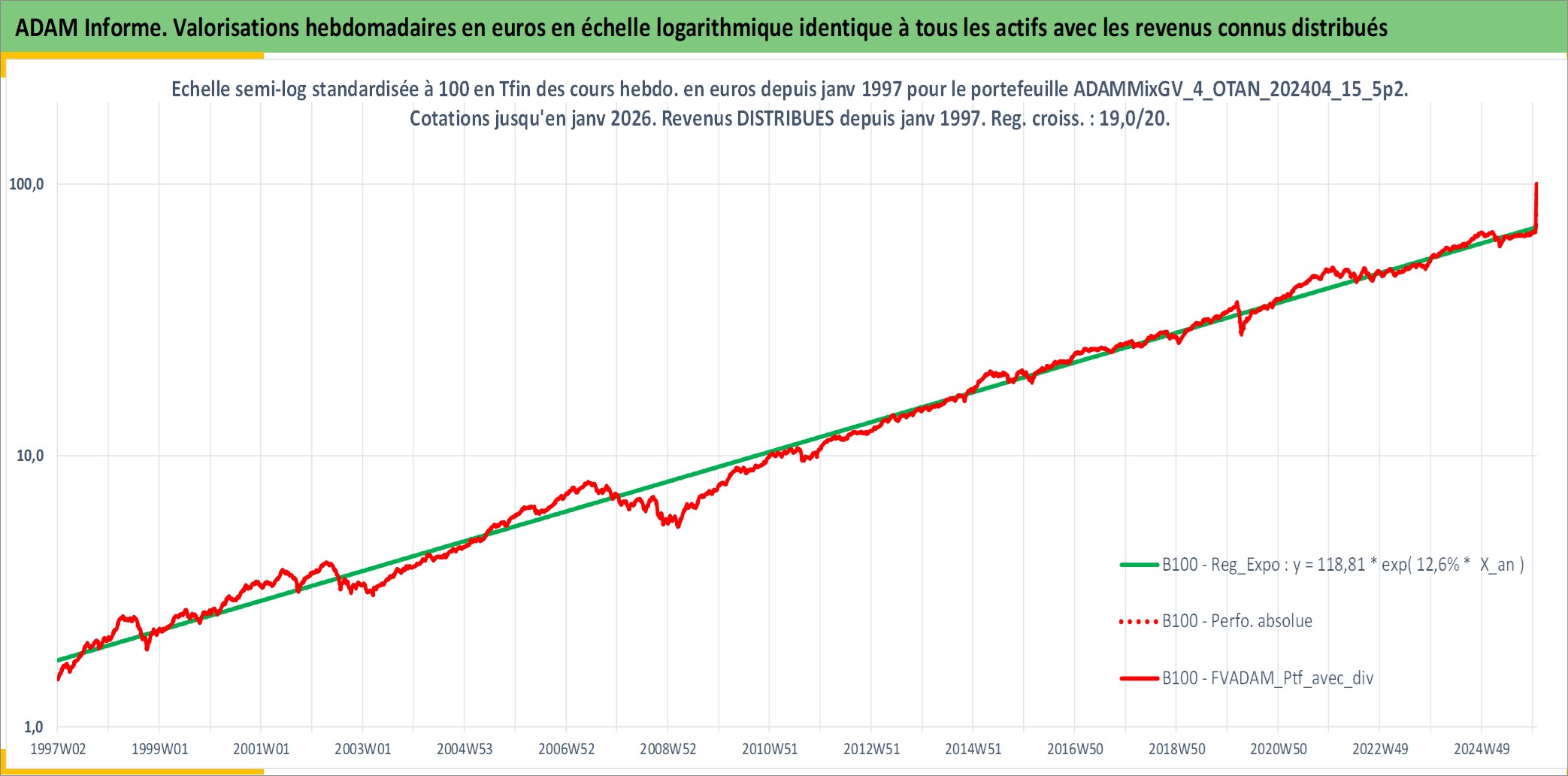 Site dédié aux investisseursPage dédiée sur site financeAnalyse des valorisations hebdomadaires du portefeuille ADAMMixGV_4_OTAN_202404_15_5p2_56actifs avec un profil P6_PurActions. Ce portefeuille est cote en EUR. Les valorisations couvrent les semaines 1997W01 a 2026W01. Les revenus de cet actif financier sont pris en compte depuis la semaine 1997W01. La note globale ESG de cet actif est estimee a 10.2 (apres rebasage entre 0 et 20).