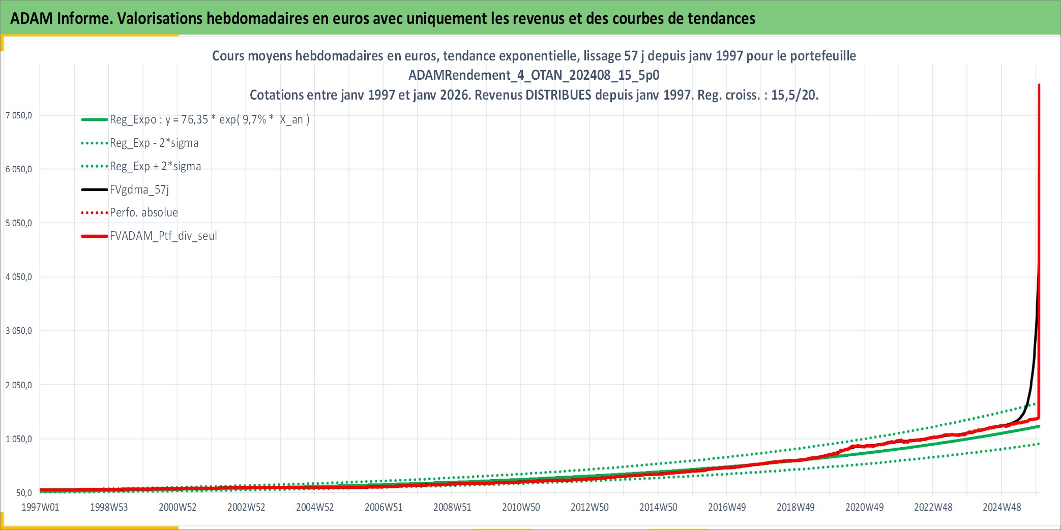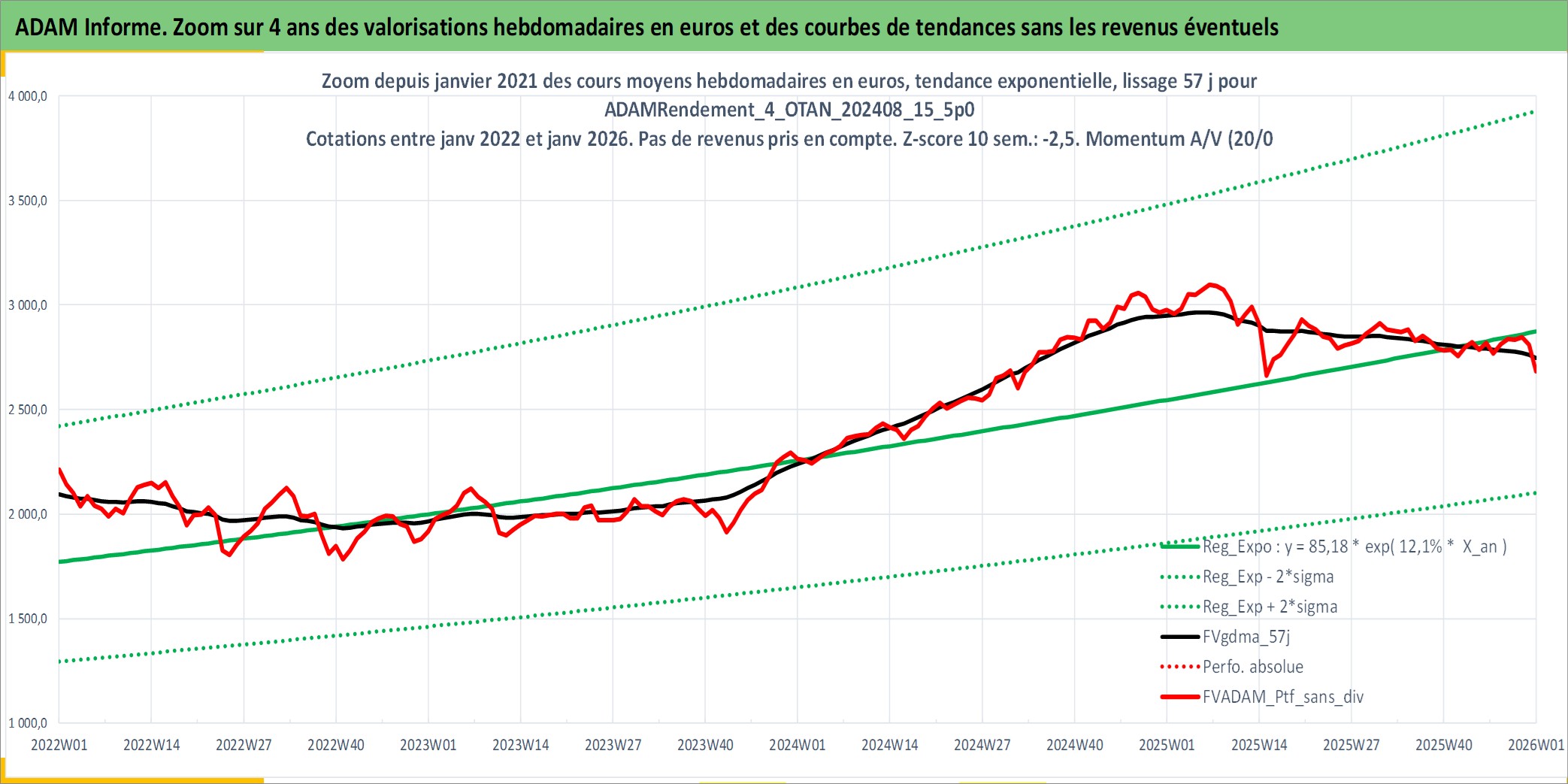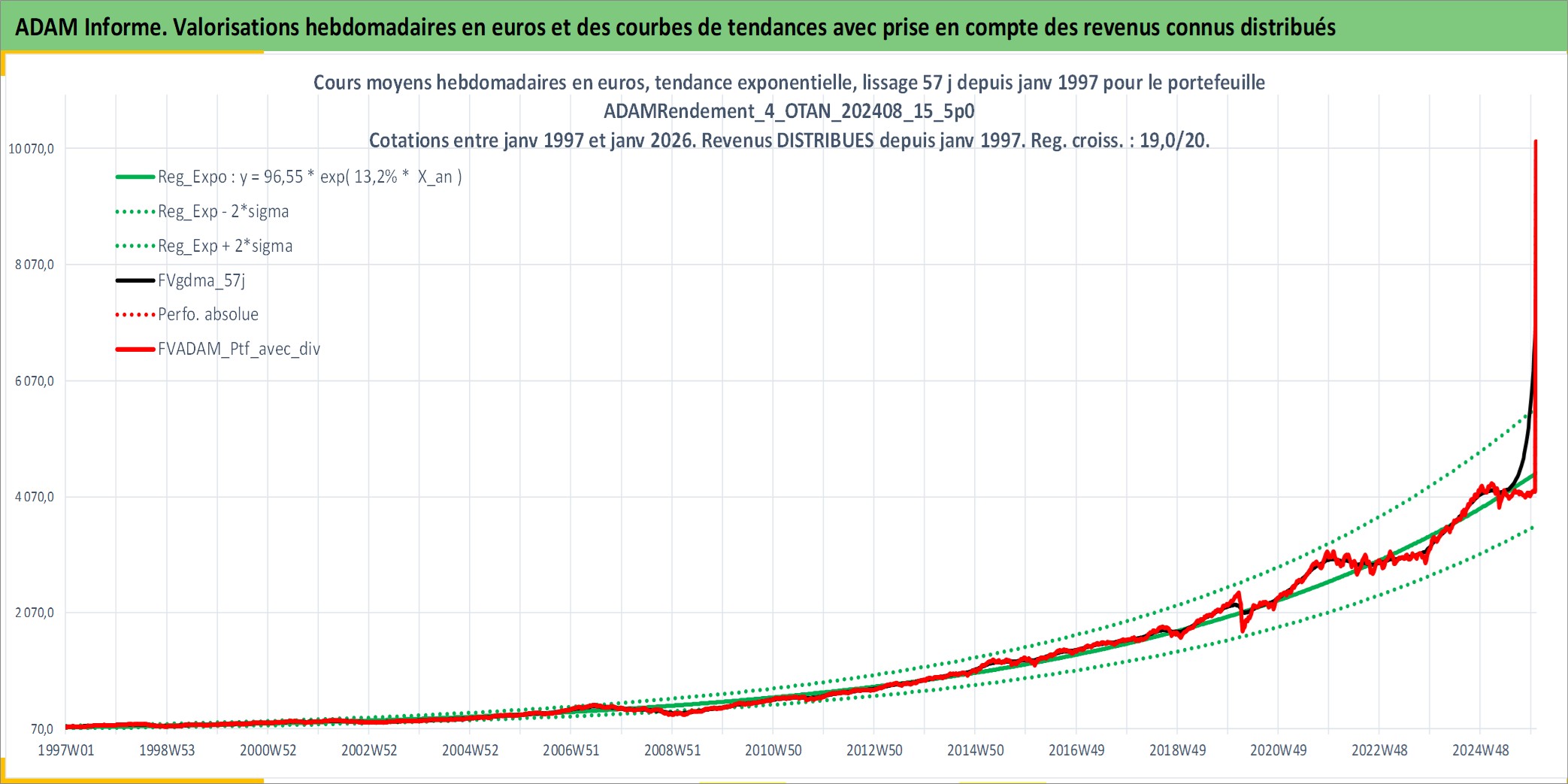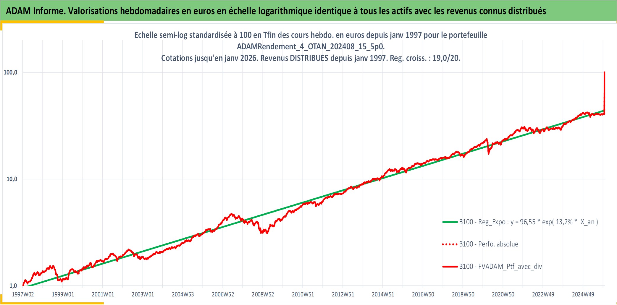 Site dédié aux investisseursPage dédiée sur site financeAnalyse des valorisations hebdomadaires du portefeuille ADAMRendement_4_OTAN_202408_15_5p0_19actifs avec un profil P6_PurActions. Ce portefeuille est cote en EUR. Les valorisations couvrent les semaines 1997W01 a 2026W01. Les revenus de cet actif financier sont pris en compte depuis la semaine 1997W01. La note globale ESG de cet actif est estimee a 10.2 (apres rebasage entre 0 et 20).