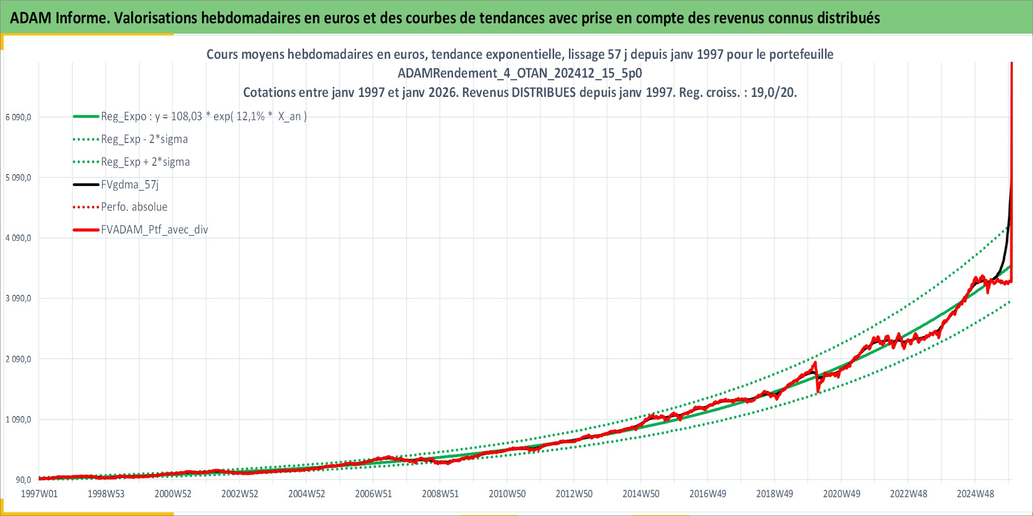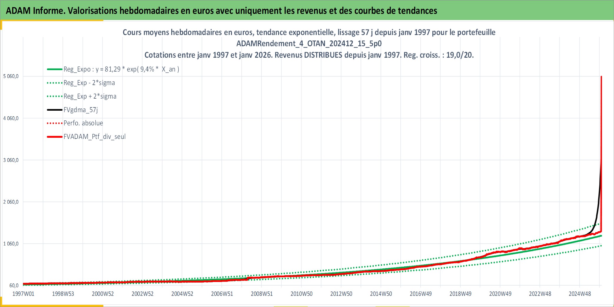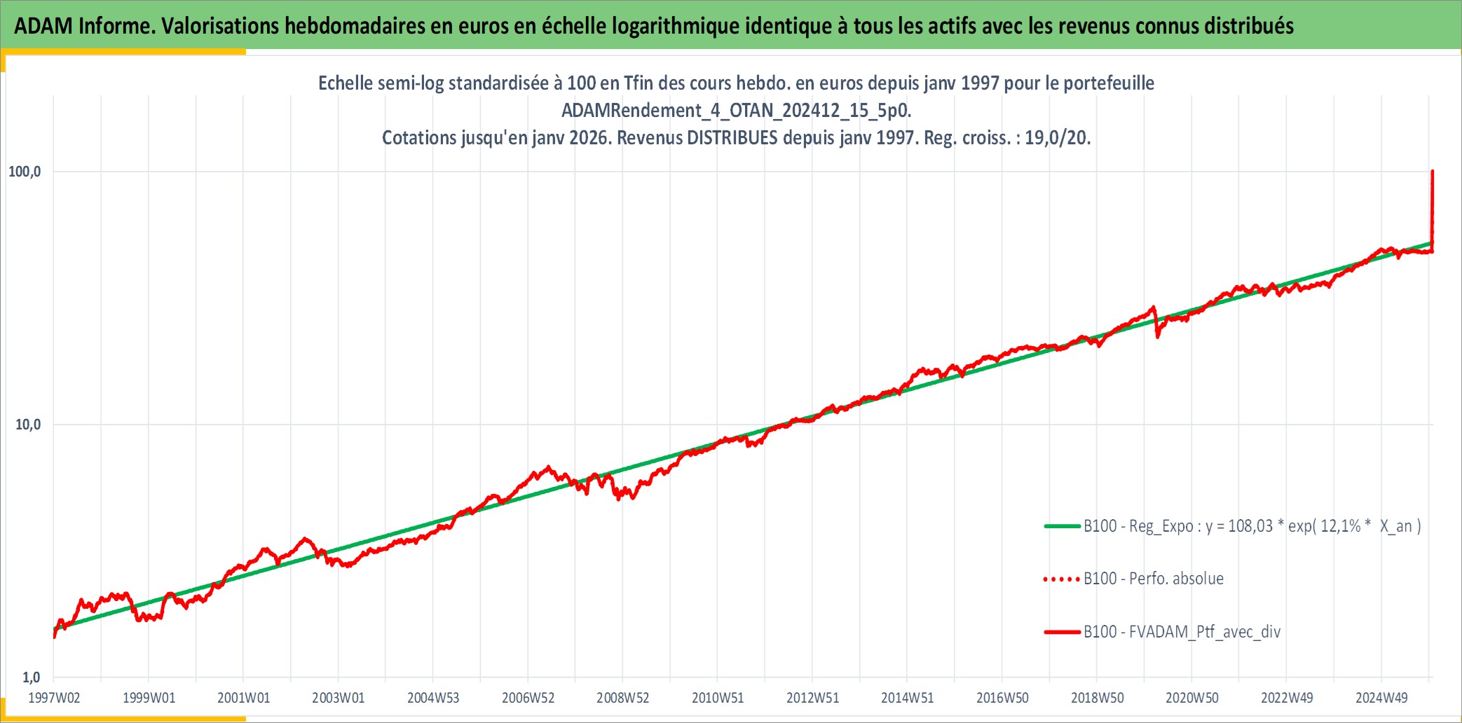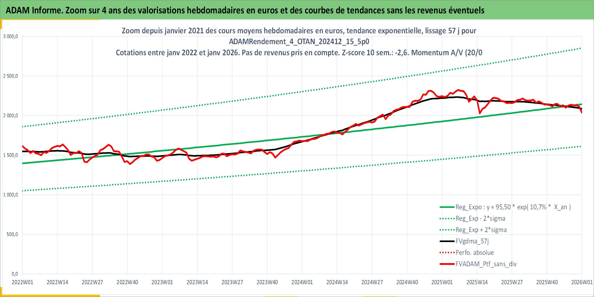 Site dédié aux investisseursPage dédiée sur site financeAnalyse des valorisations hebdomadaires du portefeuille ADAMRendement_4_OTAN_202412_15_5p0_24actifs avec un profil P6_PurActions. Ce portefeuille est cote en EUR. Les valorisations couvrent les semaines 1997W01 a 2026W01. Les revenus de cet actif financier sont pris en compte depuis la semaine 1997W01. La note globale ESG de cet actif est estimee a 11.7 (apres rebasage entre 0 et 20).