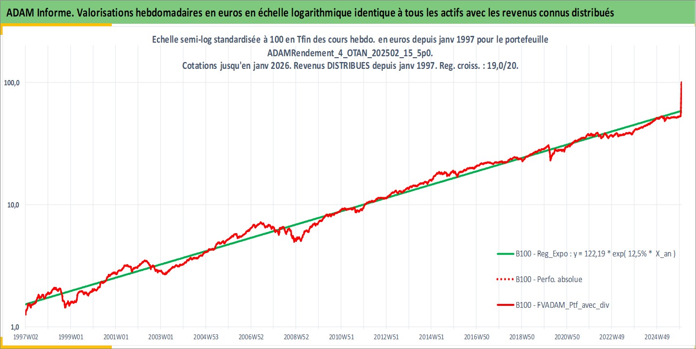 Site dédié aux investisseursPage dédiée sur site financeAnalyse des valorisations hebdomadaires du portefeuille ADAMRendement_4_OTAN_202502_15_5p0_29actifs avec un profil P6_PurActions. Ce portefeuille est cote en EUR. Les valorisations couvrent les semaines 1997W01 a 2026W01. Les revenus de cet actif financier sont pris en compte depuis la semaine 1997W01. La note globale ESG de cet actif est estimee a 11.0 (apres rebasage entre 0 et 20).