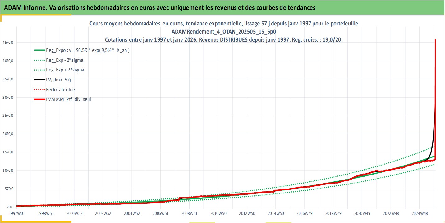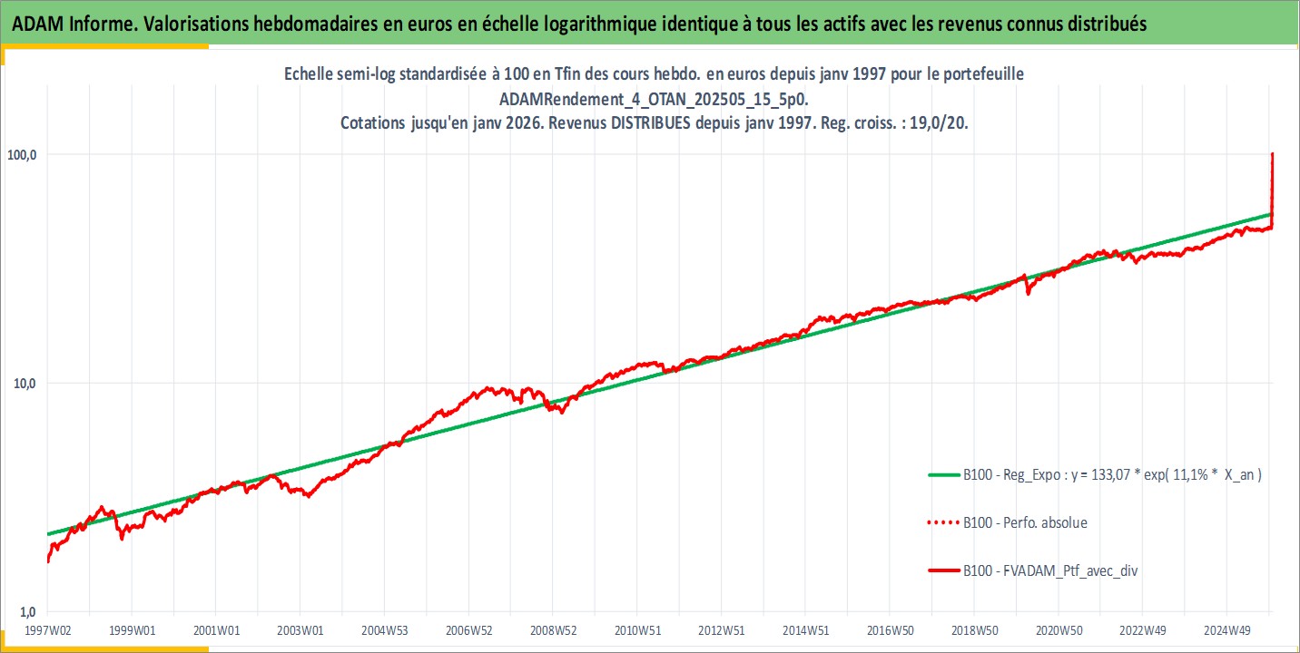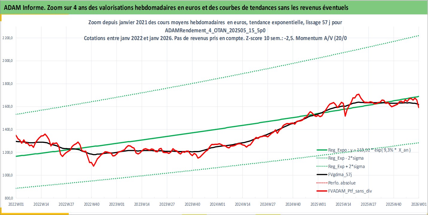 Site dédié aux investisseursPage dédiée sur site financeAnalyse des valorisations hebdomadaires du portefeuille ADAMRendement_4_OTAN_202505_15_5p0_21actifs avec un profil P6_PurActions. Ce portefeuille est cote en EUR. Les valorisations couvrent les semaines 1997W01 a 2026W01. Les revenus de cet actif financier sont pris en compte depuis la semaine 1997W01. La note globale ESG de cet actif est estimee a 12.5 (apres rebasage entre 0 et 20).