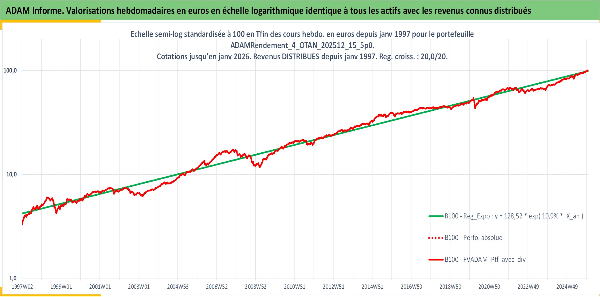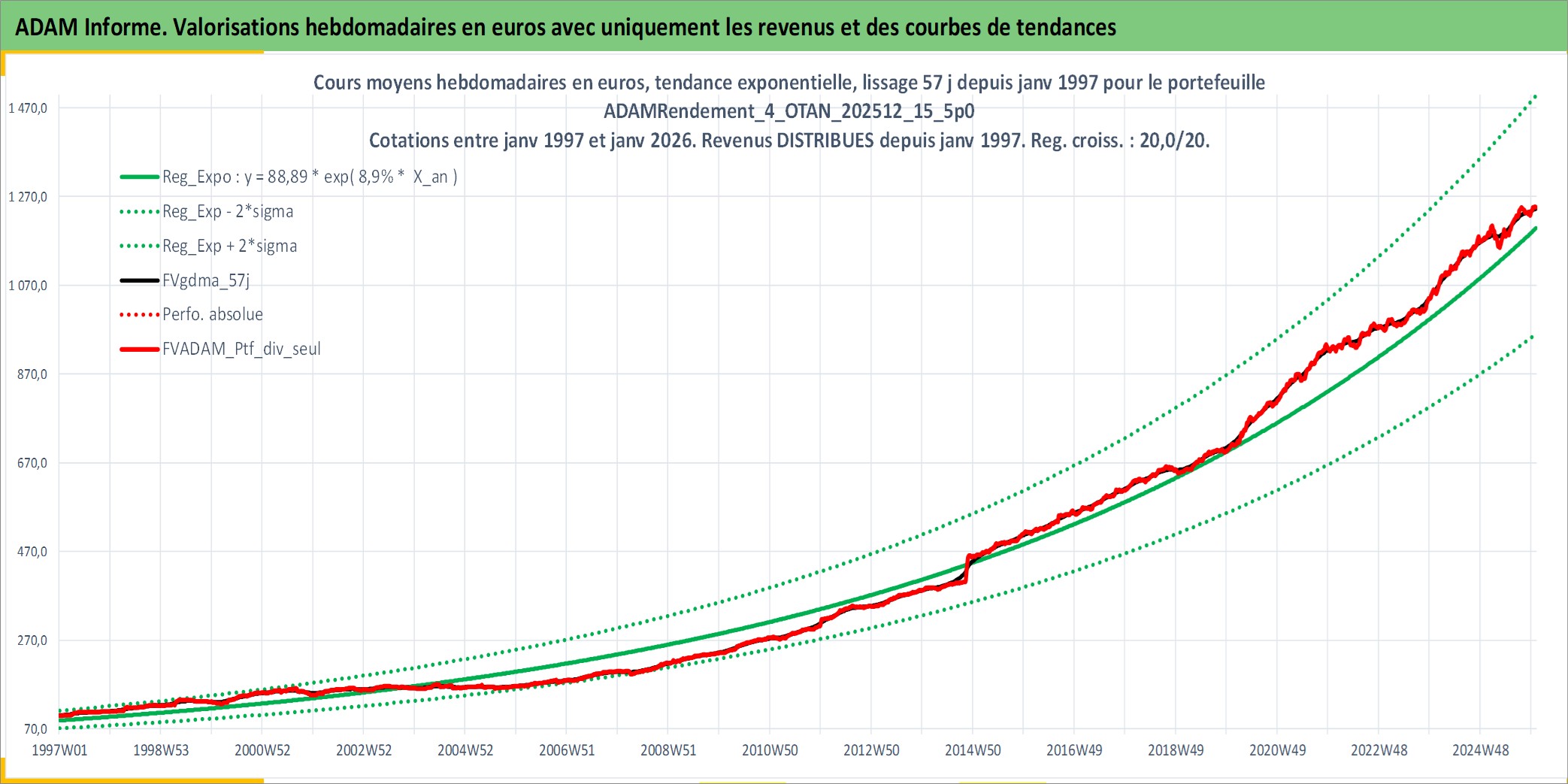 Site dédié aux investisseursPage dédiée sur site financeAnalyse des valorisations hebdomadaires du portefeuille ADAMRendement_4_OTAN_202512_15_5p0_17actifs avec un profil P6_PurActions. Ce portefeuille est cote en EUR. Les valorisations couvrent les semaines 1997W01 a 2026W01. Les revenus de cet actif financier sont pris en compte depuis la semaine 1997W01. La note globale ESG de cet actif est estimee a 11.9 (apres rebasage entre 0 et 20).