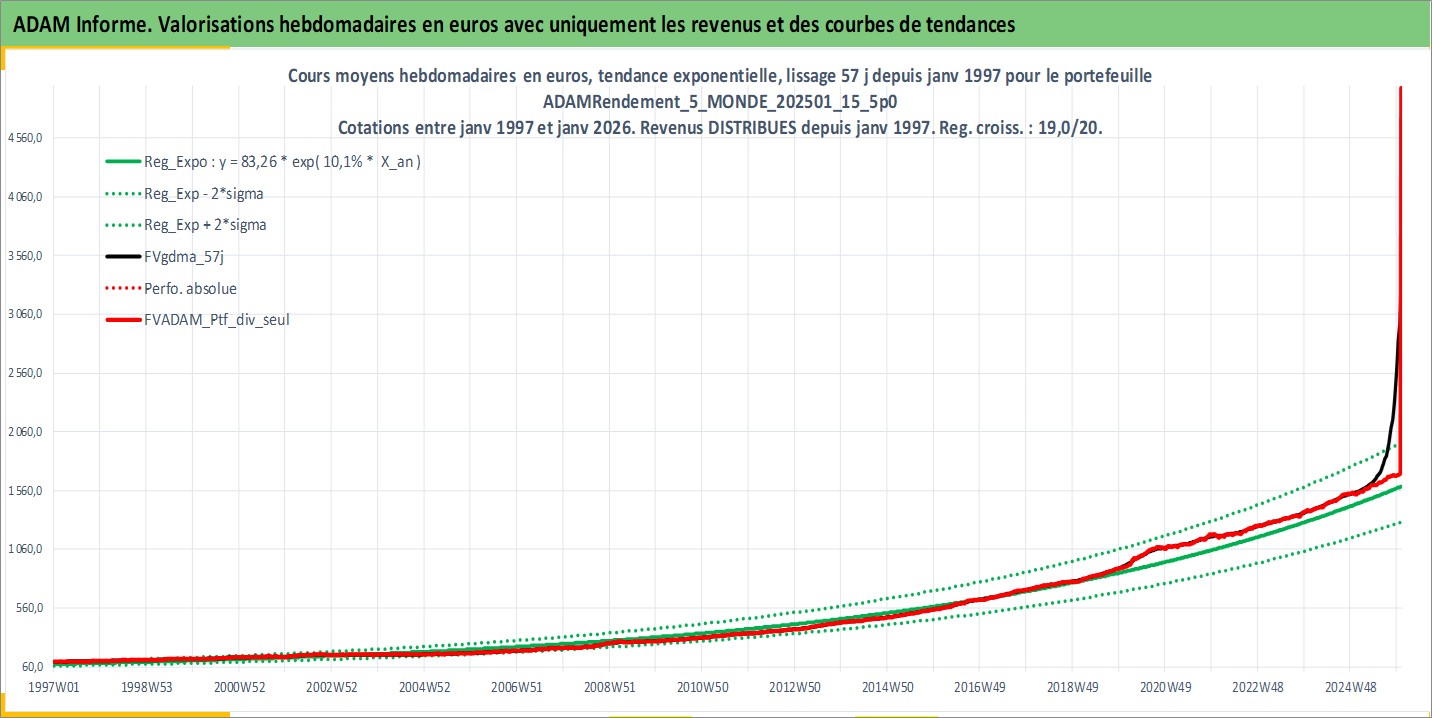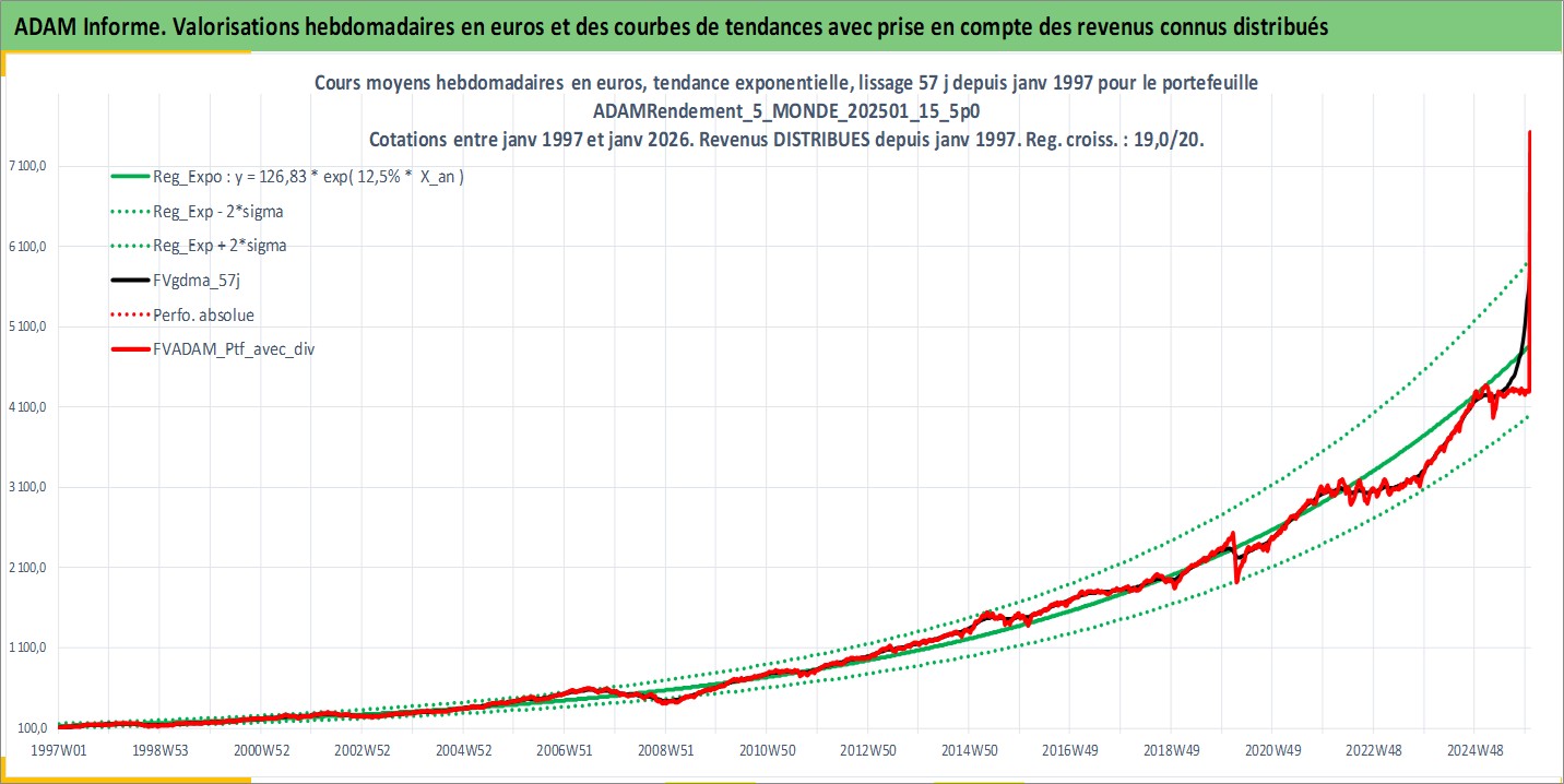 Site dédié aux investisseursPage dédiée sur site financeAnalyse des valorisations hebdomadaires du portefeuille ADAMRendement_5_MONDE_202501_15_5p0_35actifs avec un profil P6_PurActions. Ce portefeuille est cote en EUR. Les valorisations couvrent les semaines 1997W01 a 2026W01. Les revenus de cet actif financier sont pris en compte depuis la semaine 1997W01. La note globale ESG de cet actif est estimee a 10.5 (apres rebasage entre 0 et 20).