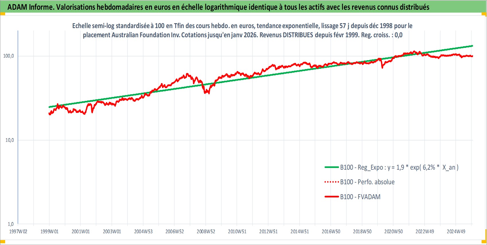 Site dédié aux investisseursPage dédiée sur site financeAnalyse des valorisations hebdomadaires de l'action Australian Foundation Investment Company Ltd. Cet actif est cote en AUD. Les valorisations sont en contrevaleur EURO et couvrent les semaines 1998W53 a 2026W01. Les revenus de cet actif financier sont pris en compte depuis la semaine 1999W07. La note ESG de cet actif n'est pas connue.