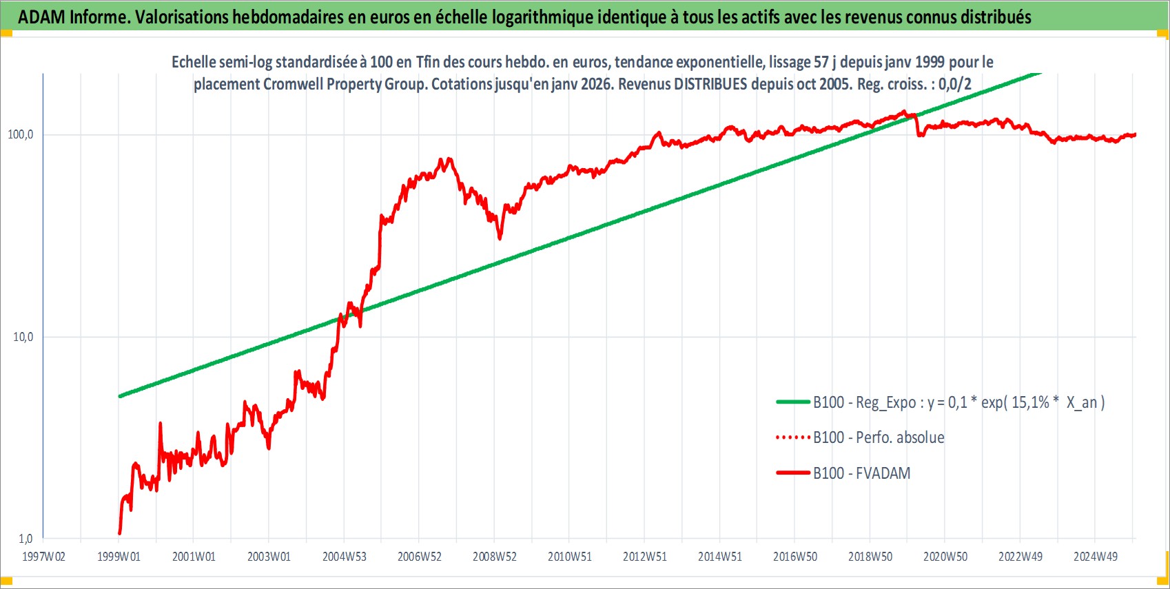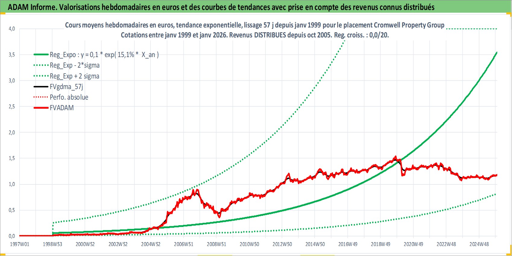 Site dédié aux investisseursPage dédiée sur site financeAnalyse des valorisations hebdomadaires de l'action Cromwell Property Group. Cet actif est cote en AUD. Les valorisations sont en contrevaleur EURO et couvrent les semaines 1999W02 a 2026W01. Les revenus de cet actif financier sont pris en compte depuis la semaine 2005W43. La note ESG de cet actif n'est pas connue.
