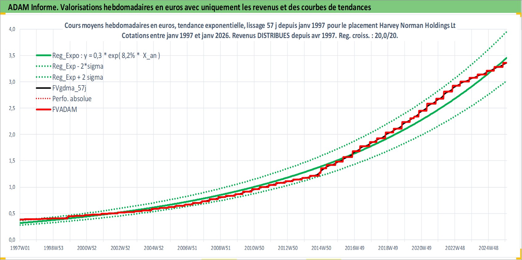 Site dédié aux investisseursPage dédiée sur site financeAnalyse des valorisations hebdomadaires de l'action Harvey Norman Holdings Ltd. Cet actif est cote en AUD. Les valorisations sont en contrevaleur EURO et couvrent les semaines 1997W01 a 2026W01. Les revenus de cet actif financier sont pris en compte depuis la semaine 1997W15. La note ESG de cet actif n'est pas connue.